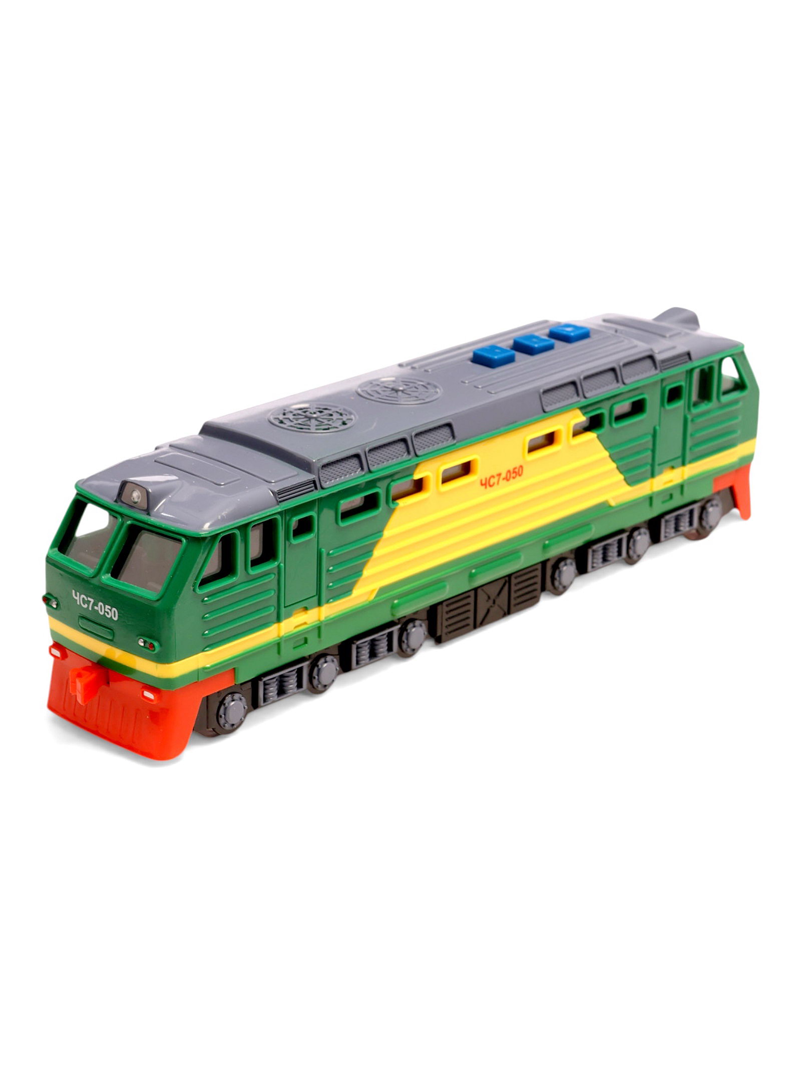 Модель пластиковая "Тепловоз", 21.5 см, свет и звук, 3 кнопки, инерция, зелёная, Технопарк, Китай