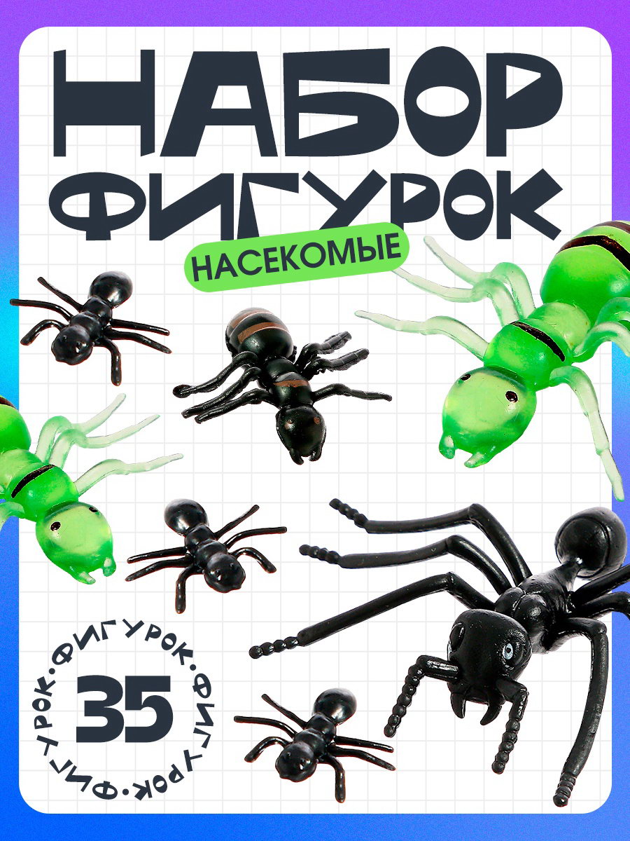 Размер упаковки: 2 x 16.5 x 15.5 см. Для кого: Унисекс tnved: 9503007000 Возраст: От 3 лет Вид животных: Насекомые Набор: Да Набор насекомых "Муравьи" для увлекательных игр и познавательного обучения!Этот набор из 35 фигурок станет прекрасным дополнением для детских игр, творческих занятий и образовательных проектов. Фигурки муравьев разного размера и дизайна сделают процесс игры ещё более интересным, а реалистичные детали позволят детям узнать больше о мире насекомых. Особенности