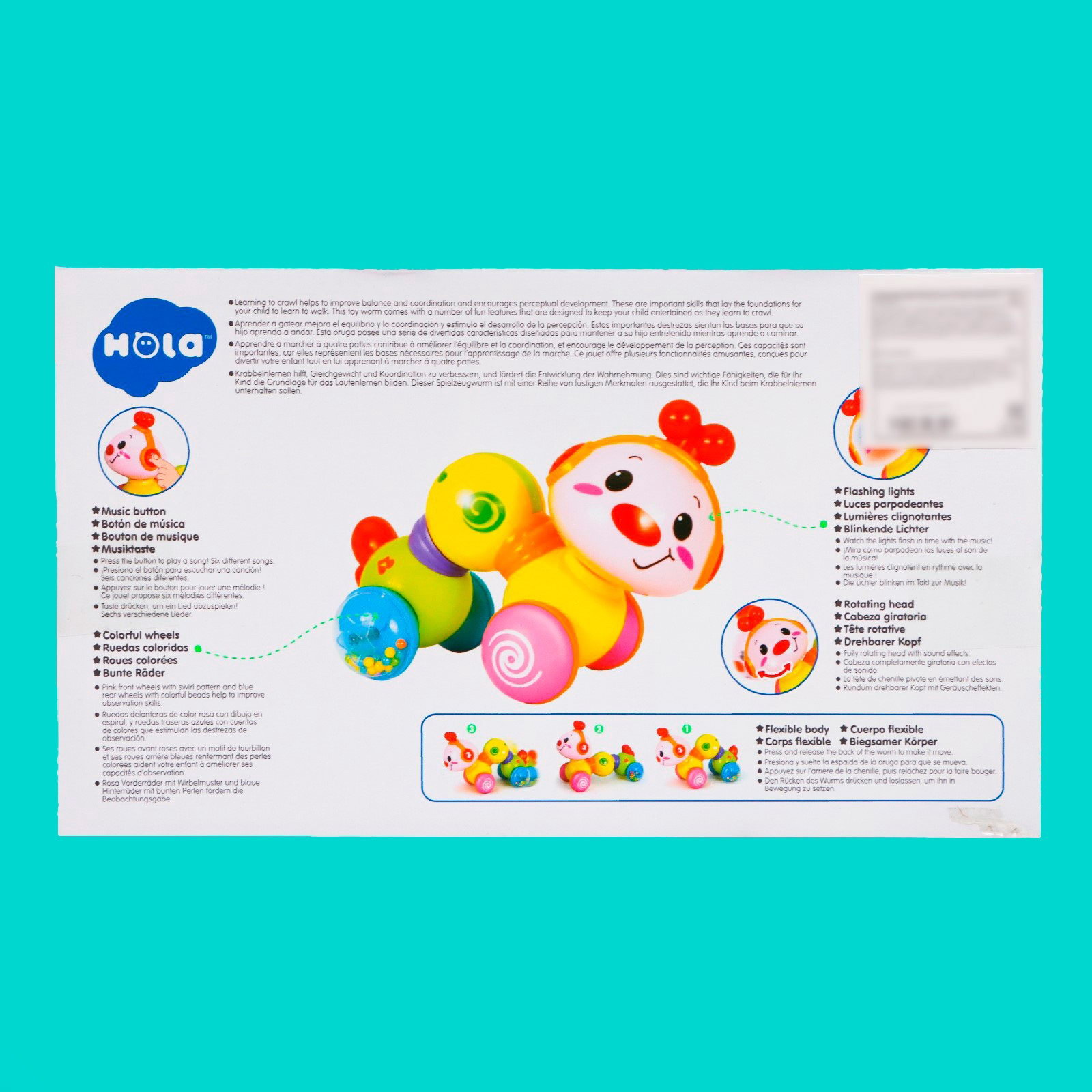 Игрушка музыкальная "Гусеница", световые и звуковые эффекты, 10x21x14 см., Китай