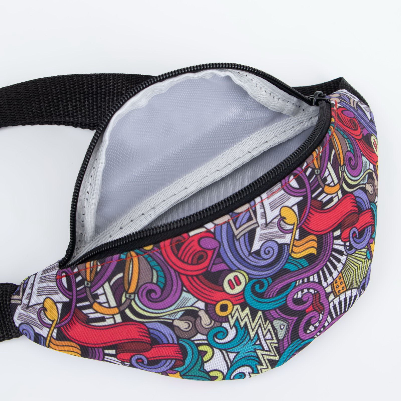 Размер упаковки: 1.5 x 10 x 22 см. tnved: 4202930000 Вид застёжки: Молния Температурное ограничение: Нет Для кого: Для девочки Цвет: Разноцветный Модель сумки: Поясная Изображение: Абстракция Эта поясная сумка освобождает руки для движения и игр. Она помогает всегда держать необходимые мелочи под рукой, не отвлекая от активного отдыха. Особенности