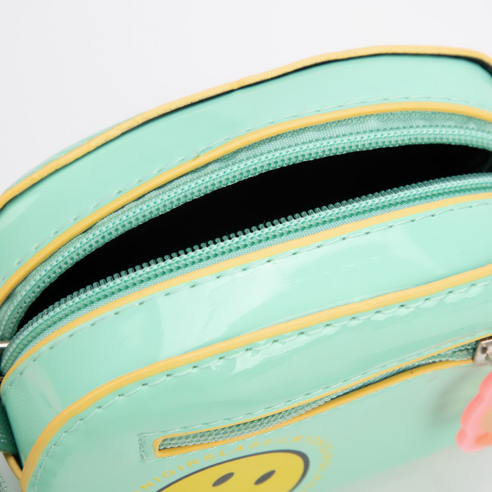Размер упаковки: 6 x 10 x 14 см. Вид застёжки: Молния Вид застёжки: Молния tnved: 4202922000 Для кого: Для девочки Цвет: Зелёный Модель сумки: На длинном ремне Особенности: Регулируемый ремень Изображение: Смайлик Эта зелёная сумка через плечо станет верной спутницей девочки на прогулках и в поездках. Весёлый смайлик на фронтальной части поднимает настроение, а практичный материал легко очищается после активного дня. Регулируемый ремень позволяет носить через плечо. Конструктивные элементы