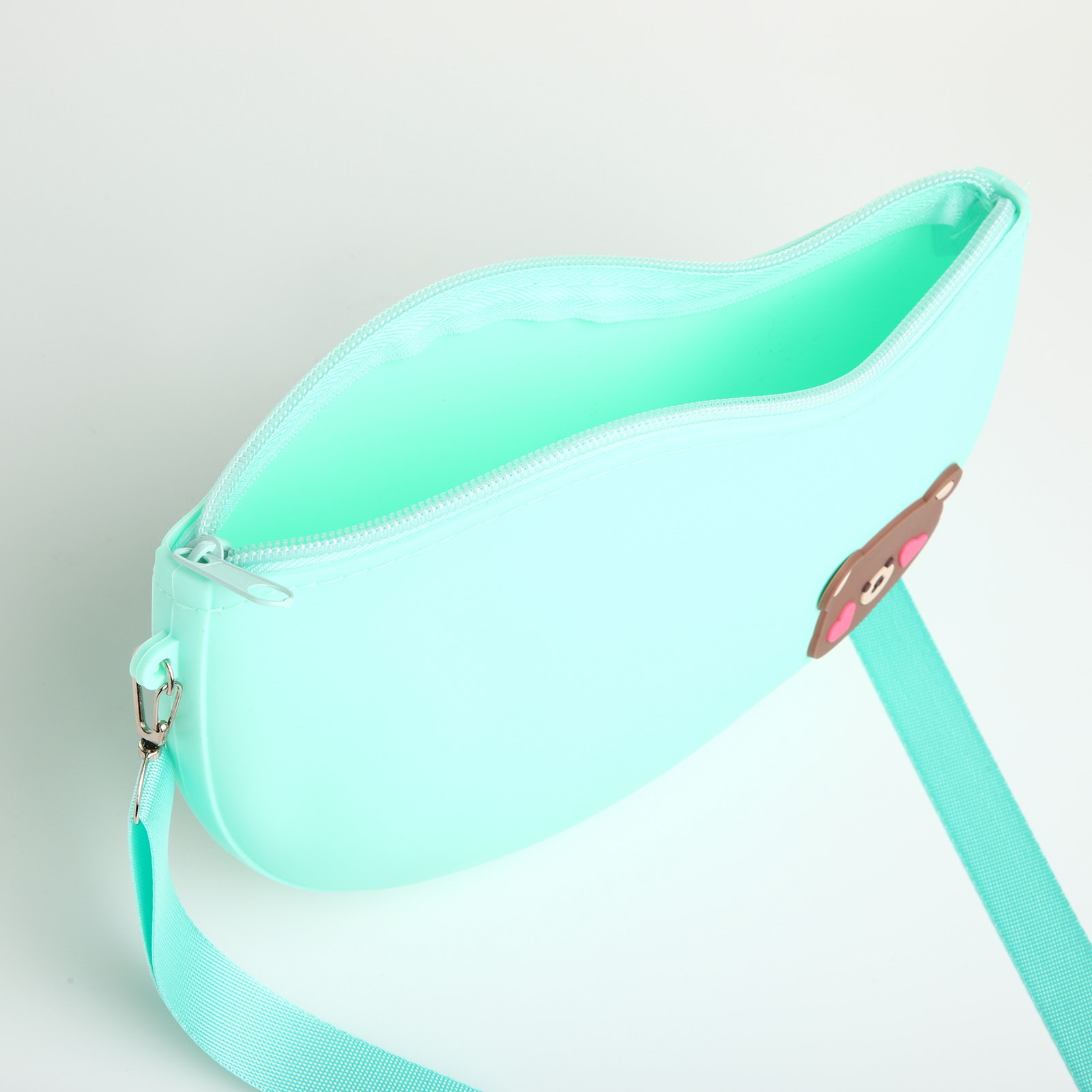 Размер упаковки: 14 x 2 x 22 см. Изображение: Медведь Модель сумки: На длинном ремне Для кого: Для девочки Цвет: Бирюзовый Рисунок: Да Особенности: Регулируемый ремень Вид застёжки: Молния Длина, см: 22 Высота, см: 14 Регулируемый ремешок: Да Ширина, см: 3 tnved: 4202922000 Количество отделений: 1 Эта изумительная бирюзовая сумочка для девочек станет отличным акцентом к любому наряду. Изготовленная из мягкого силикона, модель прекрасно удерживает форму и одновременно обеспечивает комфортную посадку. Дизайн сумки украшает изображение милого медведя, который обязательно вызовет улыбку у юных модниц. Основные характеристики