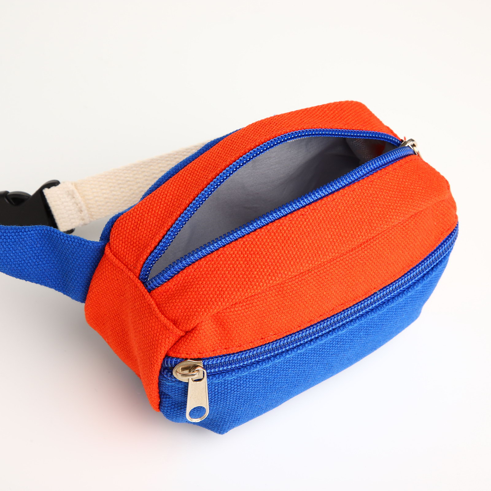 Сумка детская поясная на молнии, наружный карман, синяя, красная, 4.5x14.5x8.5 см., Китай