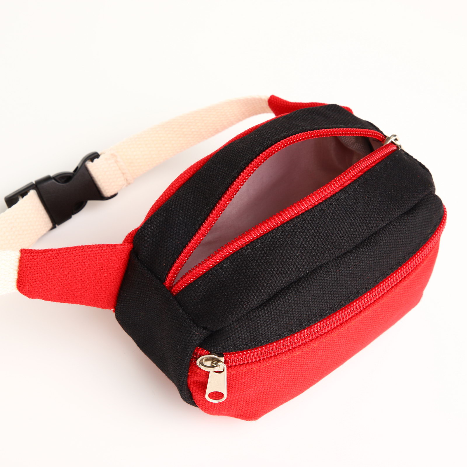 Сумка детская поясная на молнии, наружный карман, красная, чёрная, 4.5x14.5x8.5 см., Китай