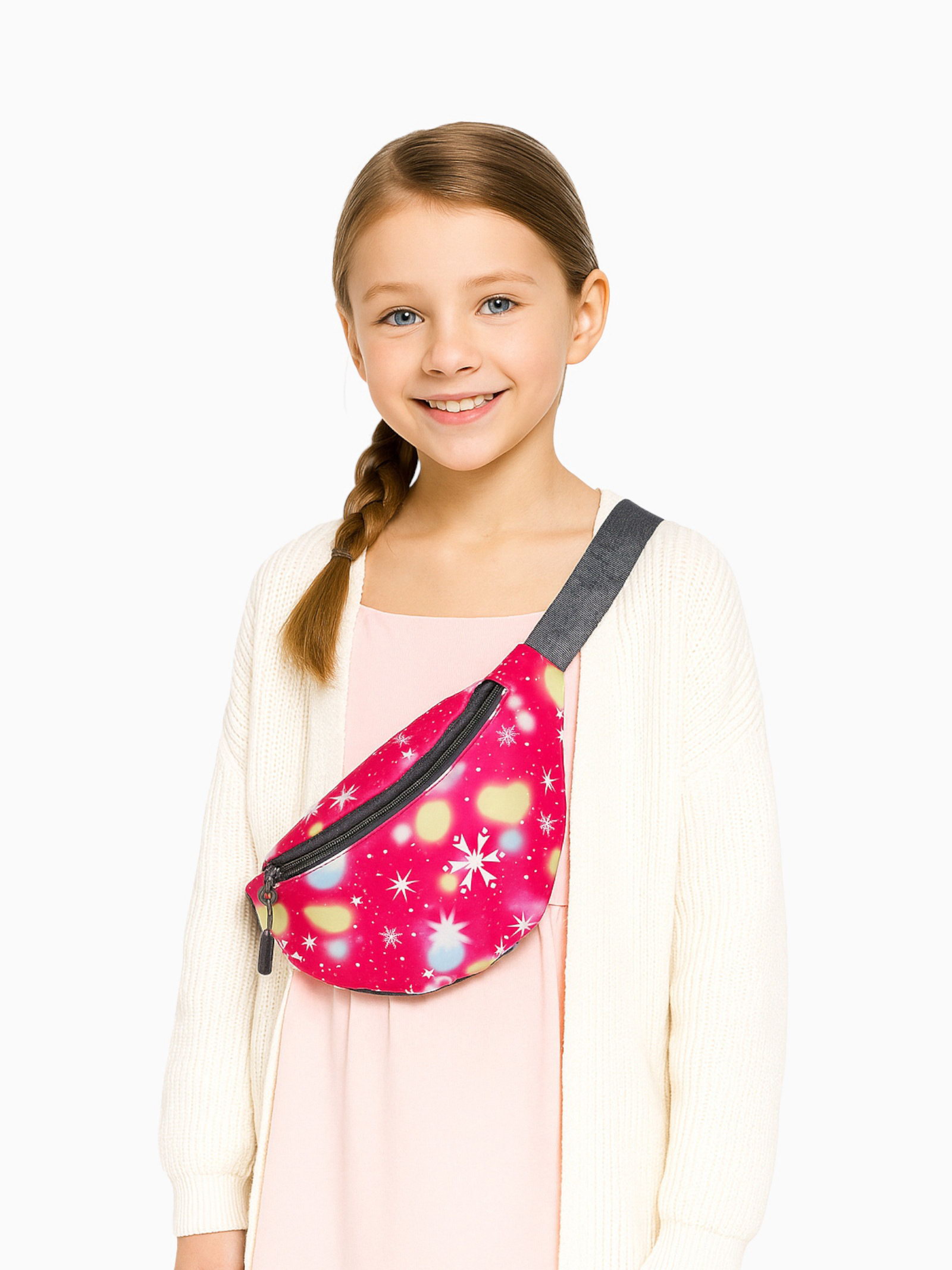 Размер упаковки: 13.5 x 1 x 17 см. Изображение: Космос Для кого: Для девочки Модель сумки: Поясная Цвет: Розовый Вид застёжки: Молния Особенности: Регулируемый ремень Рисунок: Да Длина, см: 24 Высота, см: 11 Регулируемый ремешок: Да Ширина, см: 6 tnved: 4202929200 Количество отделений: 1 Эта детская поясная сумка станет верным спутником для прогулок и путешествий. Её компактный размер идеально подходит для ребёнка, а яркий малиновый цвет с космическим принтом нравится девочкам. Сумка удобно лежит на поясе, не сползает и не мешает активным играм. Практичность в деталях