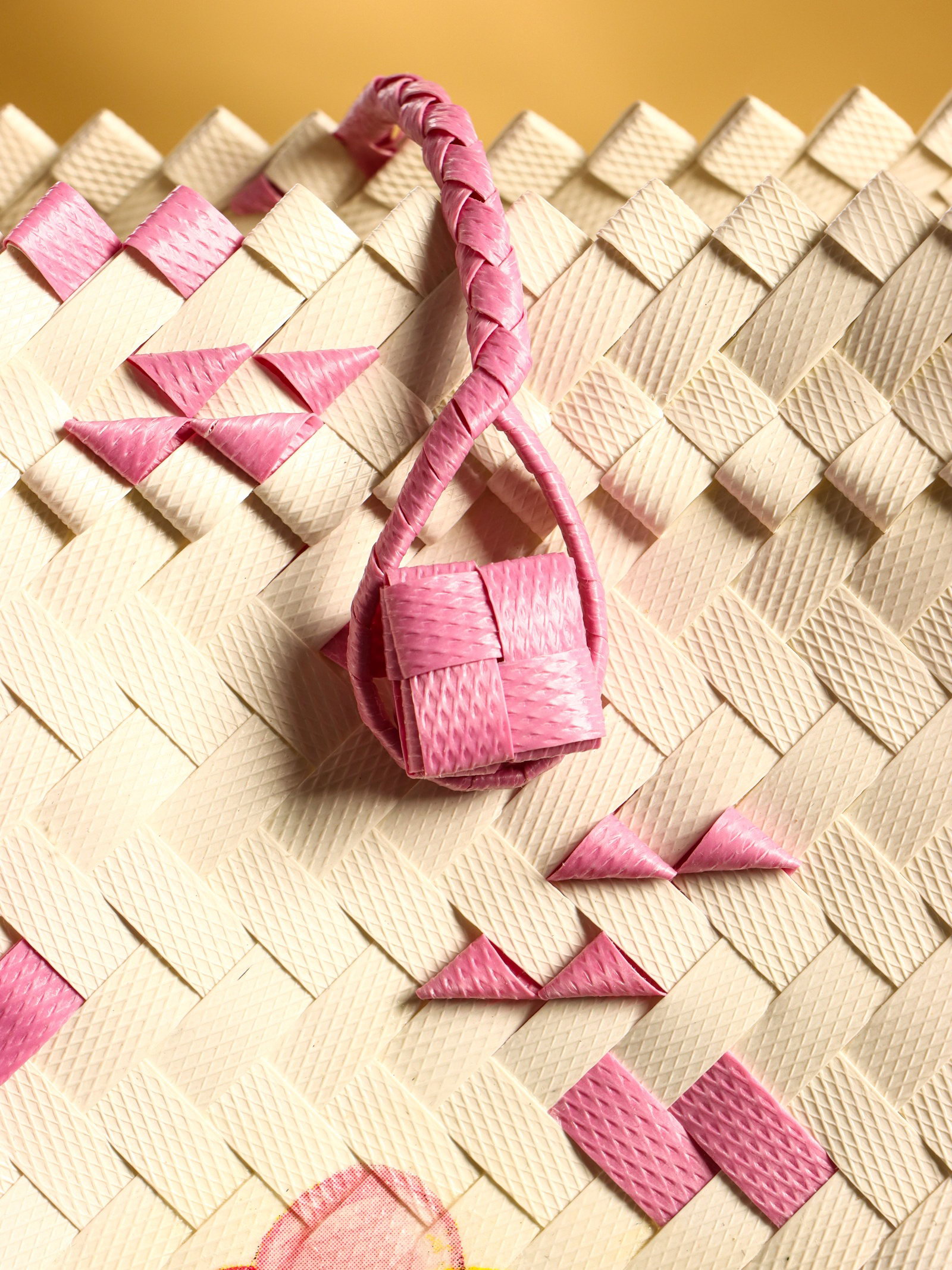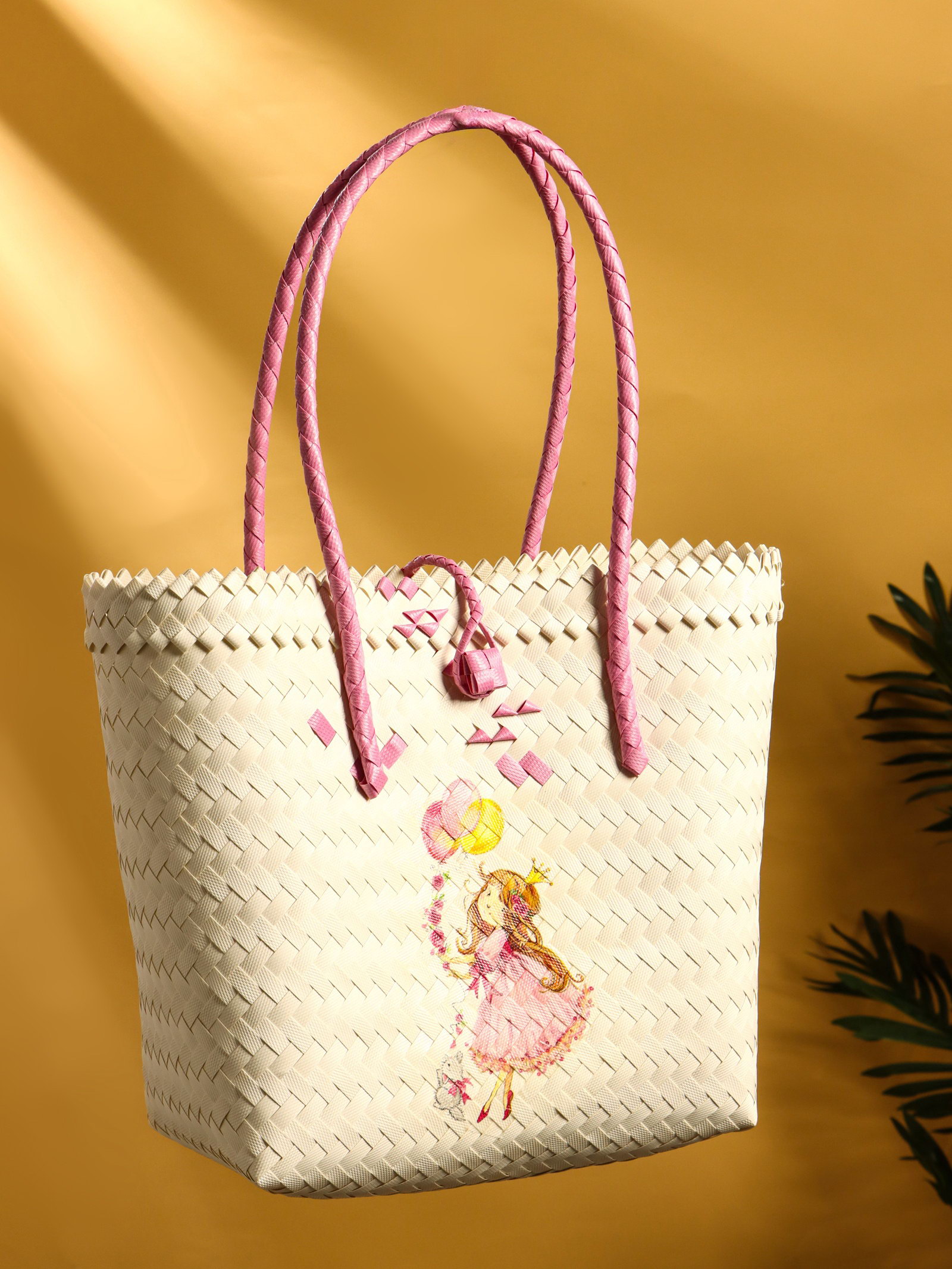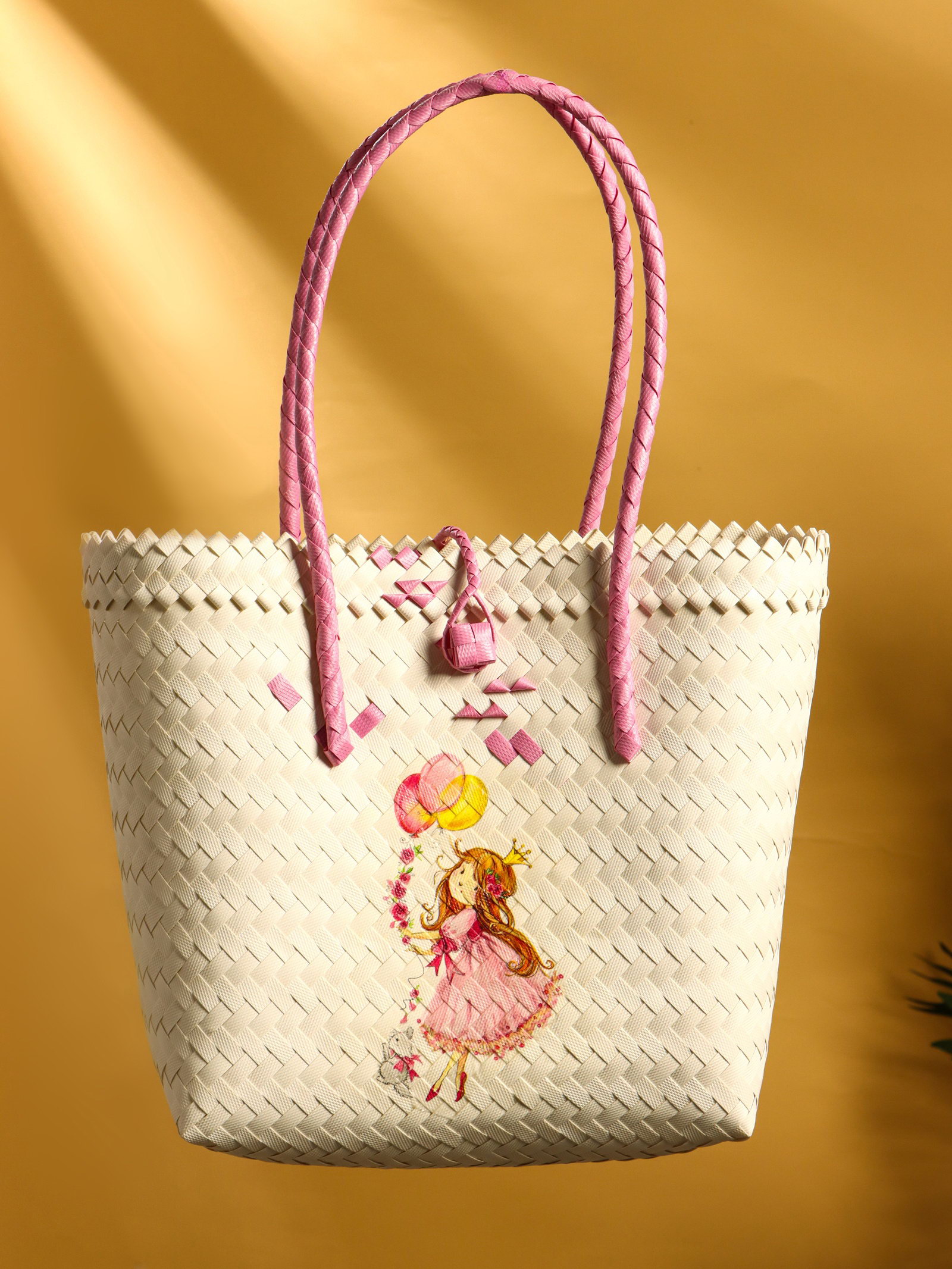 Сумка плетёная на застёжке "Девочка с букетом", 40x10x55 см, пластик, бело-розовая, 10x40x40 см., Индонезия