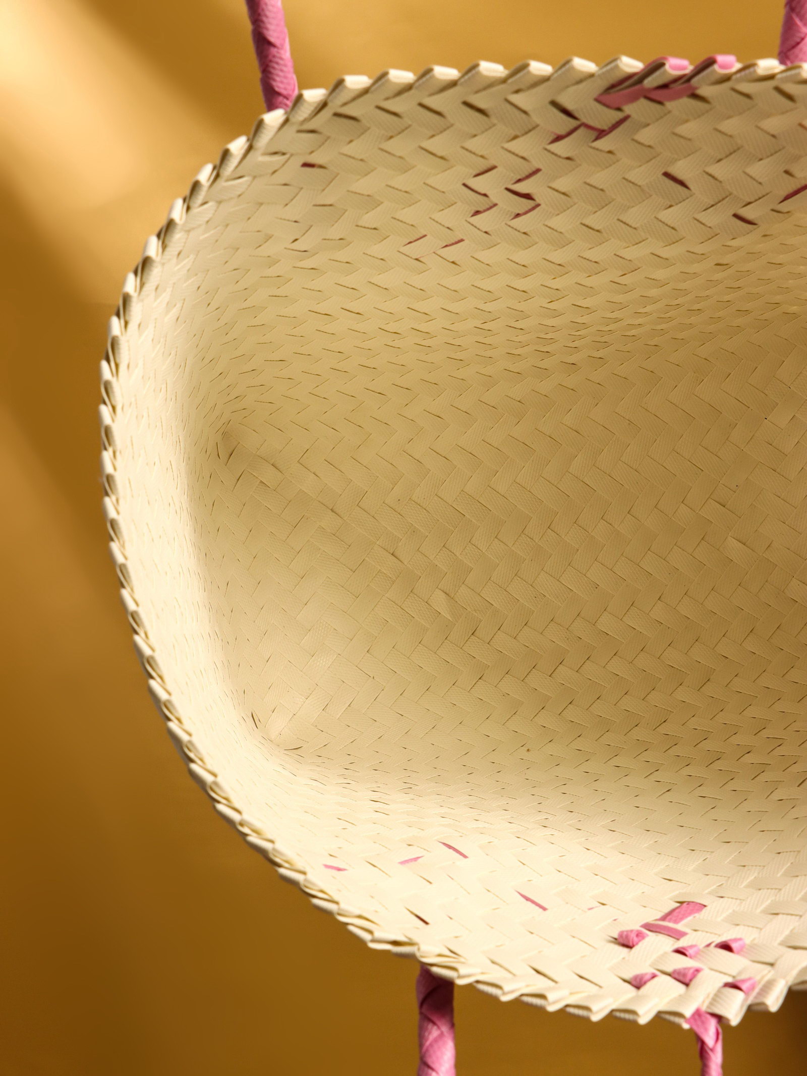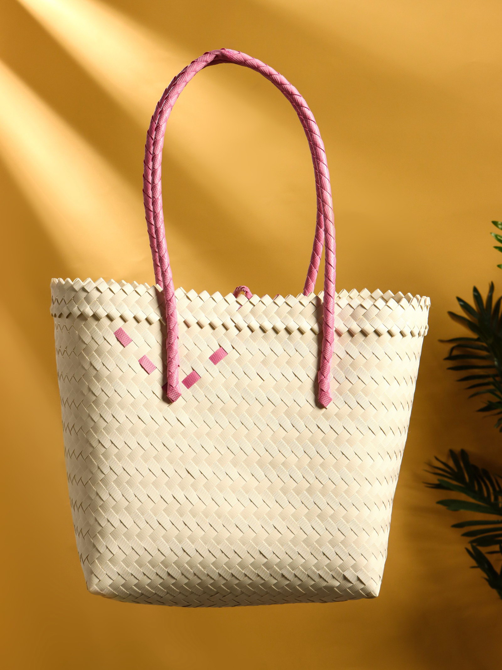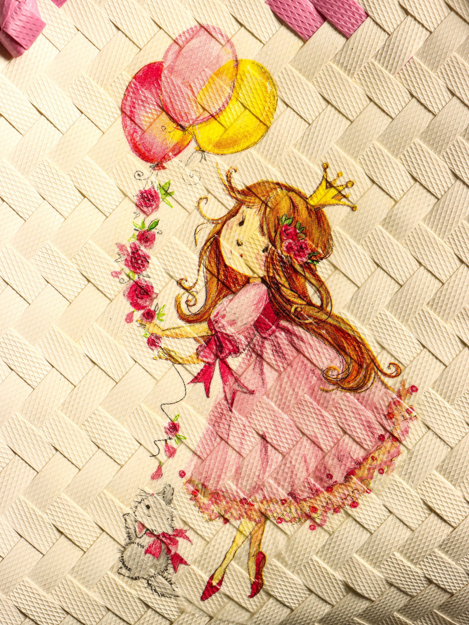 Сумка плетёная на застёжке "Девочка с букетом", 40x10x55 см, пластик, бело-розовая, 10x40x40 см., Индонезия