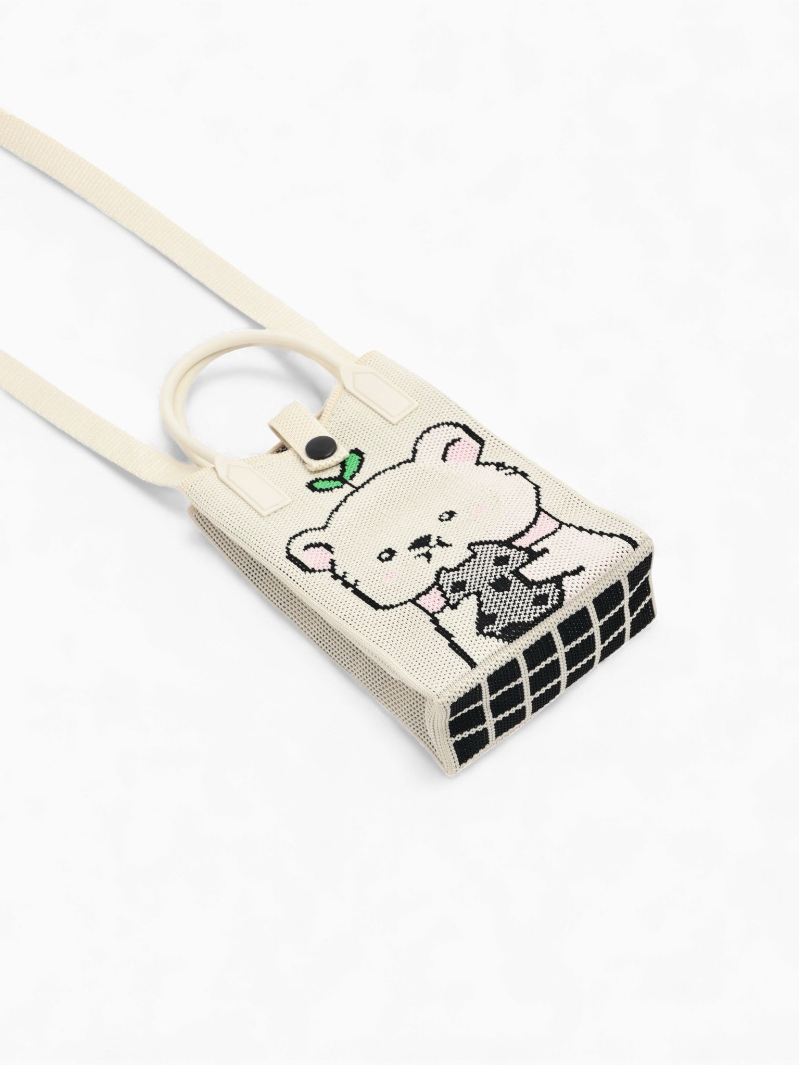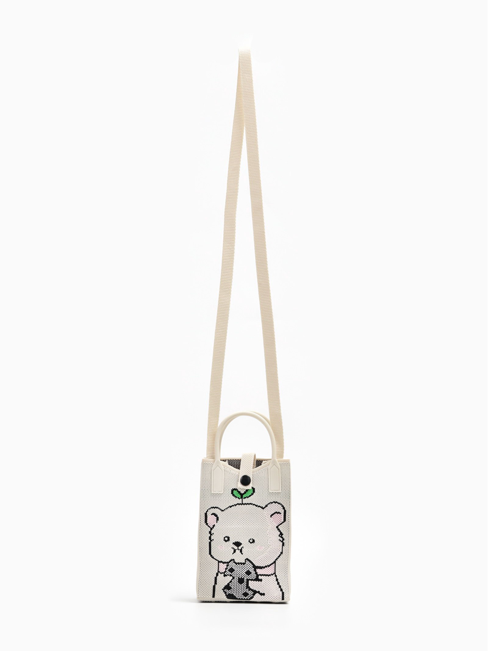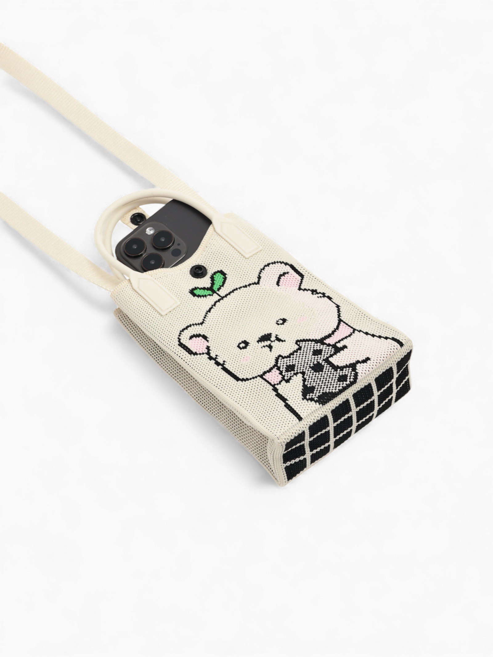 Сумка для телефона "Мишка", на кнопке, с длинным ремнём, белая, 4x12x17 см., Выбражулька, Китай