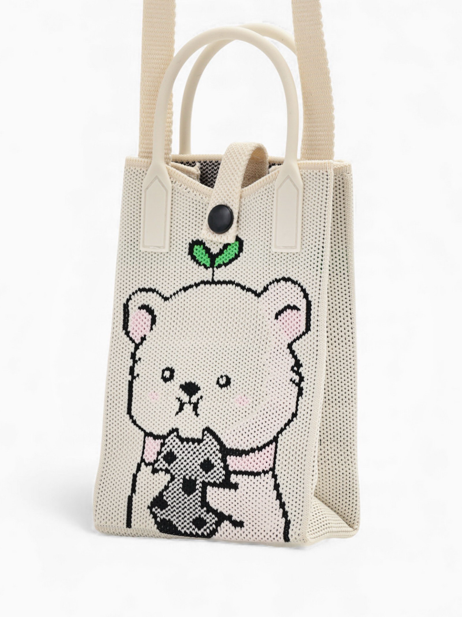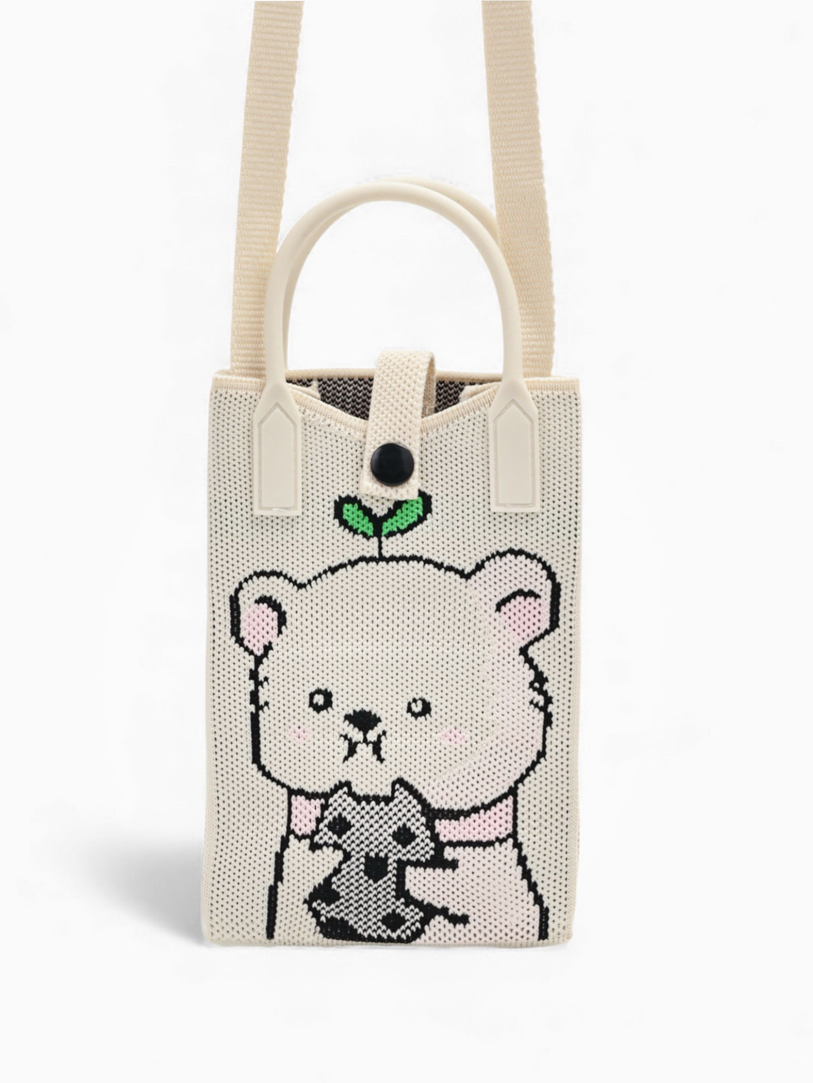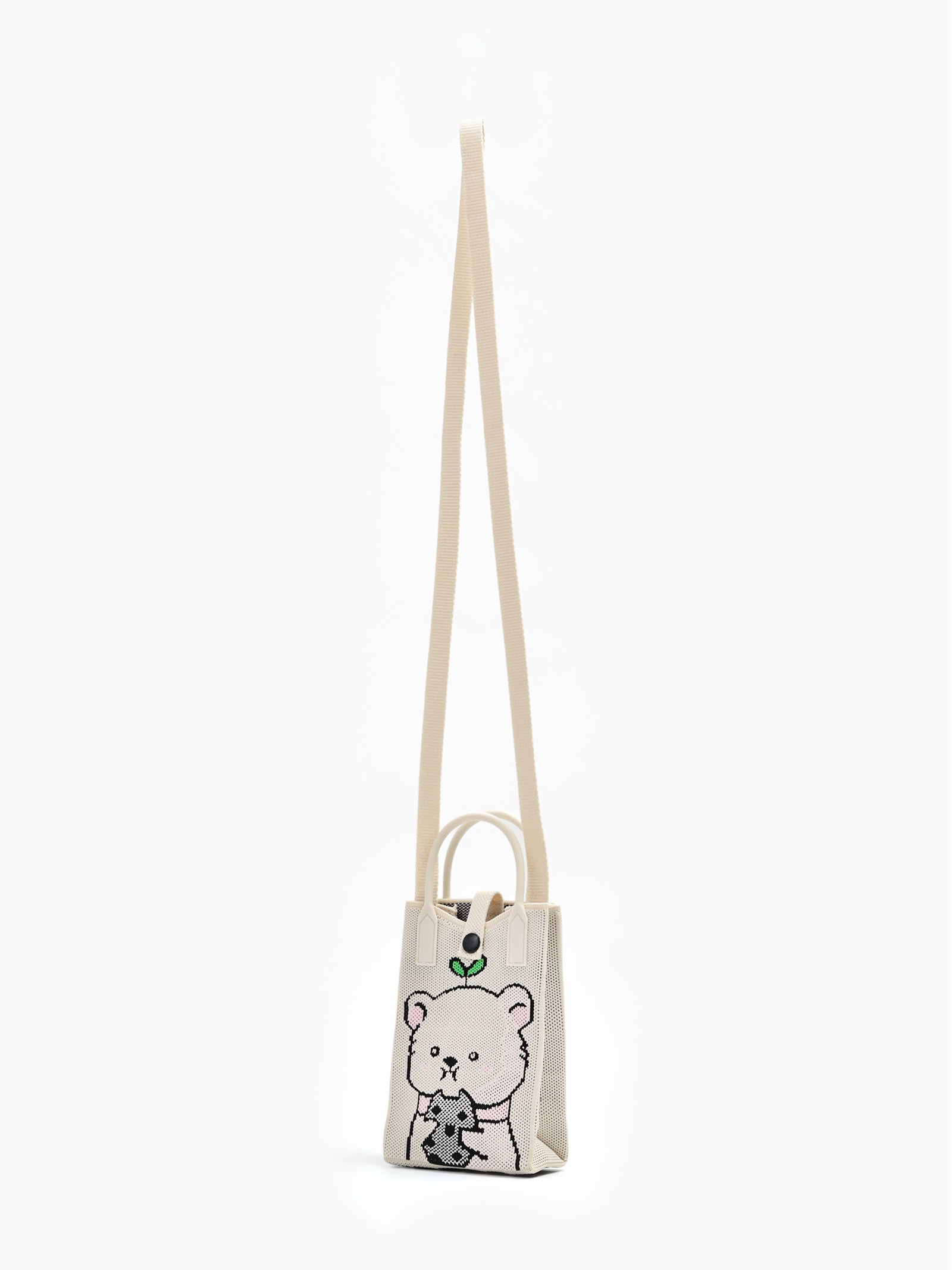 Сумка для телефона "Мишка", на кнопке, с длинным ремнём, белая, 4x12x17 см., Выбражулька, Китай