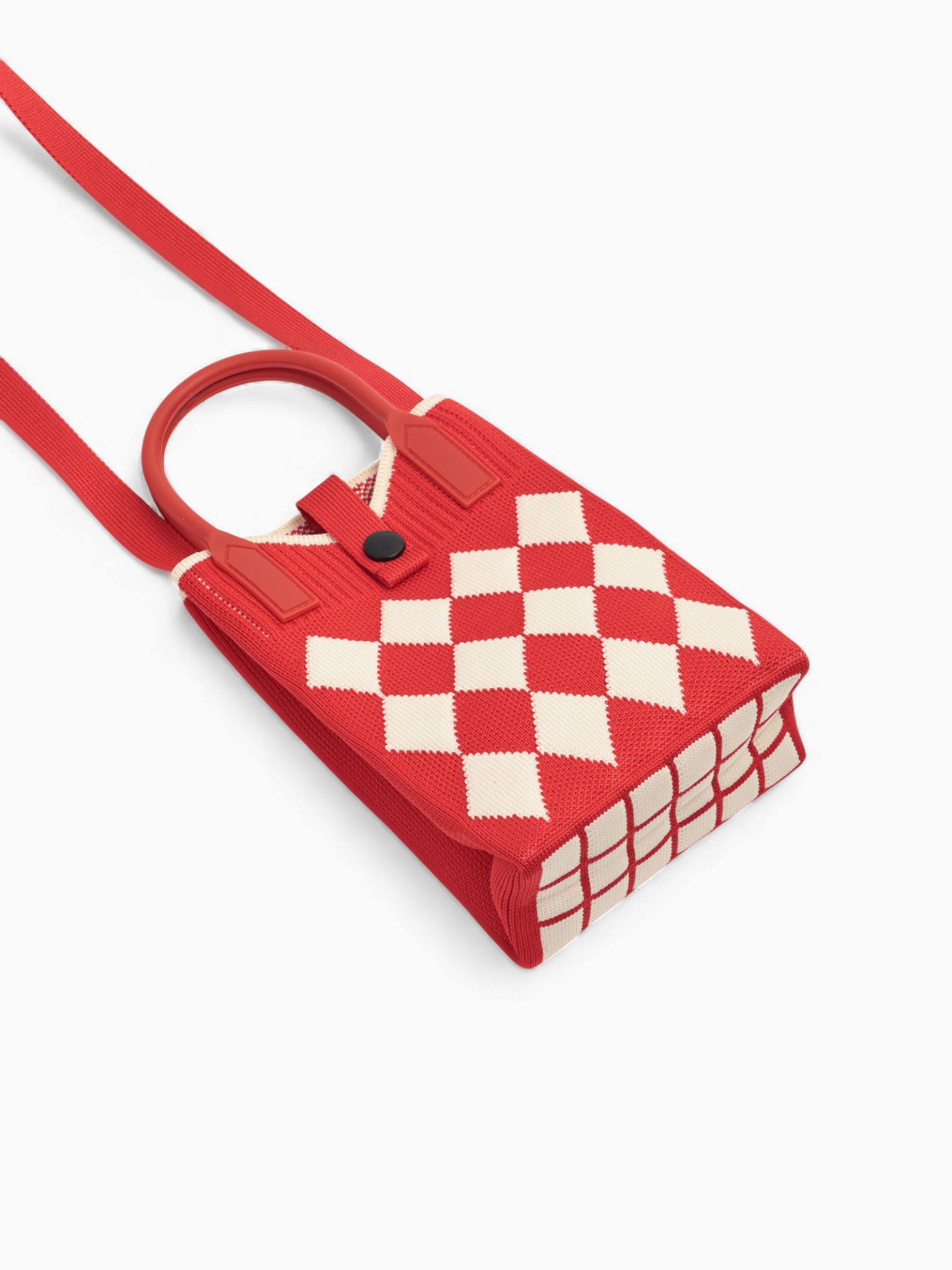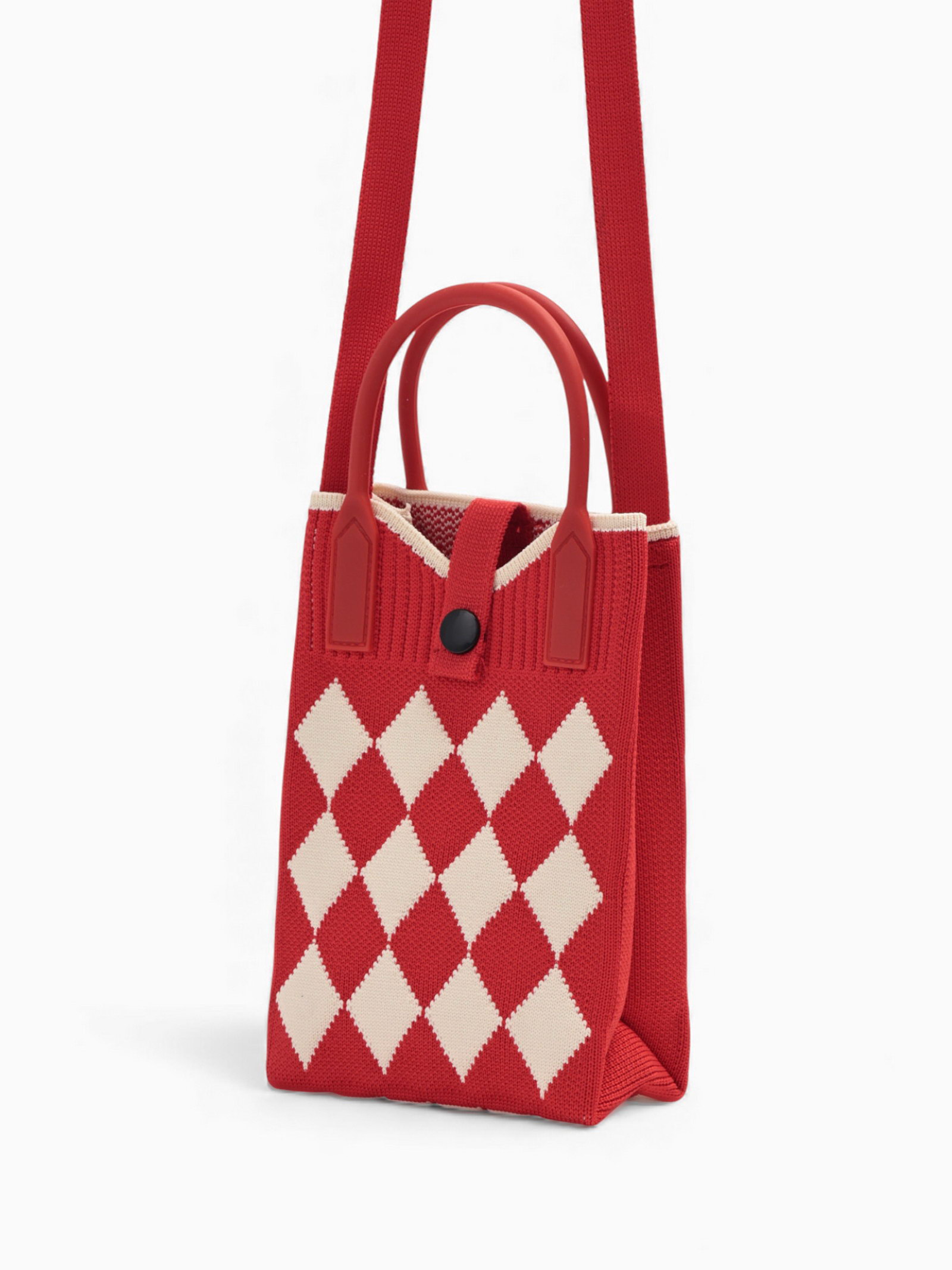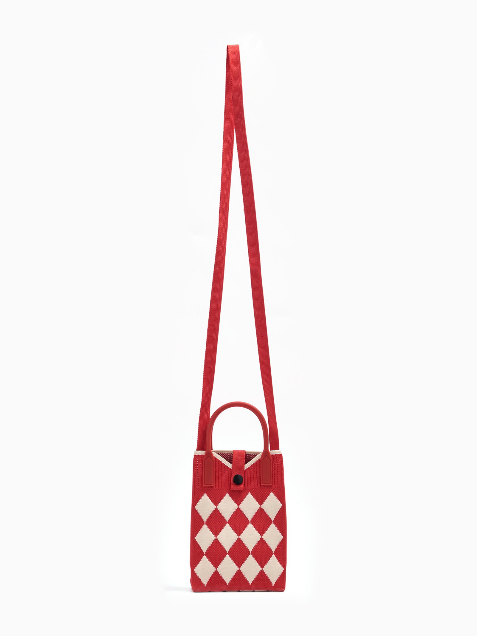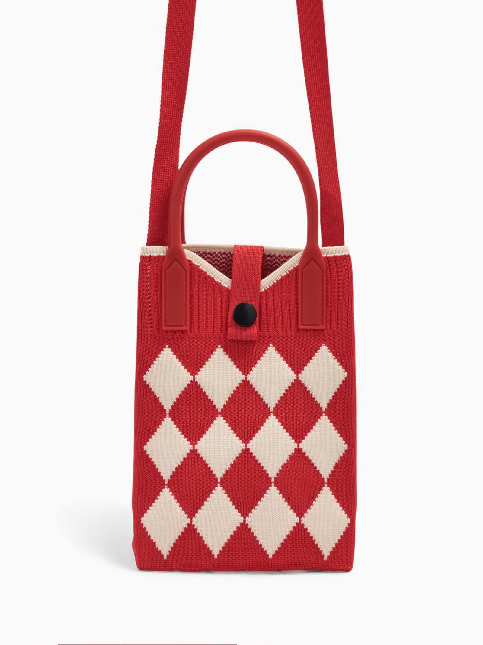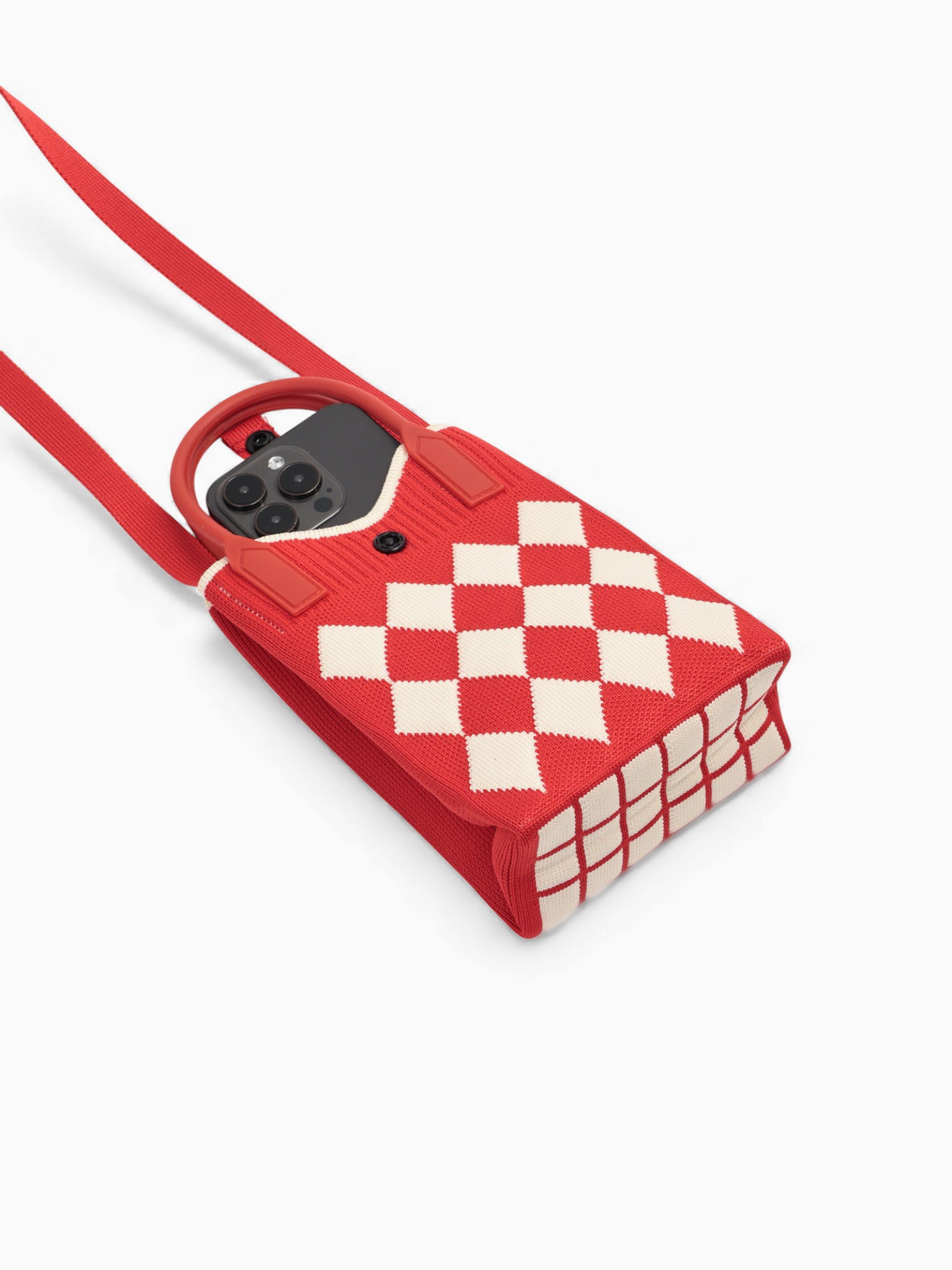 Сумка для телефона "Ромбы", на кнопке, с длинным ремнём, красная, 4x12x17 см., Выбражулька, Китай