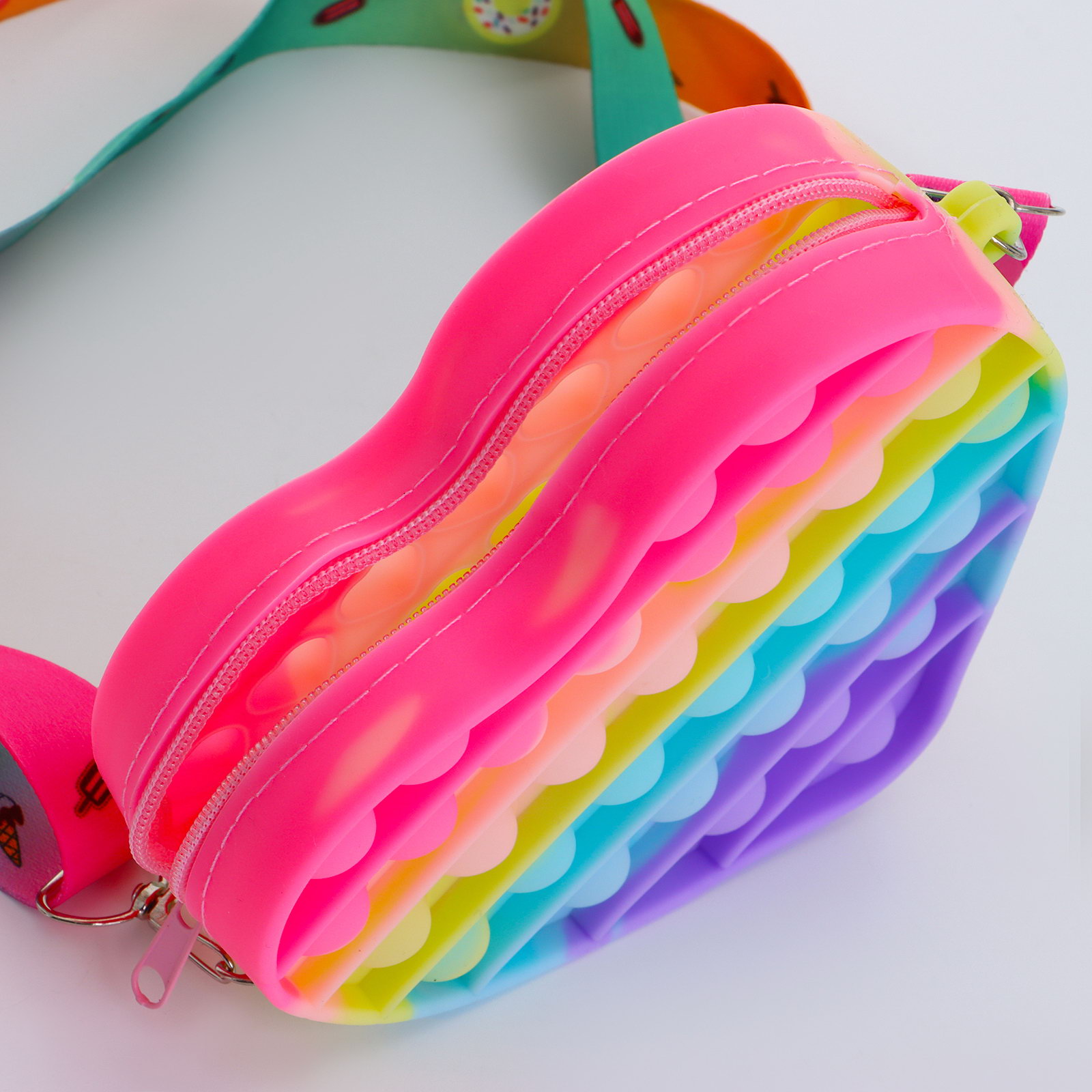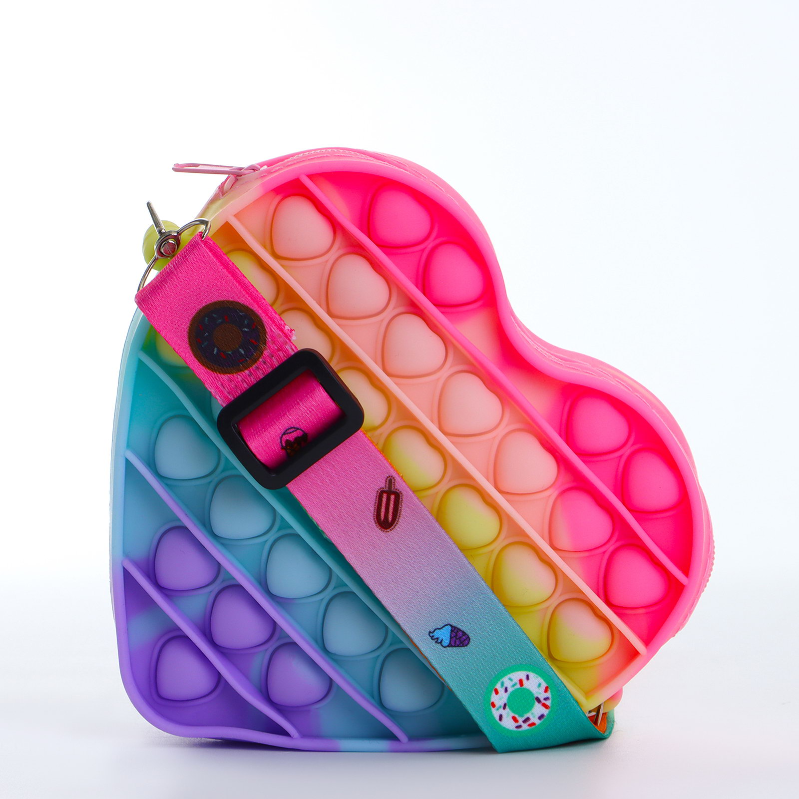 Особенности: Длинный ремень, Регулируемый ремень Модель сумки: На длинном ремне, На одной лямке Размер упаковки: 12 x 4 x 13 см. Цвет: Разноцветный Изображение: Сердце Для кого: Для девочки tnved: 4202922000 Количество отделений: 1 С наполнением: Нет Вид застёжки: Молния Высота, см: 12 Длина, см: 13 Размер: Маленький см Рисунок: Да Ширина, см: 4 Очаровательная детская сумочка станет идеальным аксессуаром для юной модницы. Изготовленная из высококачественного силикона, эта разноцветная сумочка с изображением сердца подчеркнёт стиль и индивидуальность каждой девочки. Благодаря своему компактному размеру, она прекрасно подойдёт для ежедневного использования или особых случаев. Преимущества