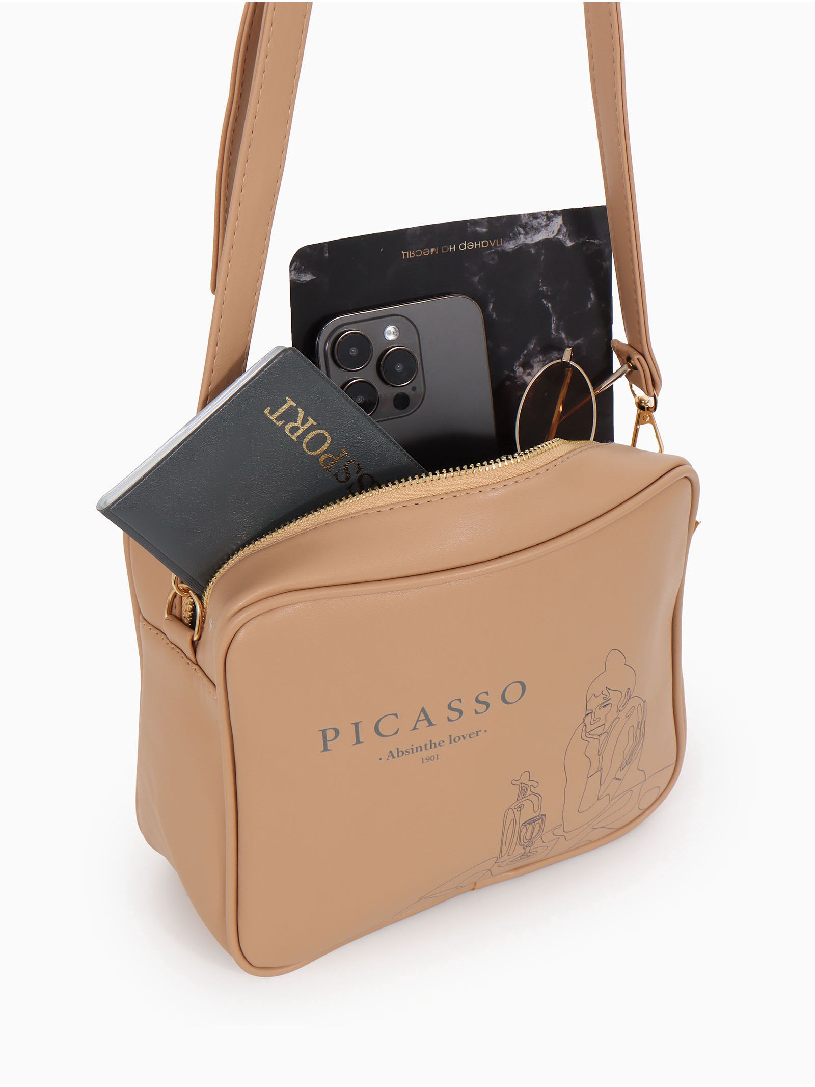 Сумка женская кросс-боди на молнии, 22x8x17 см, с принтом, бежевая, 8x22x17 см., TEXTURA, Китай