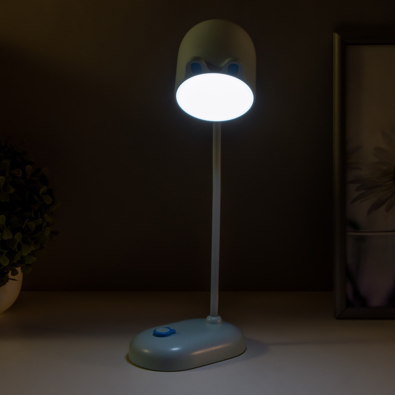 Управление светильником: С выключателем на корпусе, С диммером Размер упаковки: 10 x 30 x 10 см. Тип источника освещения: Лампа в комплекте tnved: 8539512000 Гарантийный срок, мес.: 6 Материал основания: Пластик Цвет основания: Голубой Тип рассеивателя: Без плафонов Мощность на цоколь, Вт: 3 Количество ламп: 1 Вид лампы: Светодиодная Тип крепления: На подставке Цоколь: Встроенные LED Оттенок рассеивателя: Цветные Материал рассеивателя: Пластик Вид: Детский Тип питания: От USB Длина, см: 8 Высота, см: 32 Особенности светильника: Без особенностей Ширина, см: 12.5 Световой поток, лм: 210 Особенность стиля: Школьный Индивидуальная упаковка: Картонная коробка Сертификат: ЕАС Настольная лампа "Мими" в голубом цвете станет отличным выбором для детской комнаты. Её стильный дизайн и компактные размеры идеально подойдут для рабочего стола школьника. Встроенные светодиоды создают мягкое и равномерное освещение, обеспечивая комфорт для глаз. Преимущества