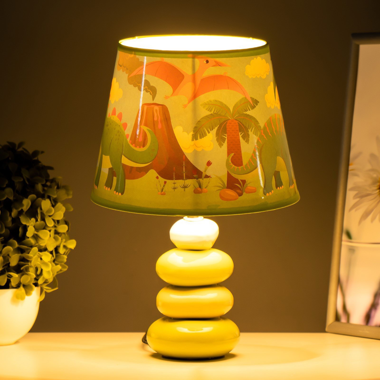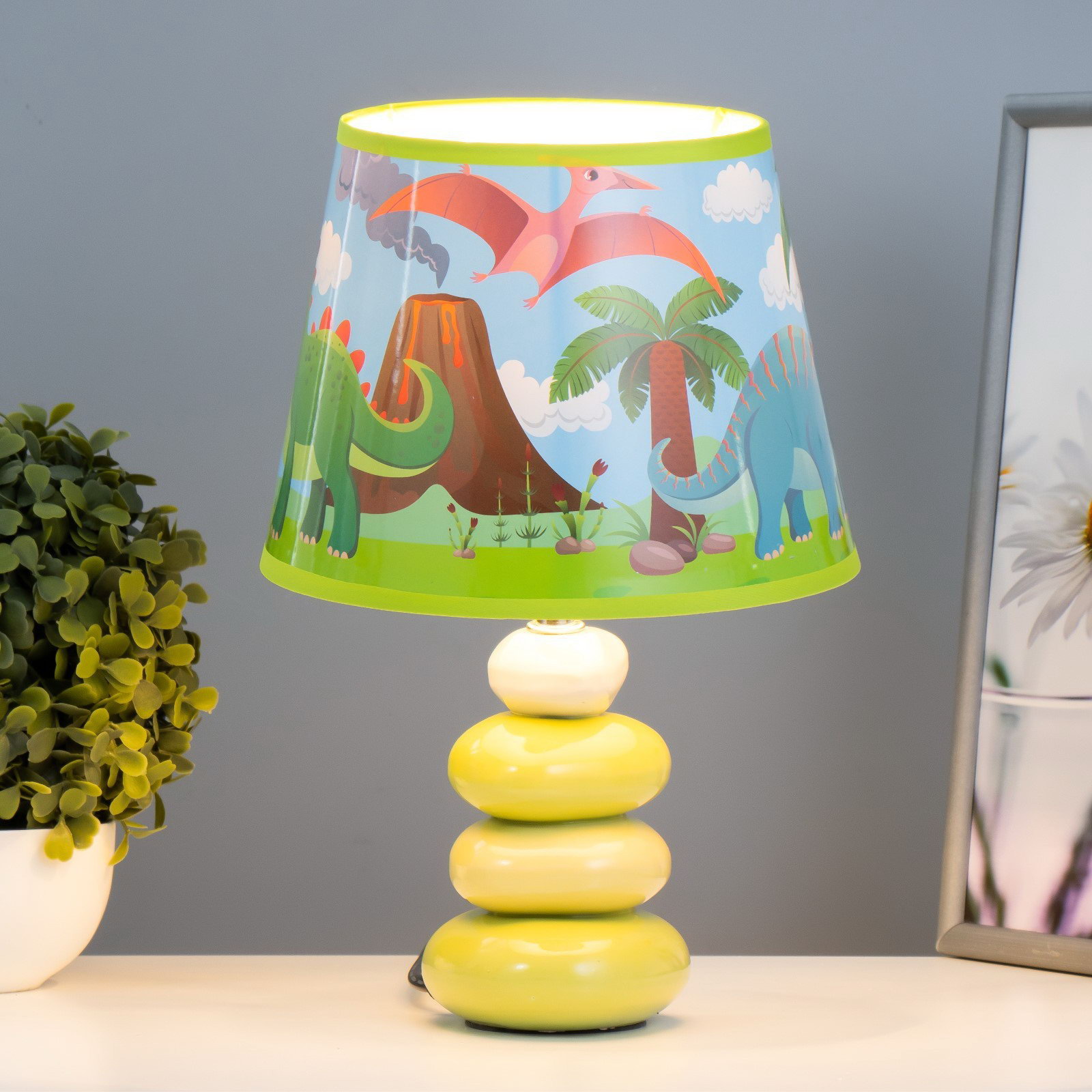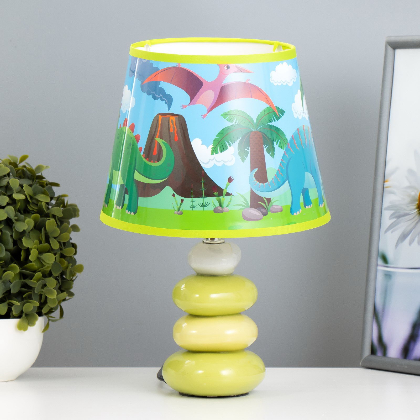 Настольная лампа с абажуром "Динозавры", Е14, 15 Вт, зелёный, 20x20x30 см, 20x30x20 см., RISALUX, Китай