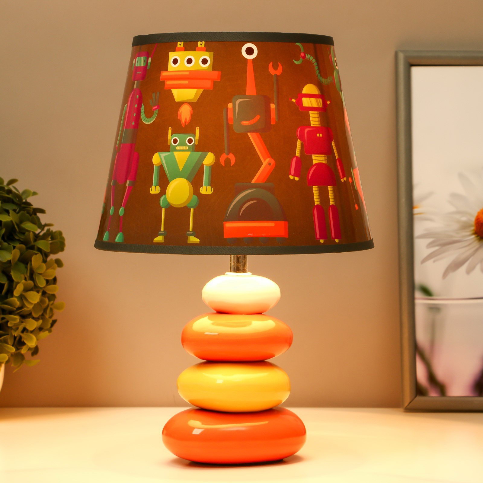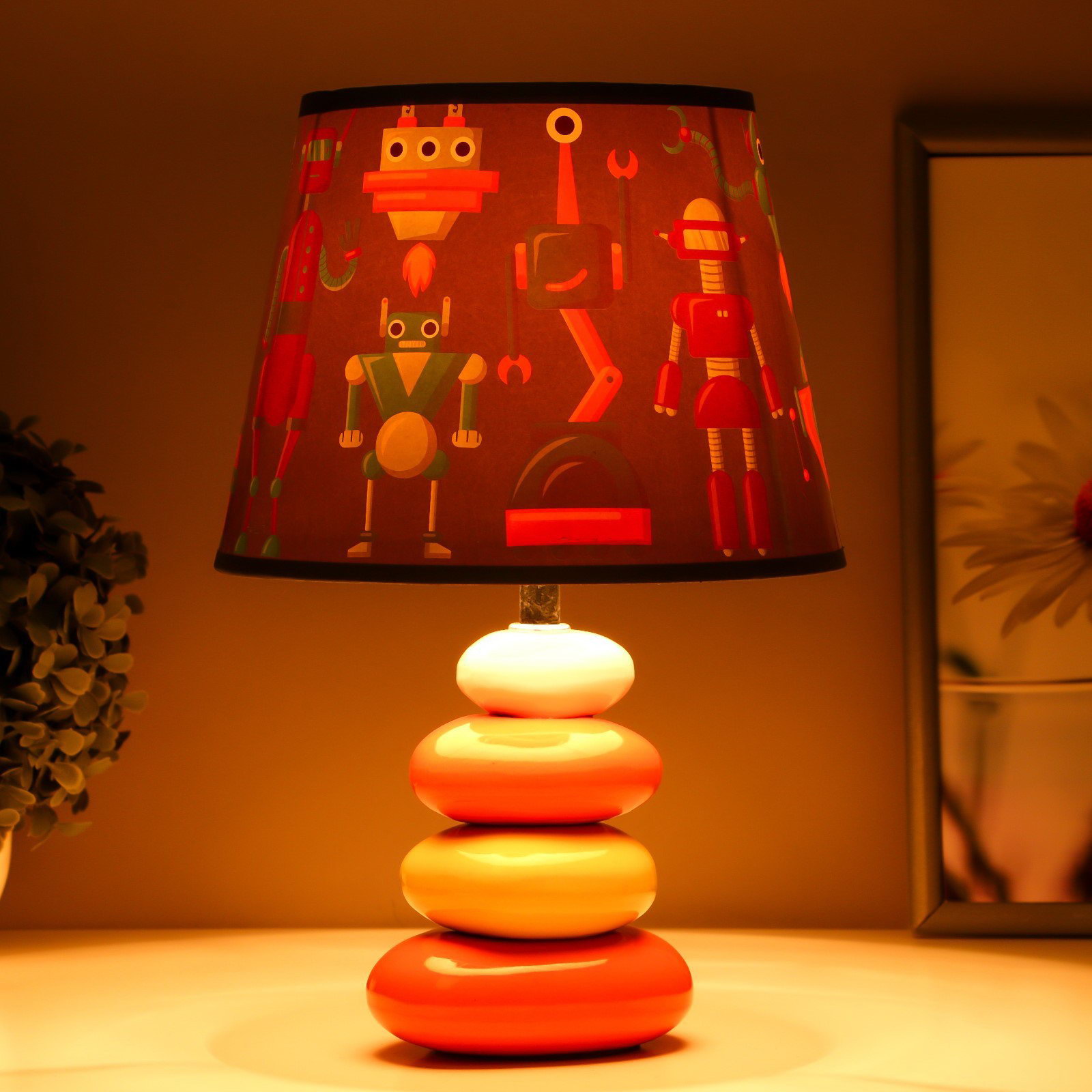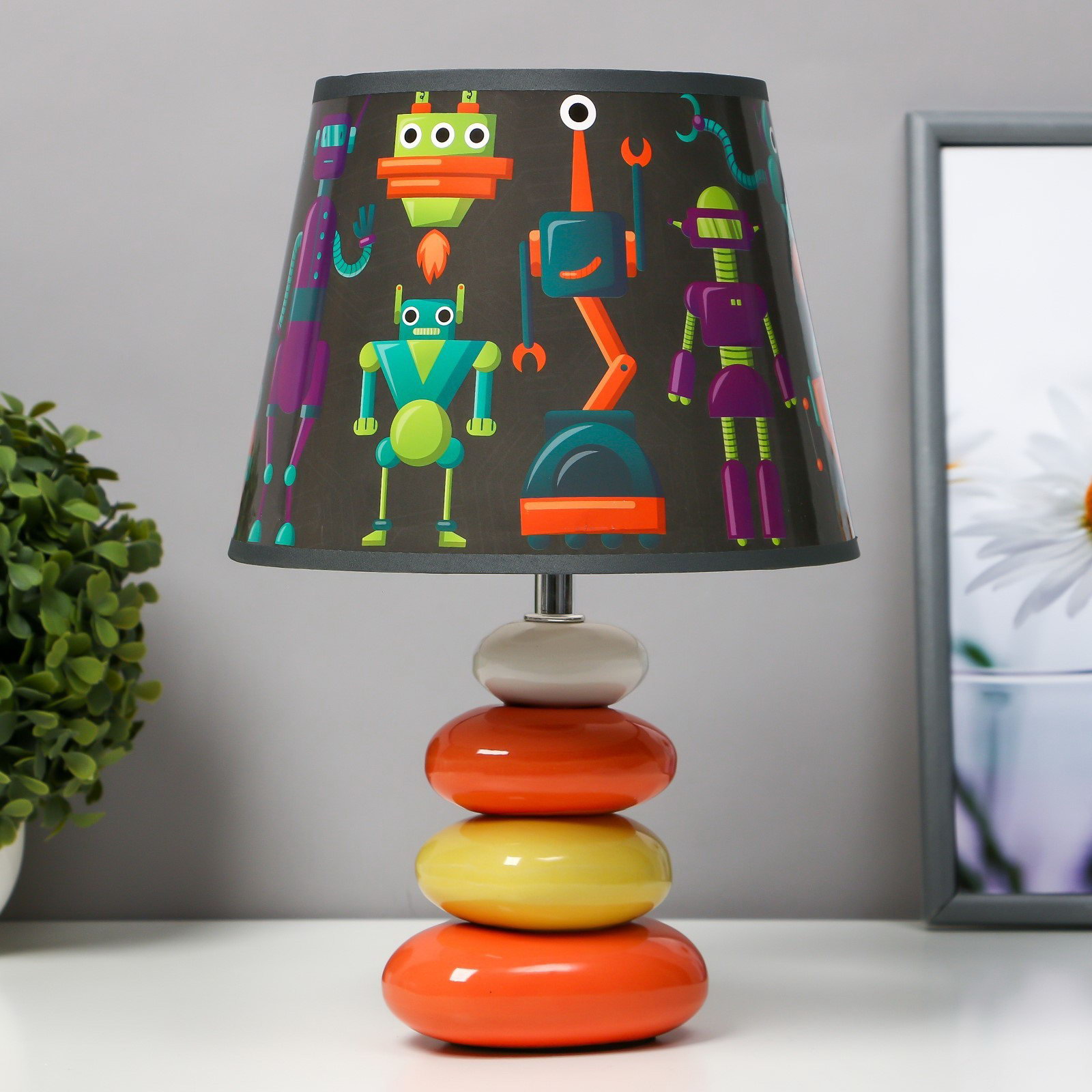 Настольная лампа с абажуром "Роботы", Е14, 15 Вт, 20x20x30 см, 20x30x20 см., RISALUX, Китай