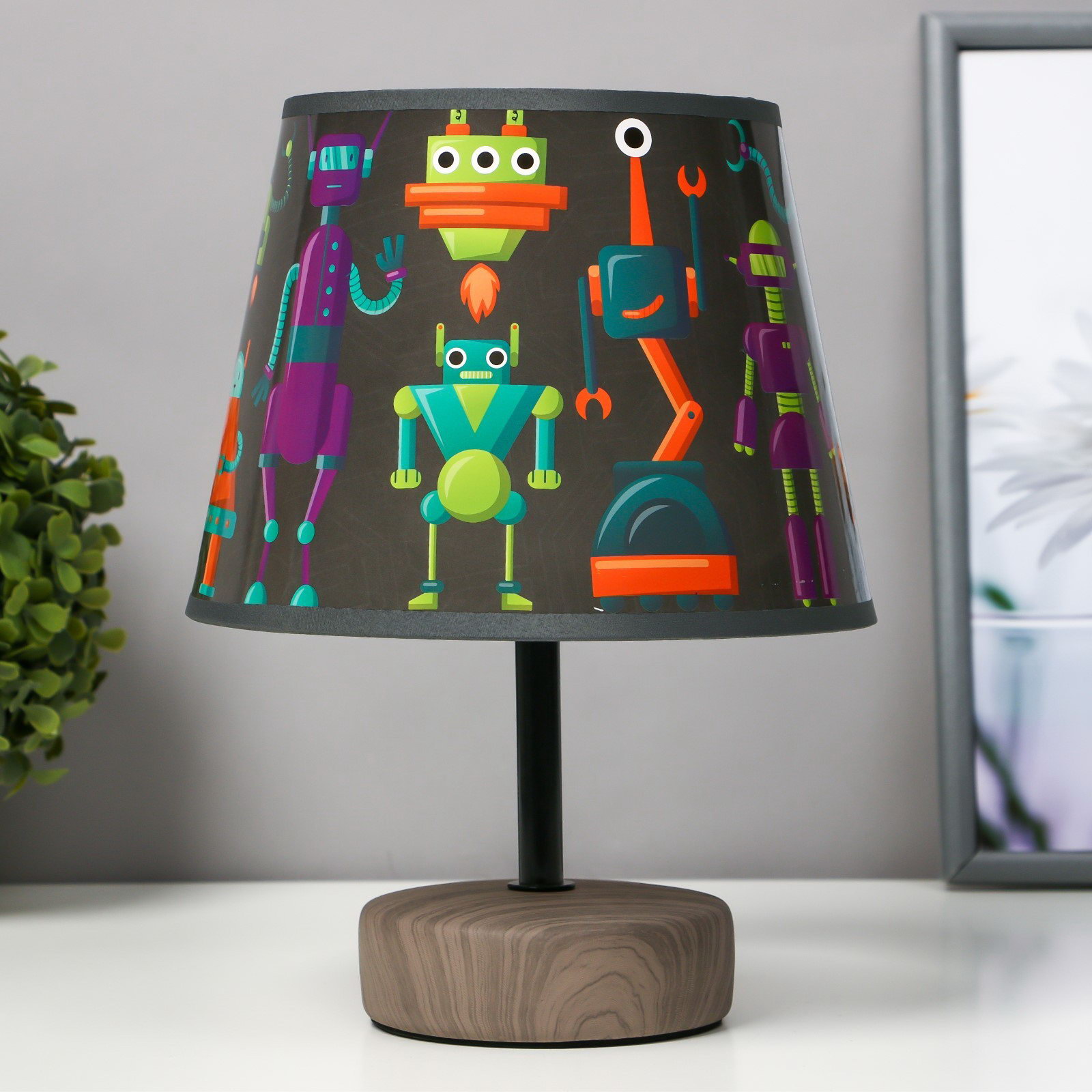 Настольная лампа с абажуром "Роботы", Е14, 15 Вт, 20x20x27 см, 20x27x20 см., RISALUX, Китай