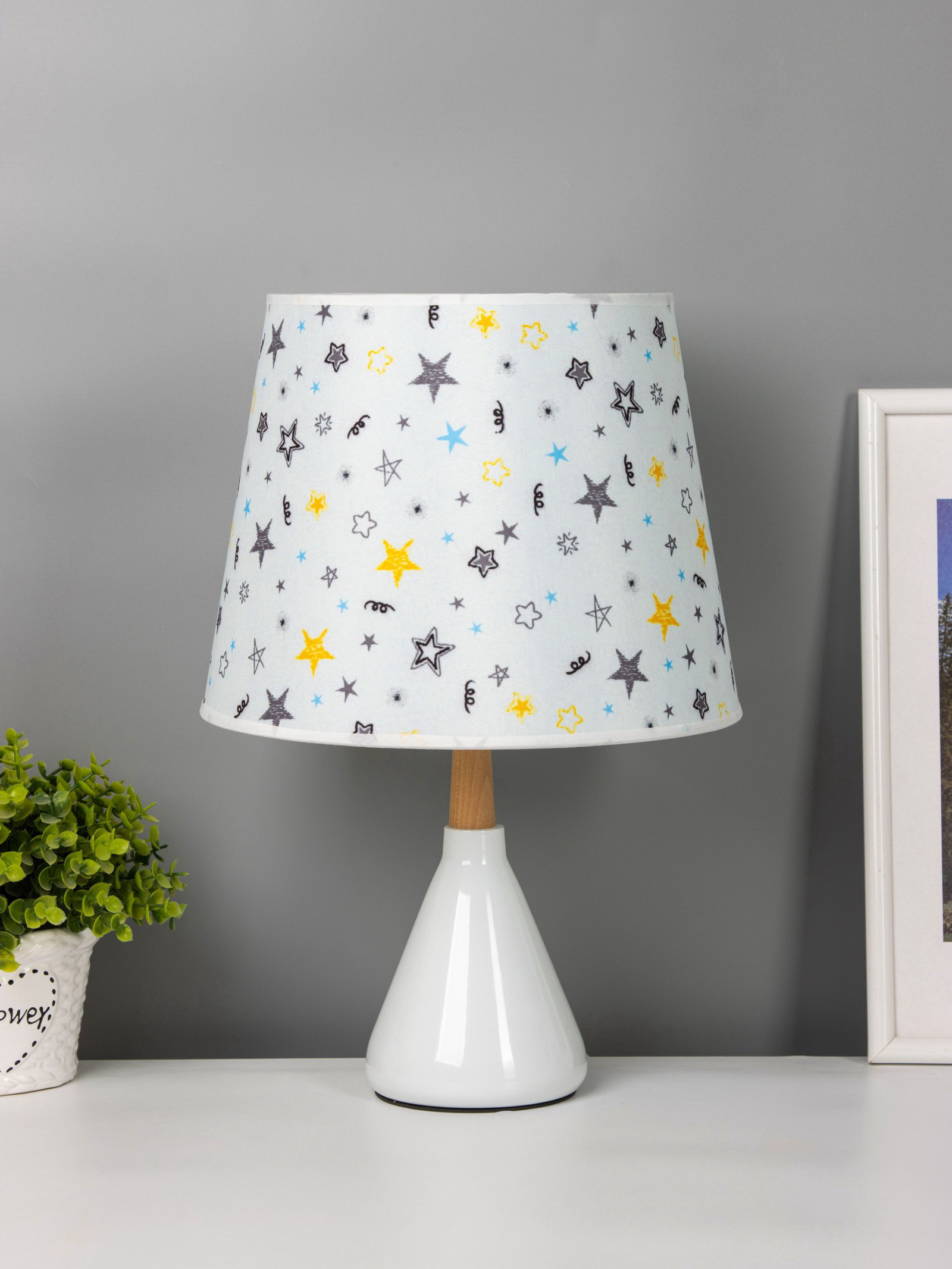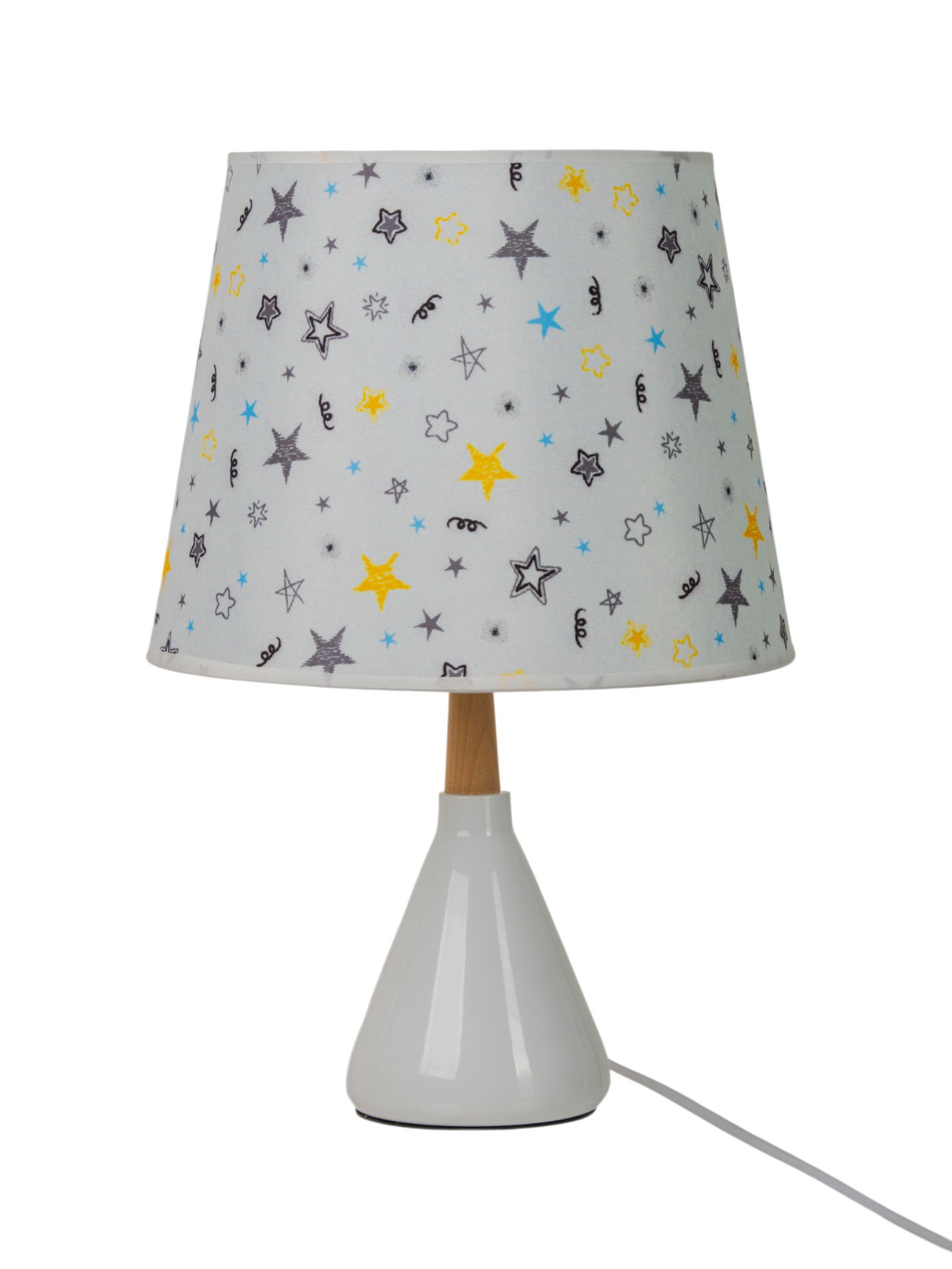 Вид лампы: Накаливания, Филаментная, Энергосберегающая Размер упаковки: 24 x 41 x 24 см. tnved: 9405290000 Высота, см: 35 Ширина, см: 24 Световой поток, лм: [260,340] Количество ламп: 1 Мощность на цоколь, Вт: 40 Длина, см: 24 Тип питания: От сети 220 В Цвет рассеивателя: Разноцветный Тип источника освещения: Лампа не в комплекте Направление рассеивателя: В стороны Цоколь: E14 Управление светильником: С выключателем на проводе Тип рассеивателя: Абажур Форма рассеивателя: Цилиндр Особенности светильника: Без особенностей Материал рассеивателя: Текстиль Цвет основания: Белый Оттенок рассеивателя: Цветные Материал основания: Керамика Свет, который добавляет цвета в интерьер. Настольная лампа с текстильным абажуром и керамическим основанием уютное решение для прикроватной тумбы, письменного стола или зоны отдыха. Её белая керамика, цилиндрический разноцветный абажур и мягкий рассеянный свет создают атмосферу тепла и домашнего уюта в интерьерах, где важны индивидуальность и простота.