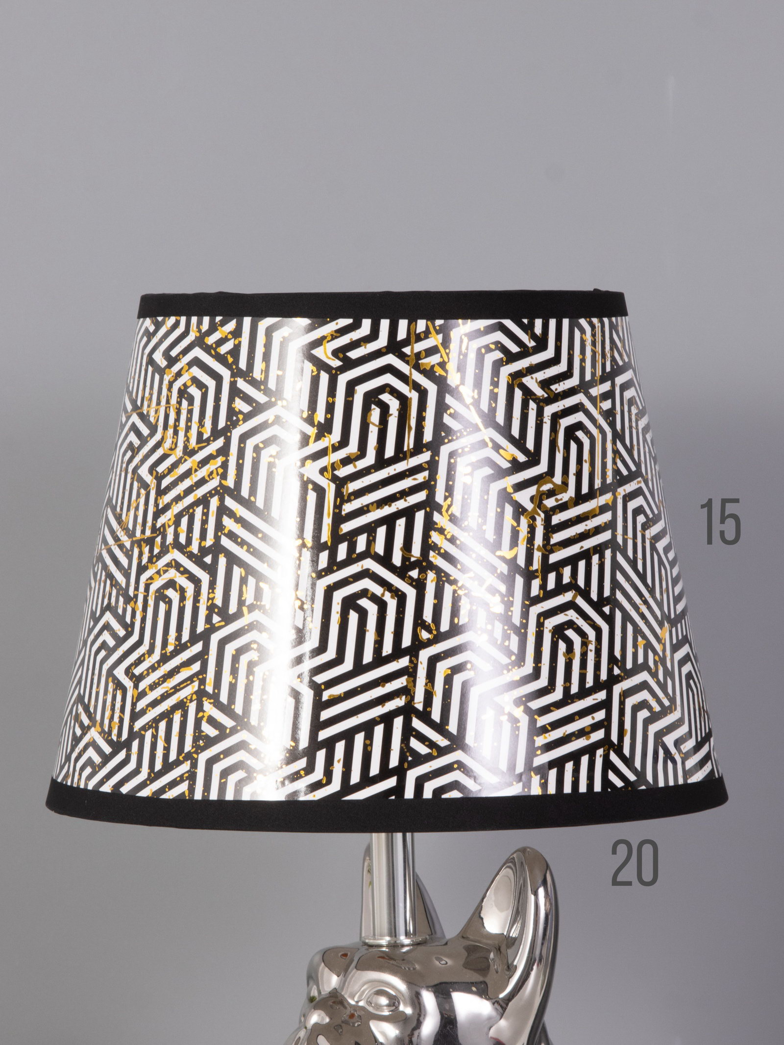 Вид лампы: Накаливания, Филаментная, Энергосберегающая Размер упаковки: 20 x 20 x 43 см. tnved: 9405290000 Количество ламп: 1 Оттенок рассеивателя: Тёмные тона Ширина, см: 20 Мощность на цоколь, Вт: 40 Материал основания: Керамика Особенности светильника: Без особенностей Цвет основания: Серебро Длина, см: 20 Световой поток, лм: [500,2500] Высота, см: 40 Форма рассеивателя: Конусный Направление рассеивателя: В стороны Тип питания: От сети 220 В Тип источника освещения: Лампа не в комплекте Цвет рассеивателя: Чёрный Управление светильником: С выключателем на проводе Форма: Собака Материал рассеивателя: Пластик Цоколь: E14 Тип рассеивателя: Абажур Очаровательный свет для уютного уголка! Настольная лампа в форме щенка с цоколем E14 это не просто источник света, а живой акцент на письменном столе, тумбочке или полке. Её керамическое основание в серебристом исполнении и чёрный конусный абажур создают сбалансированный образ: игривый, но не вычурный, тёплый, но сдержанно элегантный.