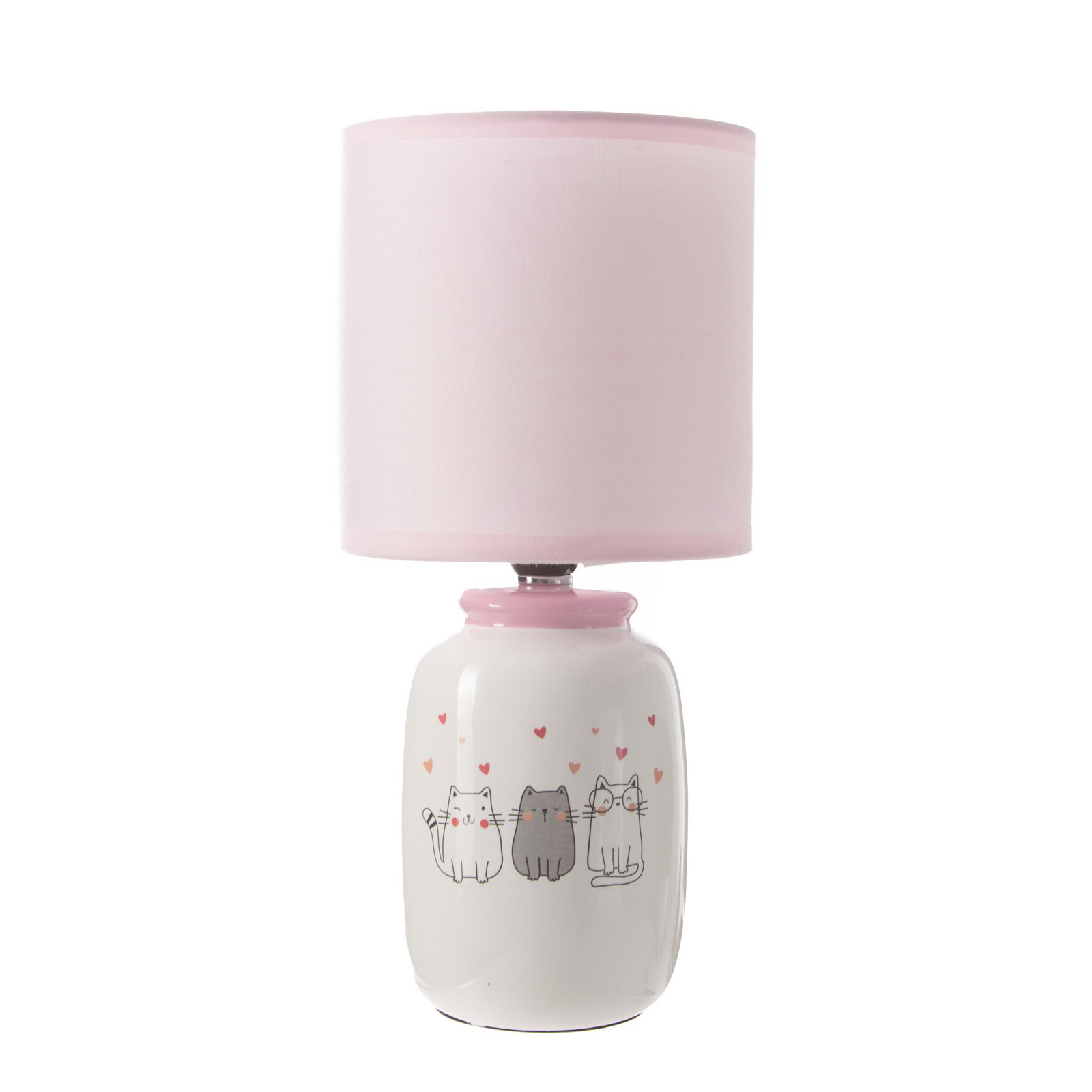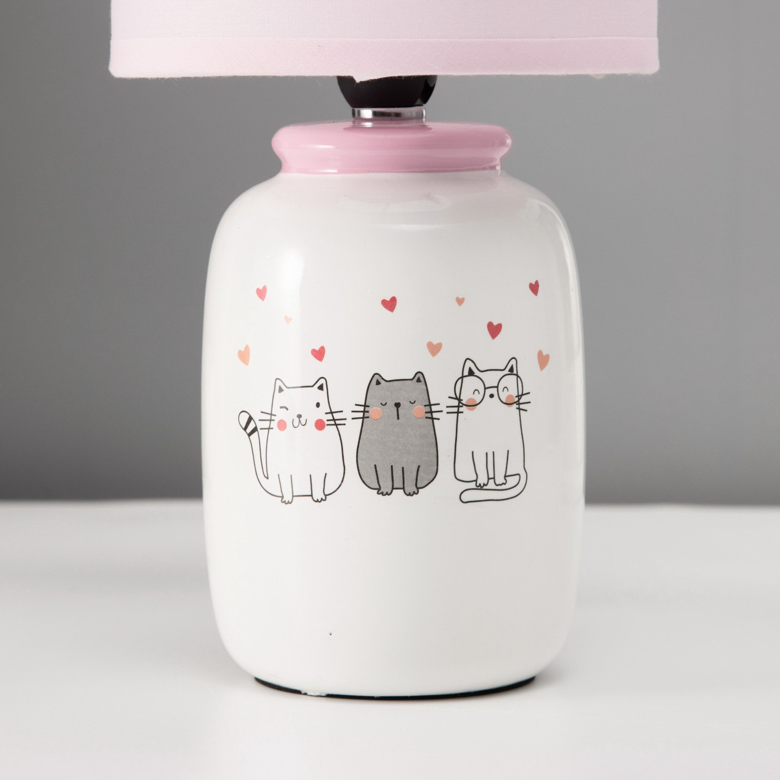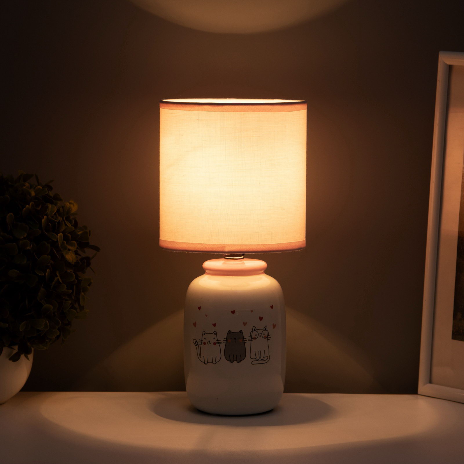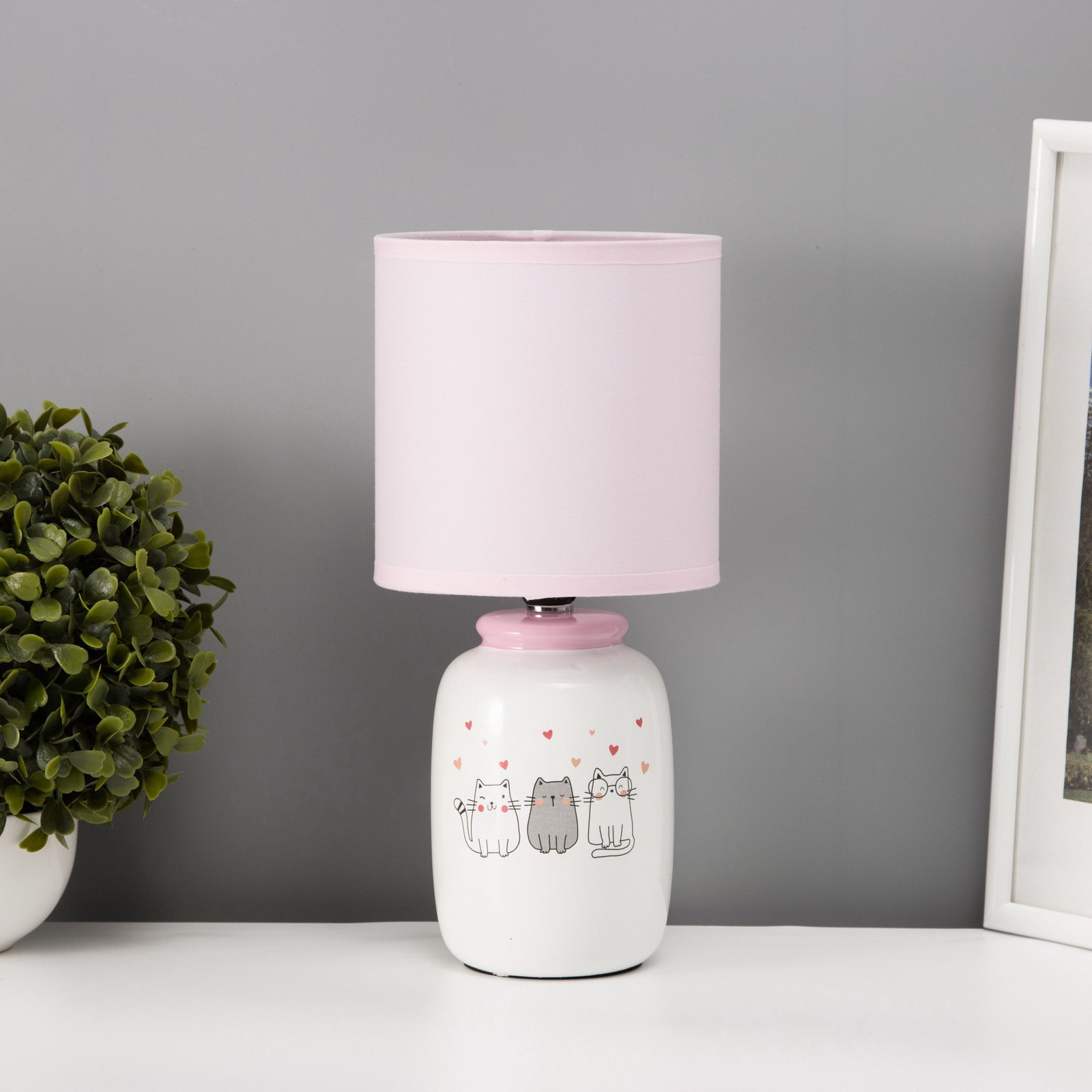 Настольная лампа с абажуром "Кошечка" детская, Е14, 40 Вт, бело-розовый, 13x13x27 см, RISALUX, Китай