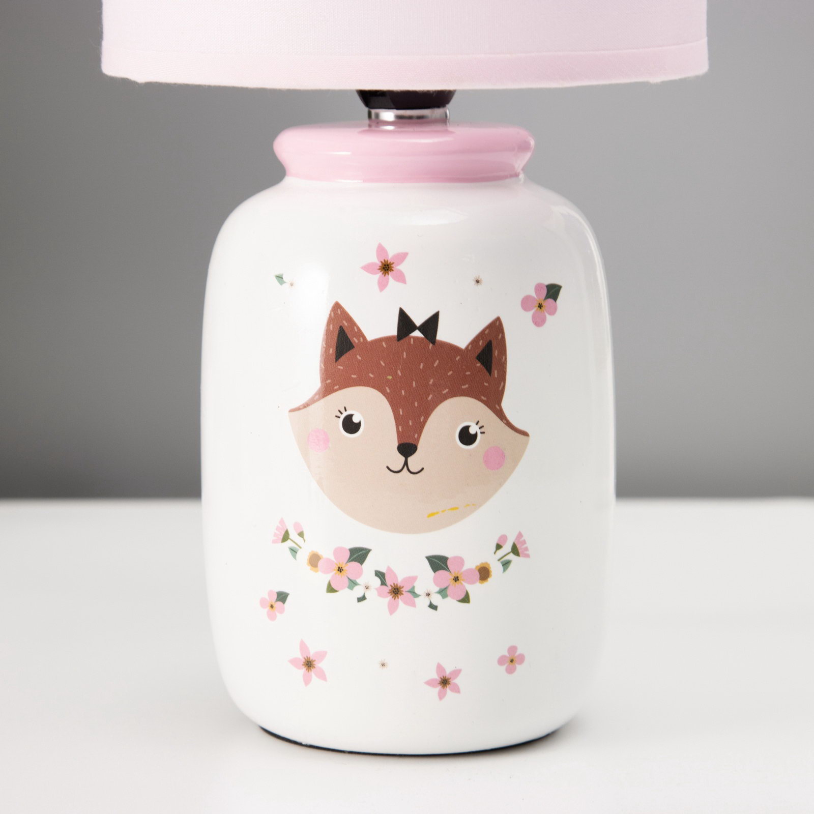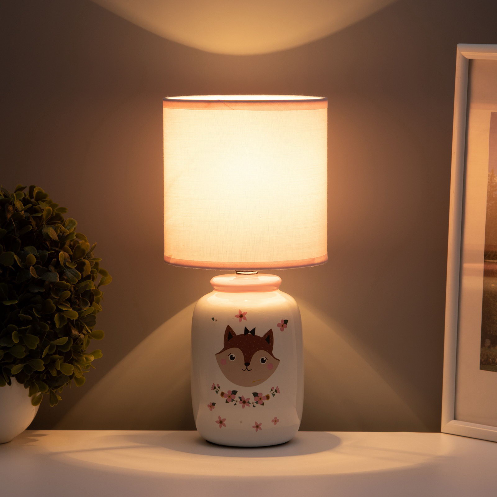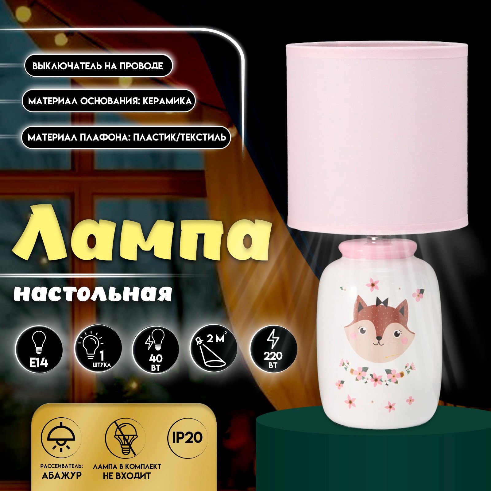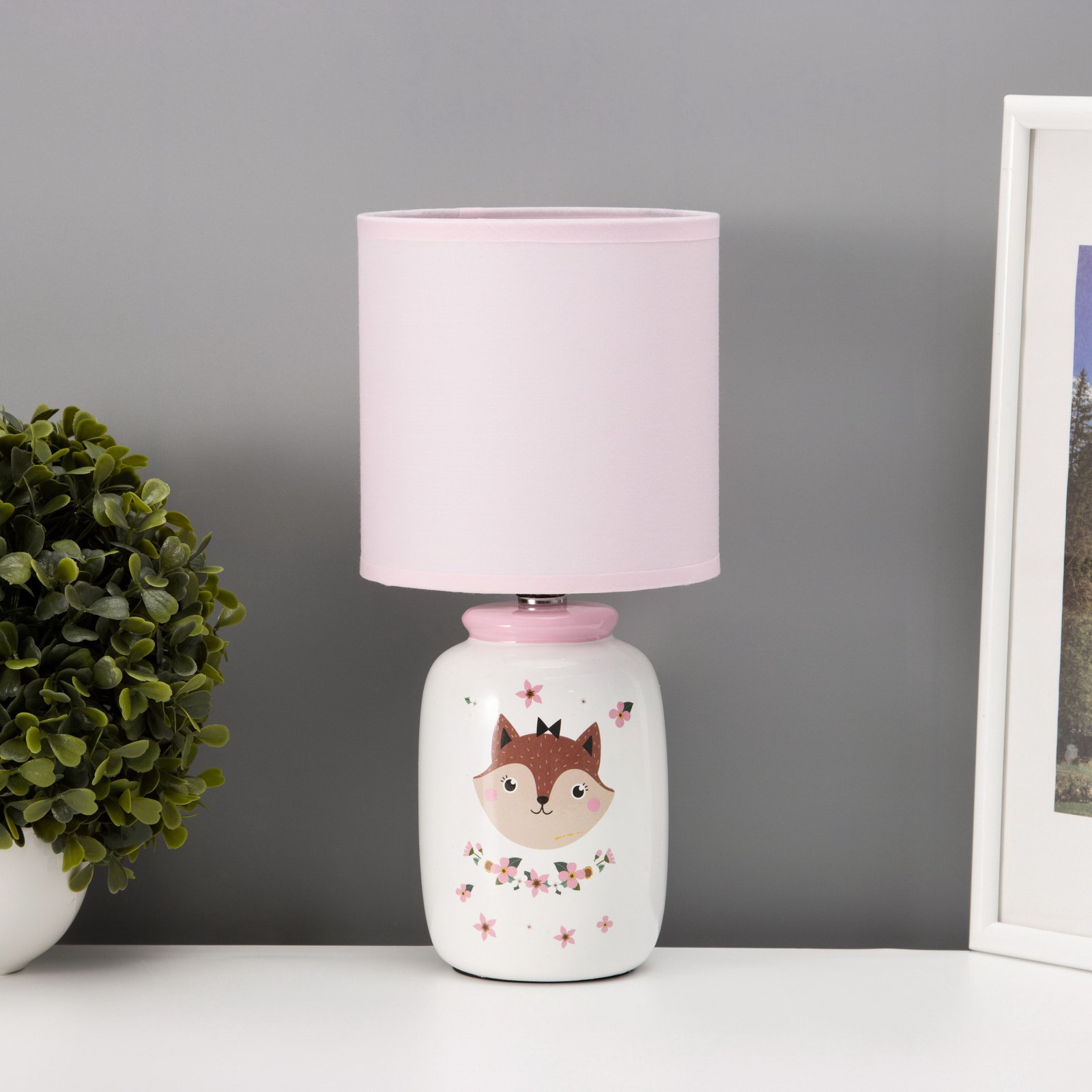 Настольная лампа с абажуром "Киса" детская, Е14, 40 Вт, бело-розовый, 13x13x27 см, RISALUX, Китай