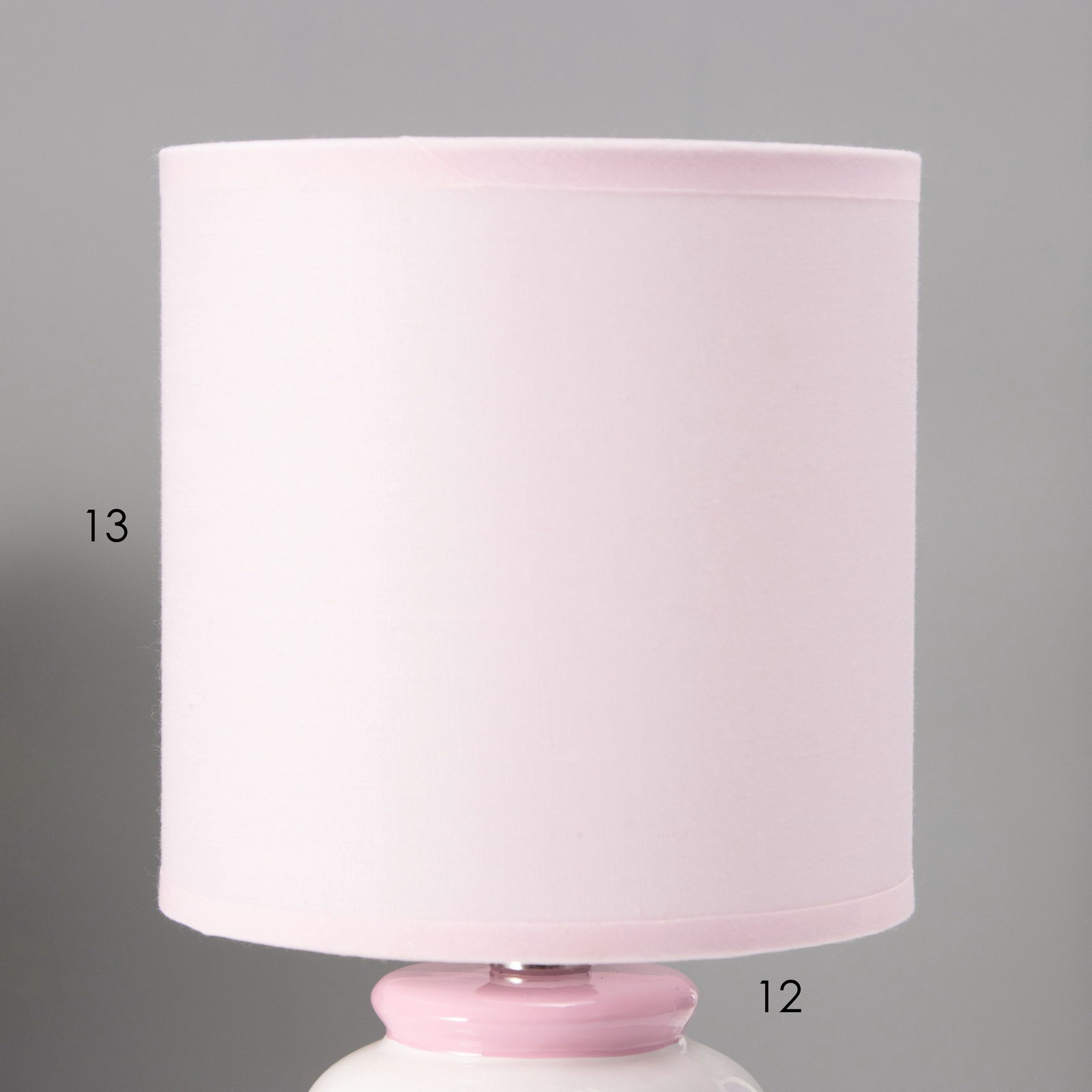Материал рассеивателя: Пластик, Текстиль Размер упаковки: 14 x 14 x 19 см. Длина, см: 13 Высота, см: 27 Количество ламп: 1 Мощность на цоколь, Вт: 40 Ширина, см: 13 Материал основания: Керамика Цвет рассеивателя: Розовый Цоколь: E14 Тип рассеивателя: Абажур Оттенок рассеивателя: Цветные Цвет основания: Белый Форма: Цилиндр Вид лампы: Накаливания Форма рассеивателя: Цилиндр Особенности светильника: Без особенностей Направление рассеивателя: Вверх Управление светильником: С выключателем на проводе Тип источника освещения: Лампа не в комплекте Тип питания: От сети 220 В Гарантийный срок, мес.: 12 tnved: 9405290000 tnved: 9405290000 Эта очаровательная настольная лампа станет прекрасным дополнением детской комнаты, создавая уютную и яркую атмосферу. С белым керамическим основанием и розовым абажуром она идеально впишется в любой интерьер, добавляя нотку игривости и стиля. Особенности