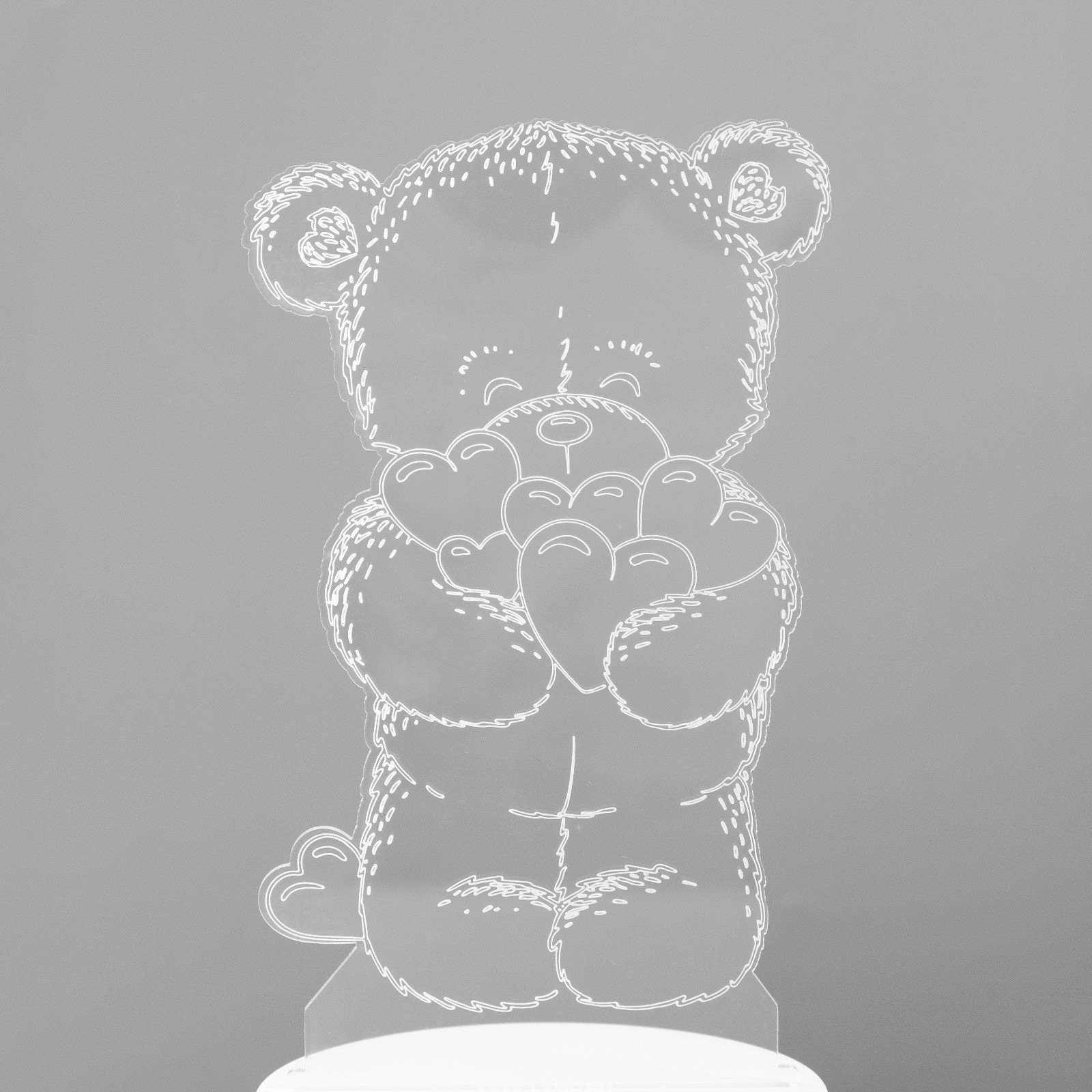 Светильник 3D "Мишутка", LED-ночник, RGB, от сети, 9.5x9.5x16 см, 9.5x9.5x16 см., RISALUX, Китай