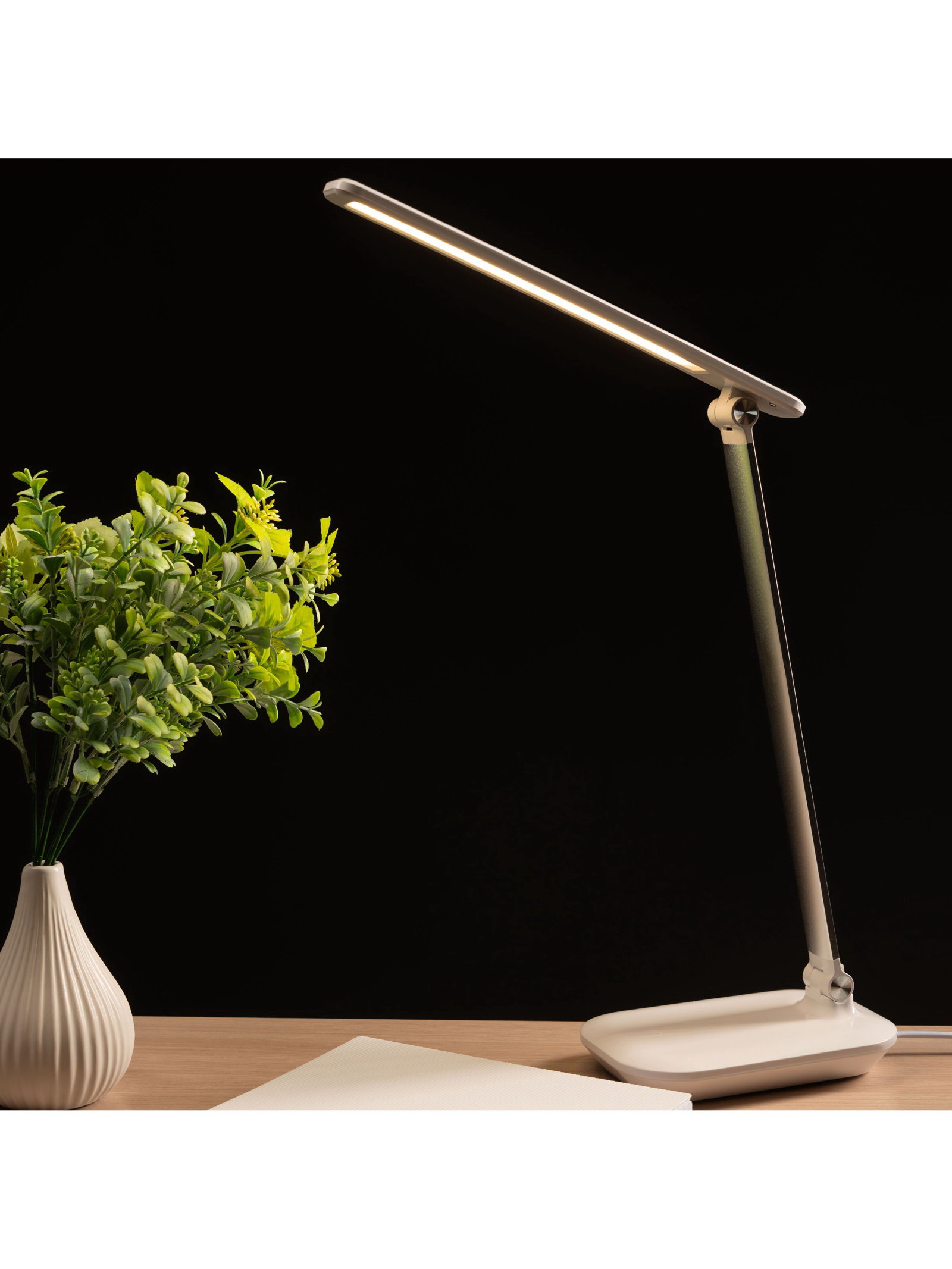 Размер упаковки: 13 x 40 x 6 см. tnved: 9405210000 Температурное ограничение: Нет Материал основания: Пластик Вид лампы: Светодиодная Длина, см: 28.5 Высота, см: 38.5 Цвет основания: Белый Материал рассеивателя: Пластик Цоколь: Встроенные LED Управление светильником: С выключателем на корпусе Оттенок рассеивателя: Светлые тона Тип крепления: На подставке Тип питания: От сети 220 В Количество ламп: 1 Мощность на цоколь, Вт: 6 Направление рассеивателя: Вниз Вид: Офисная/Школьная Тип рассеивателя: Без плафонов Особенности светильника: Без особенностей Ширина, см: 11 Световой поток, лм: 400 Тип источника освещения: Встроенная LED Цвет рассеивателя: Белый Компактная настольная лампа со встроенным светодиодным источником света мощностью 6 Вт обеспечивает комфортное и равномерное освещение рабочей поверхности. Нейтральная цветовая температура около 4100 К создаёт естественный свет, подходящий для чтения, учёбы и работы за компьютером. Лаконичный белый корпус из прочного пластика легко вписывается в современный интерьер рабочего стола дома или в офисе. Конструкция светильника направляет свет вниз, эффективно освещая документы, тетради и клавиатуру. Благодаря светодиодной технологии лампа экономно расходует электроэнергию и отличается длительным сроком службы, обеспечивая стабильное освещение без лишнего нагрева. | ||