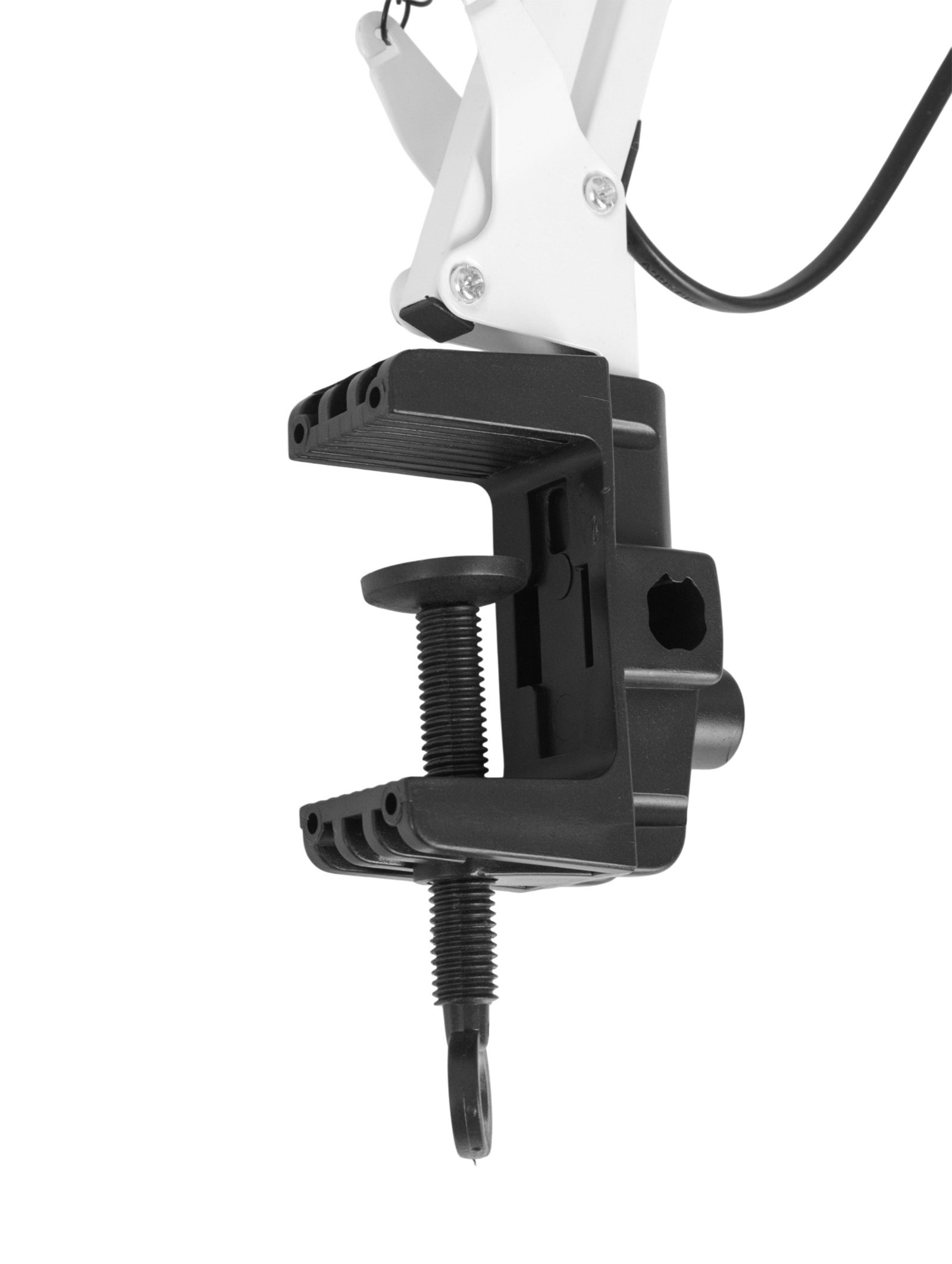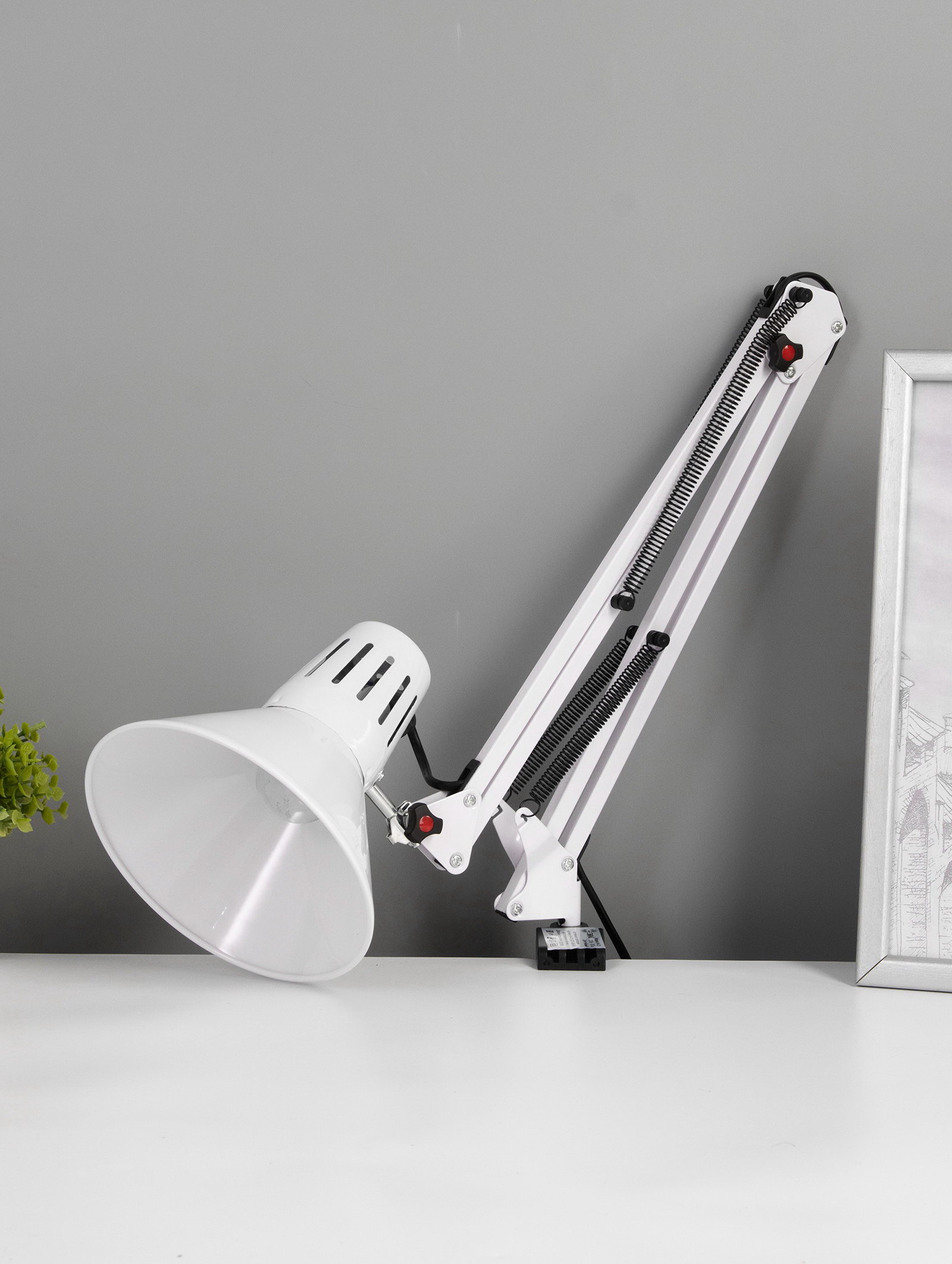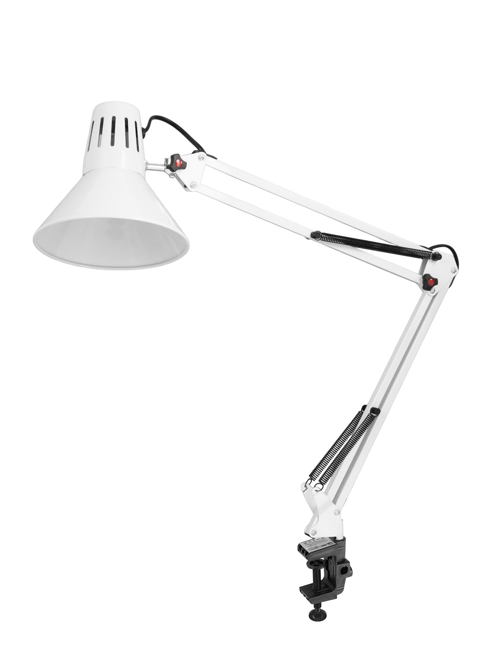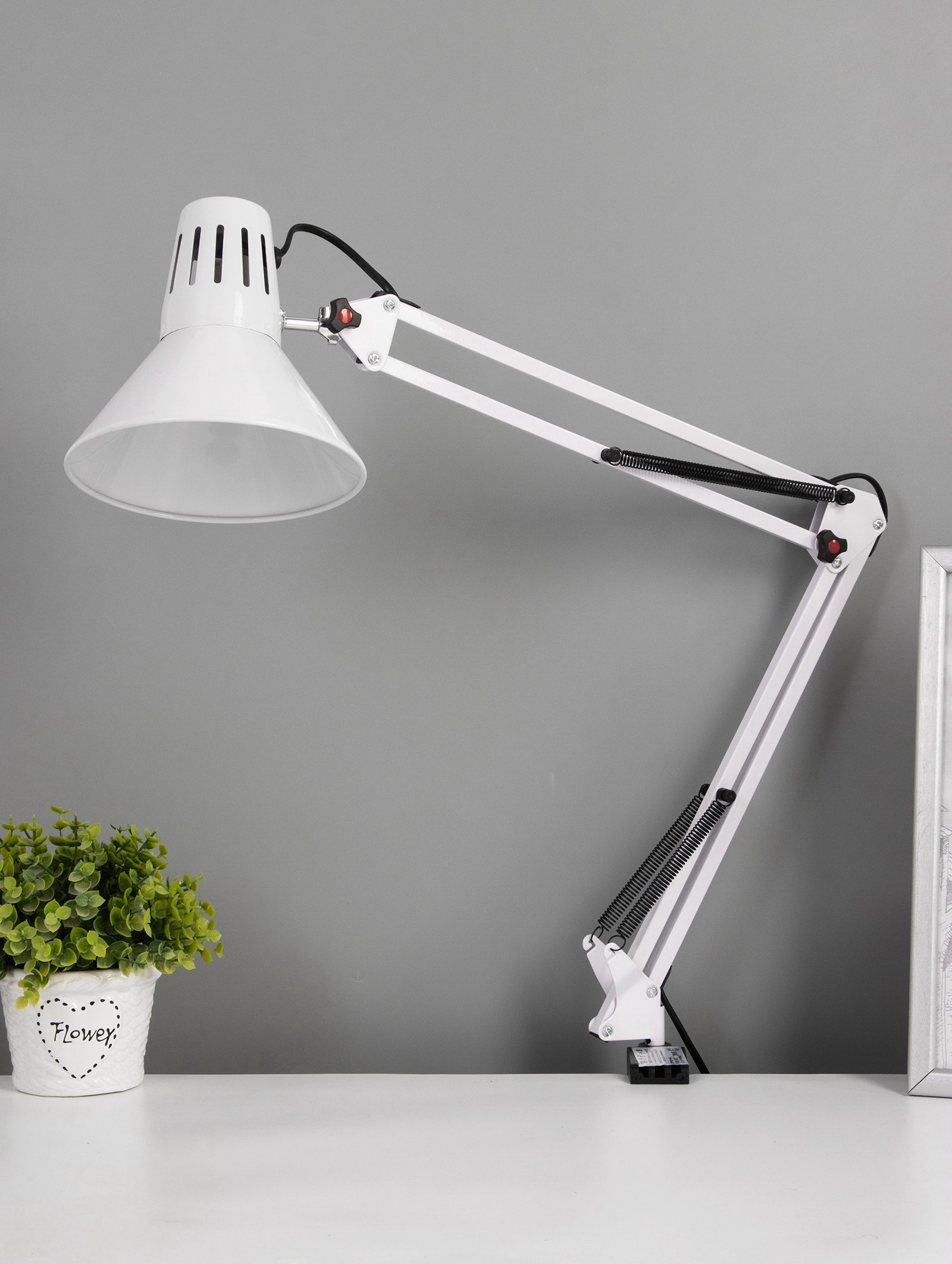 Вид лампы: Накаливания, Светодиодная Размер упаковки: 20 x 10 x 43 см. tnved: 9405290000 Температурное ограничение: Нет Тип питания: От сети 220 В Материал основания: Металл Цвет основания: Белый Управление светильником: С выключателем на проводе Материал рассеивателя: Металл Оттенок рассеивателя: Светлые тона Тип крепления: На струбцине Цоколь: E27 Мощность на цоколь, Вт: 40 Тип рассеивателя: Плафон Высота, см: 85 Длина, см: 17 Особенности светильника: Без особенностей Ширина, см: 45 Количество ламп: 1 Вид: Офисная/Школьная Световой поток, лм: [400,1100] Тип источника освещения: Лампа не в комплекте Цвет рассеивателя: Белый Направление рассеивателя: Поворотное Форма рассеивателя: Конусный Настольная лампа с креплением на струбцине обеспечивает точечное освещение рабочей зоны и помогает рационально использовать пространство стола. Конструкция фиксируется на краю поверхности, освобождая место для работы и сохраняя устойчивость даже при активной эксплуатации. Поворотный механизм и регулируемая высота позволяют направить свет точно туда, где он необходим. Конусный металлический плафон формирует направленный световой поток без лишнего рассеивания, что повышает комфорт при чтении, письме и работе с документами. Металлический корпус отличается прочностью и долговечностью. Белое покрытие визуально облегчает конструкцию и хорошо сочетается с современными интерьерами, создавая аккуратный и нейтральный внешний вид рабочего места. Лампа рассчитана на одну лампу с цоколем E27 мощностью до 40 Вт и совместима с различными типами источников света. Управление осуществляется с помощью выключателя на проводе, что удобно в повседневном использовании. | ||