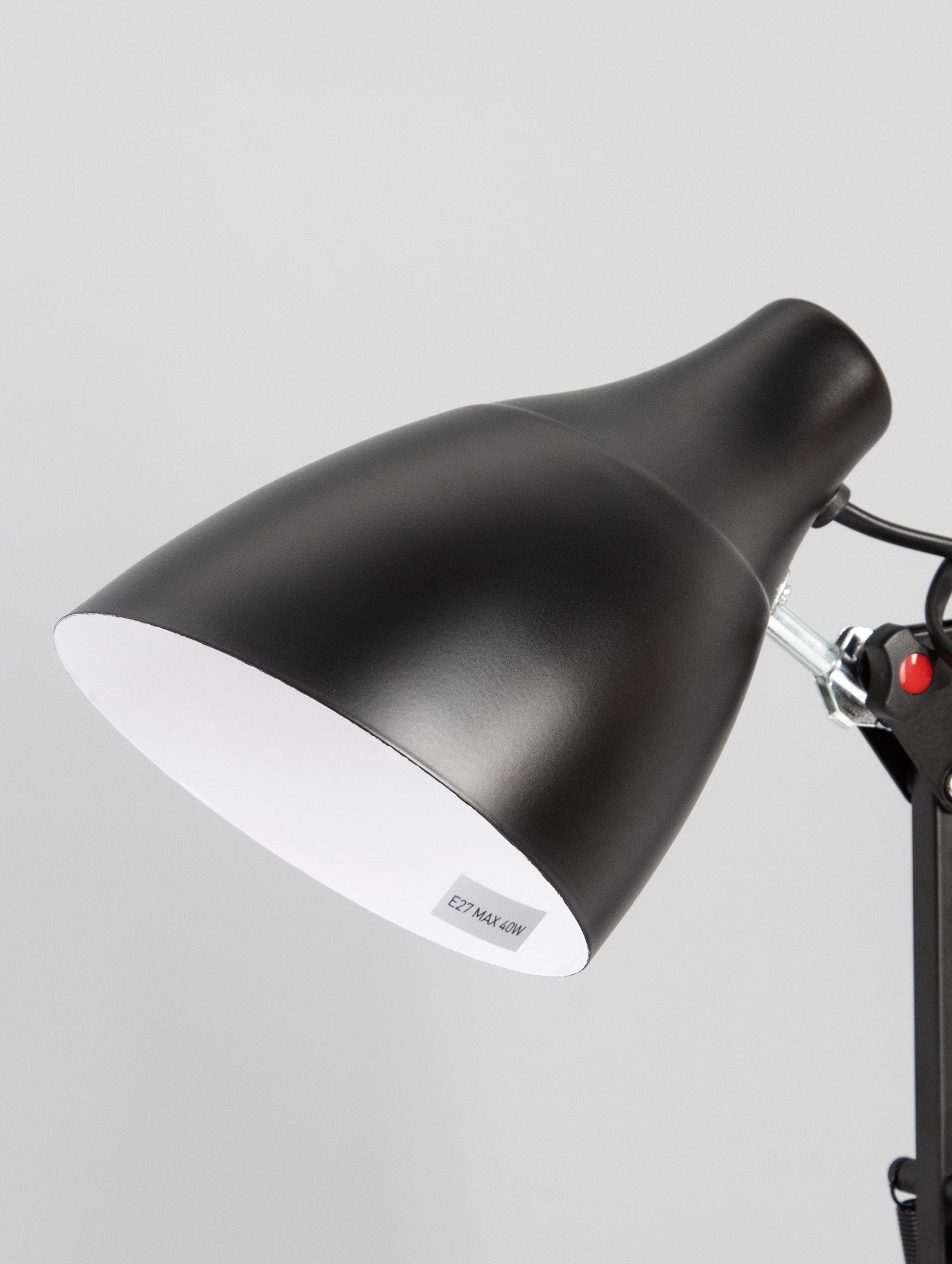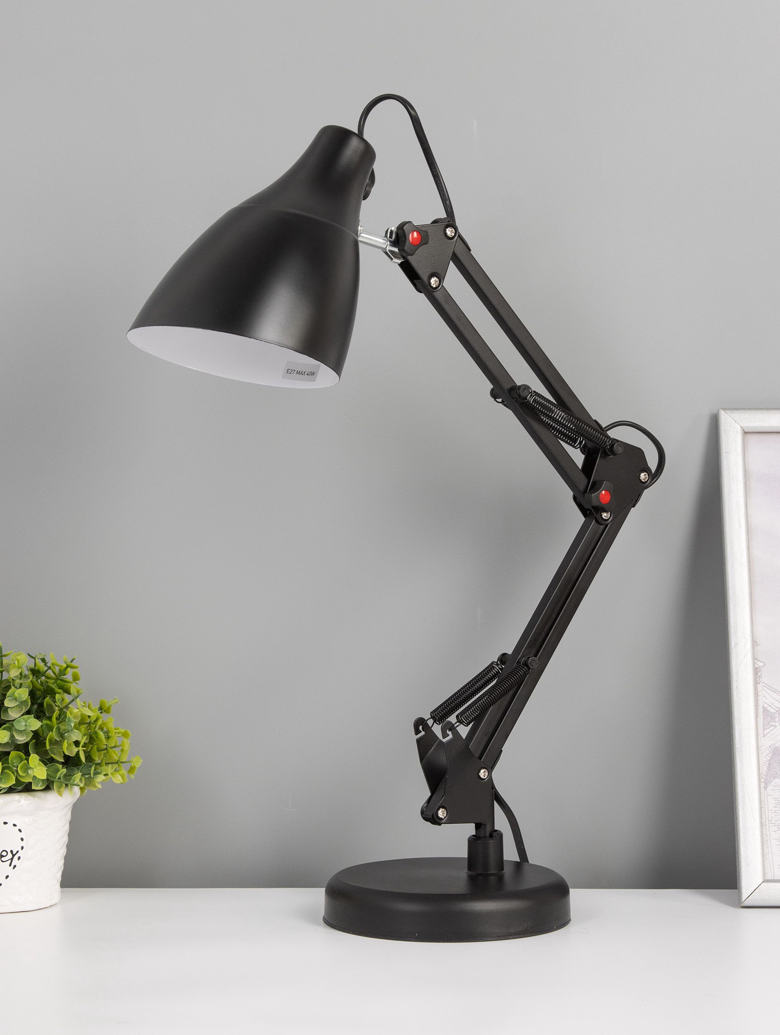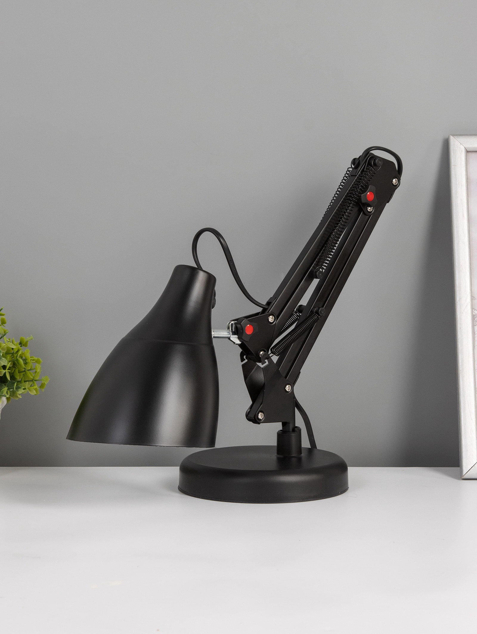 Вид лампы: Накаливания, Светодиодная Размер упаковки: 16 x 16 x 29 см. tnved: 9405290000 Температурное ограничение: Нет Тип питания: От сети 220 В Материал основания: Металл Тип крепления: На подставке Материал рассеивателя: Металл Управление светильником: С выключателем на проводе Оттенок рассеивателя: Тёмные тона Цоколь: E27 Цвет основания: Чёрный Мощность на цоколь, Вт: 40 Тип рассеивателя: Плафон Длина, см: 35 Высота, см: 55 Особенности светильника: Без особенностей Количество ламп: 1 Ширина, см: 15 Световой поток, лм: [400,1100] Вид: Офисная/Школьная Направление рассеивателя: Поворотное Форма рассеивателя: Конусный Тип источника освещения: Лампа не в комплекте Цвет рассеивателя: Чёрный Настольная лампа с креплением на струбцине разработана для точного освещения рабочей зоны без лишней нагрузки на поверхность стола. Конструкция фиксируется на краю столешницы, освобождая полезное пространство и обеспечивая устойчивое положение даже при активной эксплуатации. Поворотный механизм и регулируемая высота до 85 см позволяют гибко настраивать направление света. Конусный металлический плафон концентрирует световой поток и направляет его непосредственно на рабочую область, что особенно важно при чтении, письме или работе с мелкими деталями. Металлическое основание и корпус обеспечивают прочность и долговечность конструкции. Чёрное матовое покрытие делает лампу универсальным решением для офисных и домашних интерьеров, а также снижает визуальную нагрузку в рабочем пространстве. Модель рассчитана на одну лампу с цоколем E27 мощностью до 40 Вт и поддерживает различные типы источников света. Управление осуществляется с помощью выключателя на проводе, что удобно при повседневном использовании. | ||