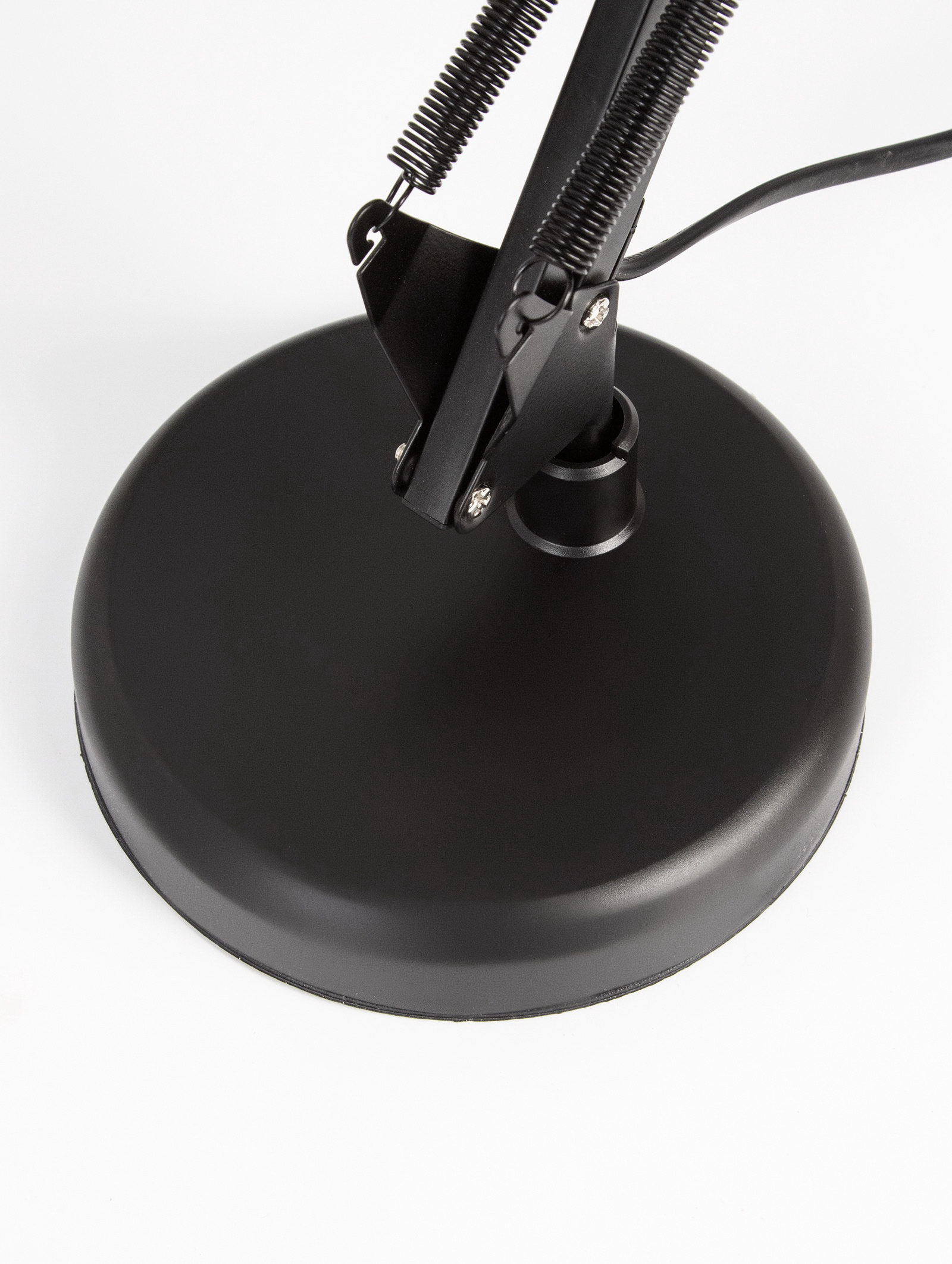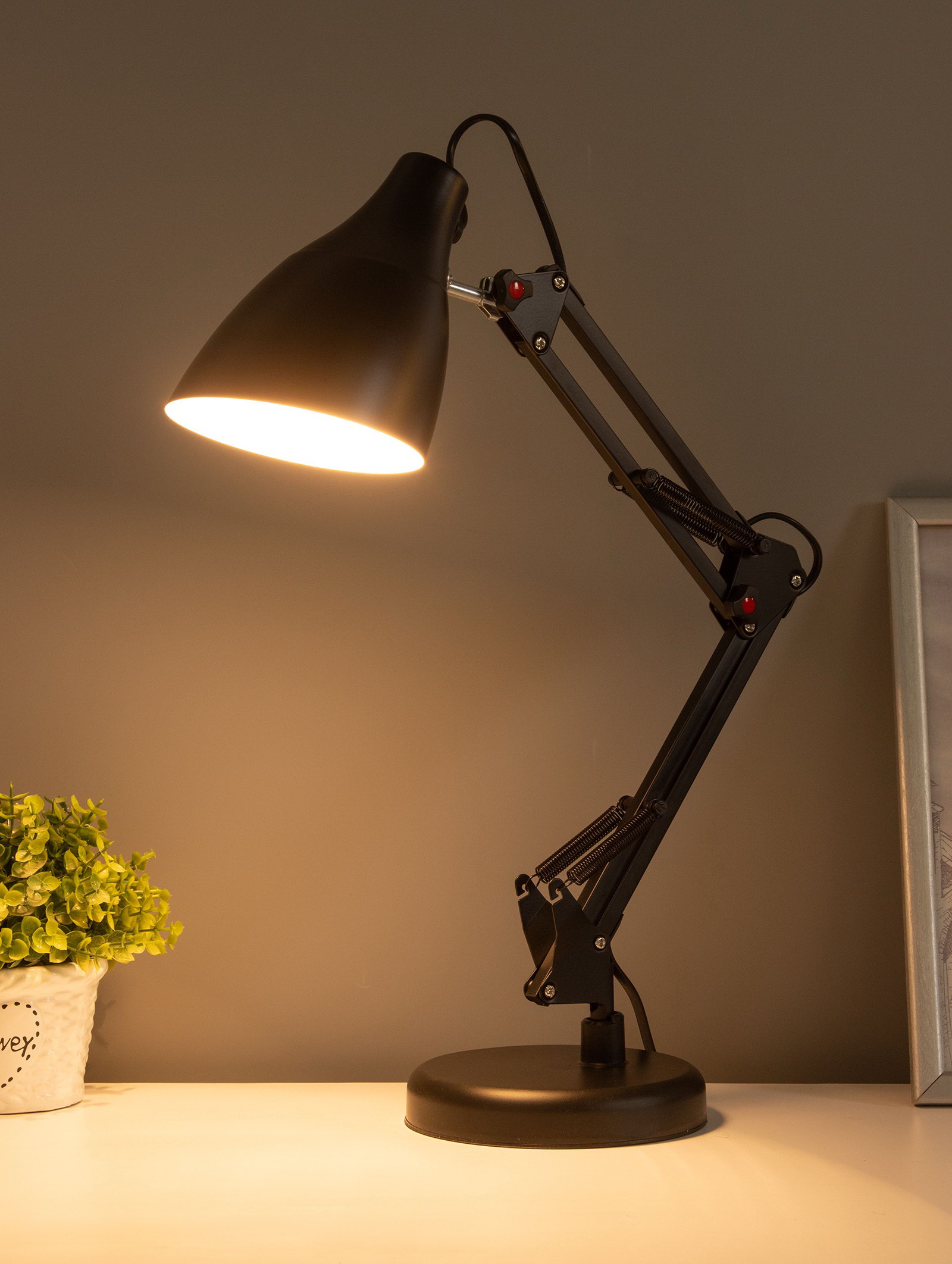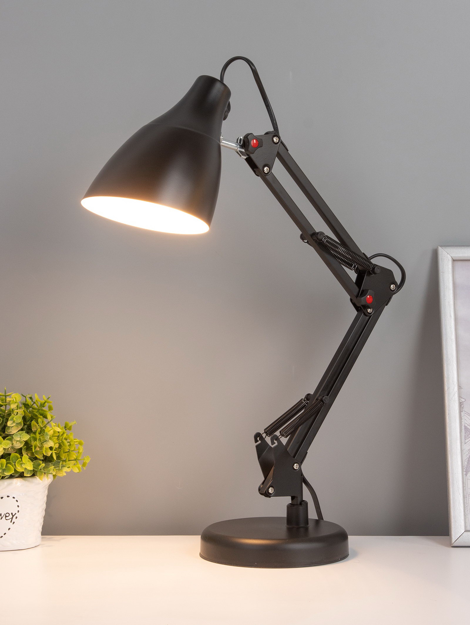 Вид лампы: Накаливания, Светодиодная Размер упаковки: 16 x 16 x 29 см. tnved: 9405290000 Температурное ограничение: Нет Тип питания: От сети 220 В Материал основания: Металл Тип крепления: На подставке Материал рассеивателя: Металл Управление светильником: С выключателем на проводе Оттенок рассеивателя: Тёмные тона Цоколь: E27 Цвет основания: Чёрный Мощность на цоколь, Вт: 40 Тип рассеивателя: Плафон Длина, см: 35 Высота, см: 55 Особенности светильника: Без особенностей Количество ламп: 1 Ширина, см: 15 Световой поток, лм: [400,1100] Вид: Офисная/Школьная Направление рассеивателя: Поворотное Форма рассеивателя: Конусный Тип источника освещения: Лампа не в комплекте Цвет рассеивателя: Чёрный Настольная лампа с креплением на струбцине разработана для точного освещения рабочей зоны без лишней нагрузки на поверхность стола. Конструкция фиксируется на краю столешницы, освобождая полезное пространство и обеспечивая устойчивое положение даже при активной эксплуатации. Поворотный механизм и регулируемая высота до 85 см позволяют гибко настраивать направление света. Конусный металлический плафон концентрирует световой поток и направляет его непосредственно на рабочую область, что особенно важно при чтении, письме или работе с мелкими деталями. Металлическое основание и корпус обеспечивают прочность и долговечность конструкции. Чёрное матовое покрытие делает лампу универсальным решением для офисных и домашних интерьеров, а также снижает визуальную нагрузку в рабочем пространстве. Модель рассчитана на одну лампу с цоколем E27 мощностью до 40 Вт и поддерживает различные типы источников света. Управление осуществляется с помощью выключателя на проводе, что удобно при повседневном использовании. | ||