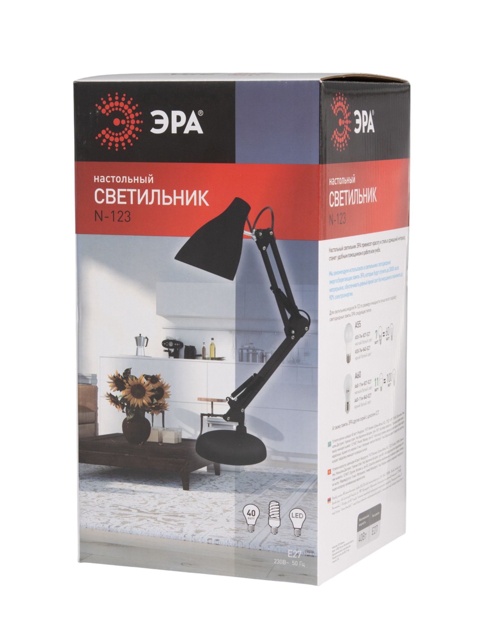 Лампа настольная N-123, 1хE27, 40 Вт, 35x15x55 см, чёрная, ЭРА, Китай