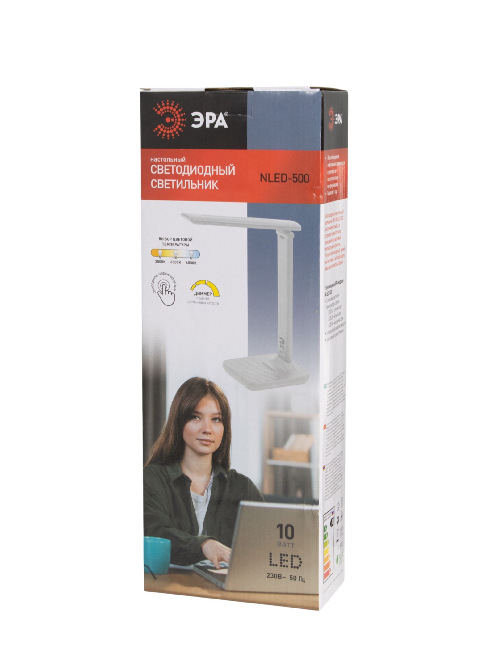 Лампа настольная LED NLED-500, 10 Вт, 14x7x35 см, белая, ЭРА, Китай