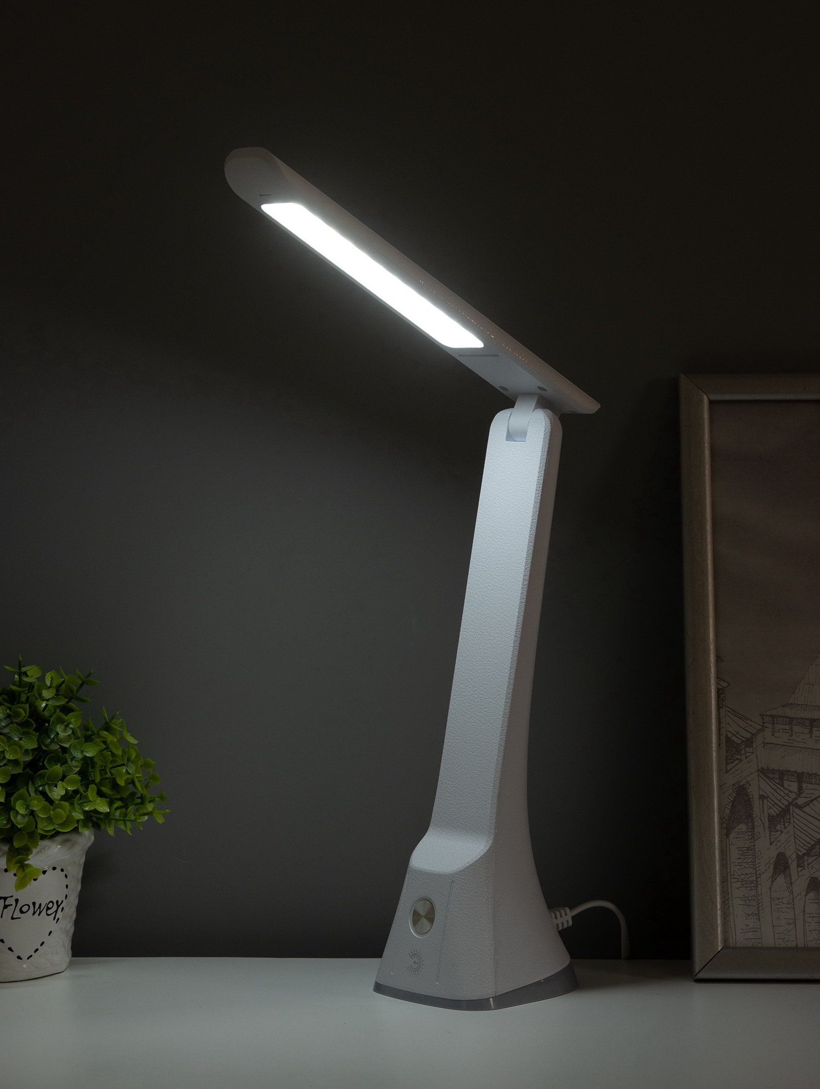 Размер упаковки: 32 x 9 x 11 см. tnved: 9405290000 Температурное ограничение: Нет Материал основания: Пластик Цвет основания: Белый Тип питания: От сети 220 В Мощность на цоколь, Вт: 11 Материал рассеивателя: Пластик Тип крепления: На подставке Оттенок рассеивателя: Светлые тона Цоколь: Встроенные LED Управление светильником: С выключателем на корпусе Вид лампы: Светодиодная Тип рассеивателя: Плафон Высота, см: 32 Длина, см: 11 Форма рассеивателя: Прямоугольный Тип источника освещения: Встроенная LED Цвет рассеивателя: Белый Направление рассеивателя: Вниз Особенности светильника: Без особенностей Количество ламп: 1 Ширина, см: 9 Вид: Офисная/Школьная Световой поток, лм: [990,1210] Настольная светодиодная лампа в белом исполнении разработана для организации аккуратного и направленного освещения рабочего пространства. Лаконичный дизайн и компактные размеры позволяют легко вписать её в современный интерьер от домашнего кабинета до учебной зоны. Прямоугольный плафон формирует чёткий световой поток, направленный вниз, что обеспечивает хорошую освещённость поверхности без лишнего рассеивания. Такой свет удобен для длительной работы и снижает зрительное напряжение. Корпус выполнен из лёгкого и практичного пластика, устойчивого к повседневной эксплуатации. Встроенные светодиоды не требуют замены и обеспечивают стабильную работу светильника на протяжении длительного времени. Управление осуществляется с помощью выключателя на корпусе простое и понятное решение для ежедневного использования. Лампа подключается к сети 220 В и подходит для постоянной работы в домашних и офисных условиях. | ||