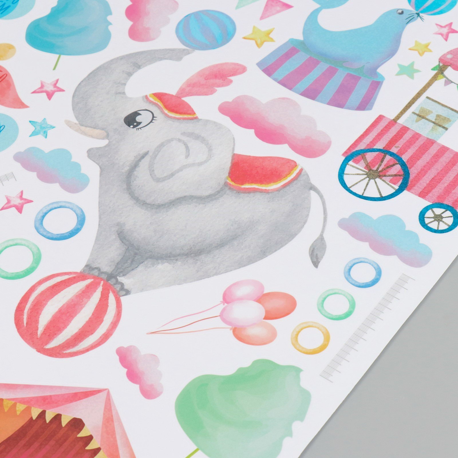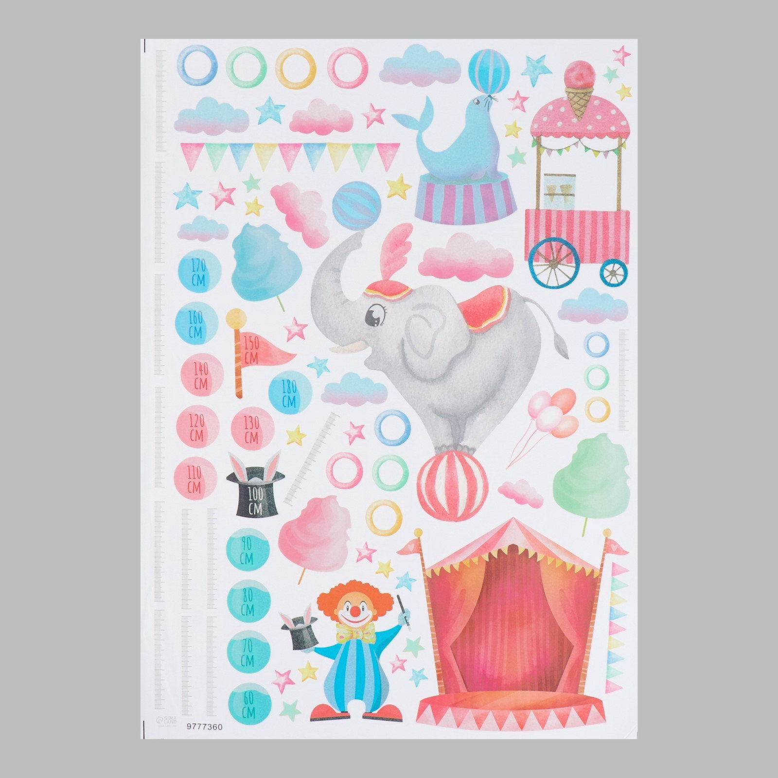 Ростомер детский "Представление в цирке", наклейка интерьерная, декор на стену, панно, 50x70 см, 70x50 см., Китай