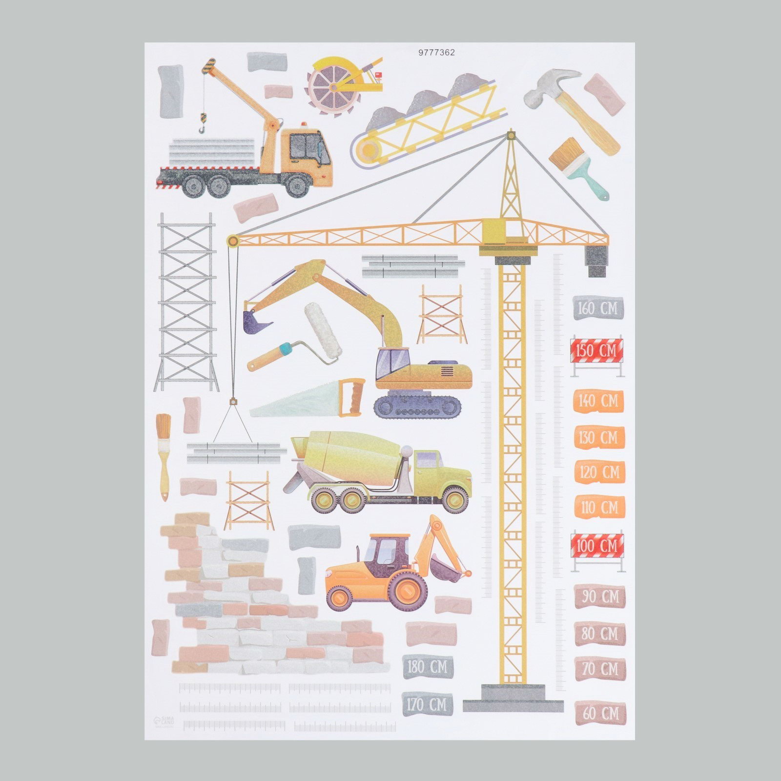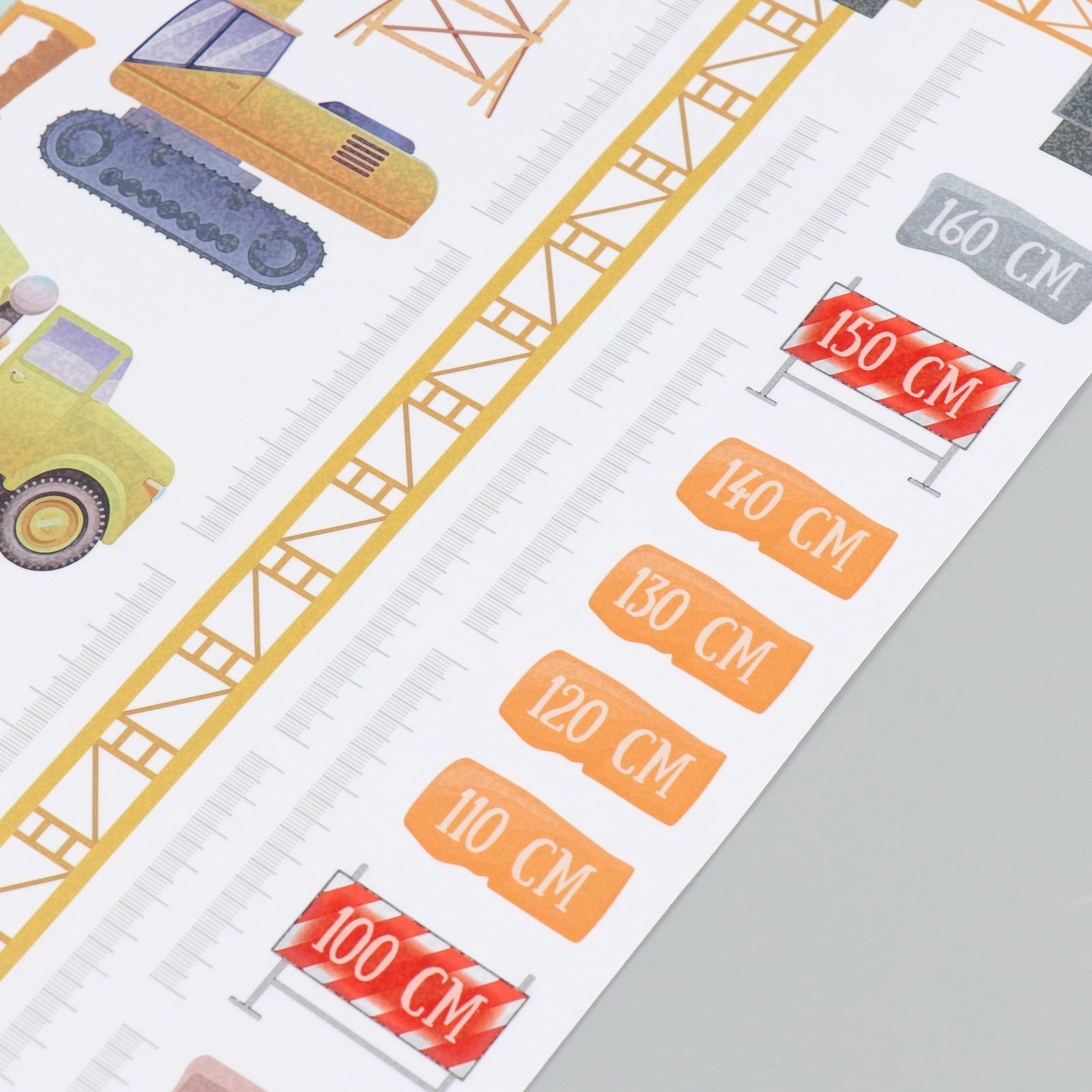 Ростомер детский "Строительная техника", наклейка интерьерная, декор на стену, панно, 50x70 см, 70x50 см., Китай