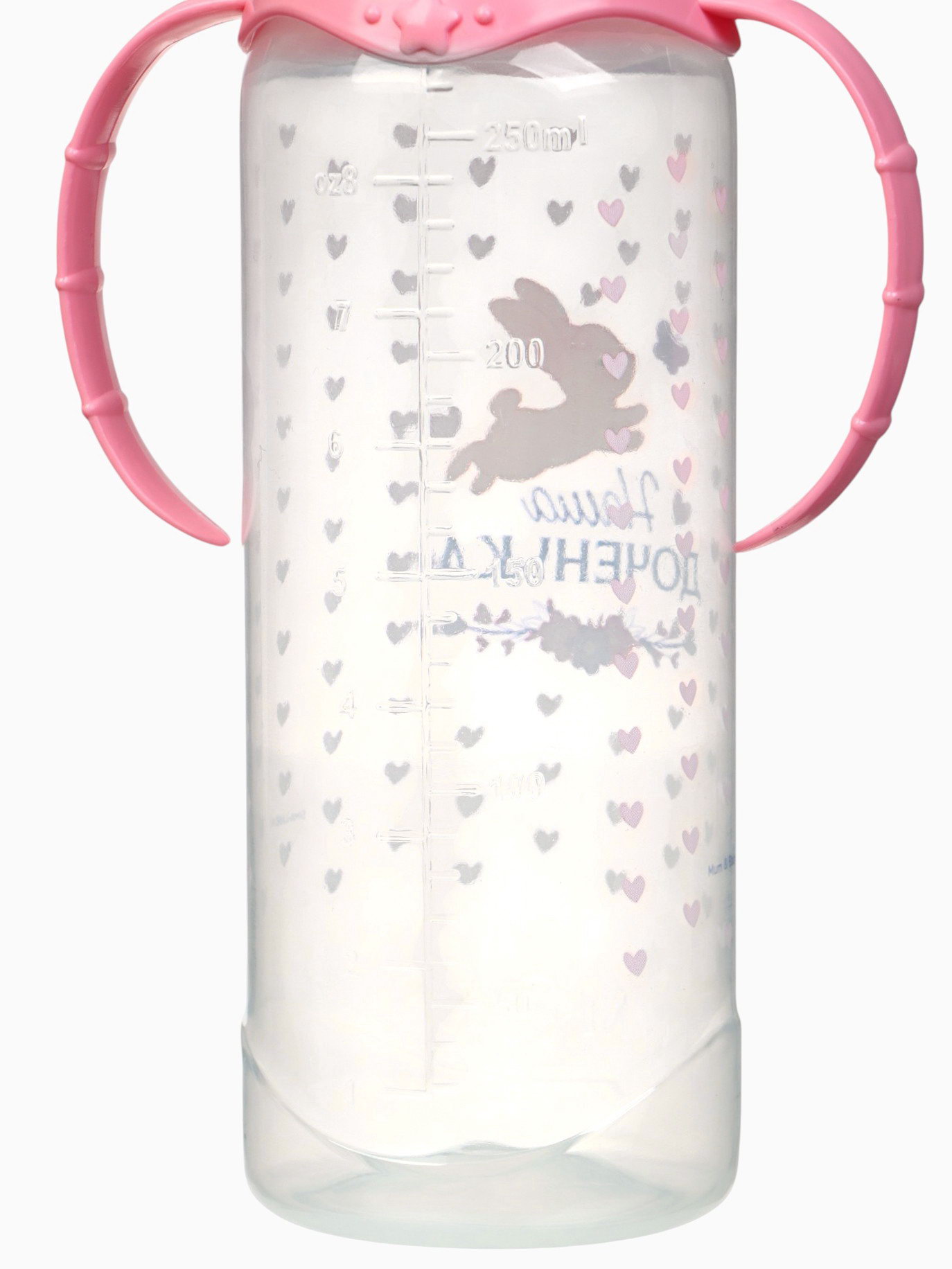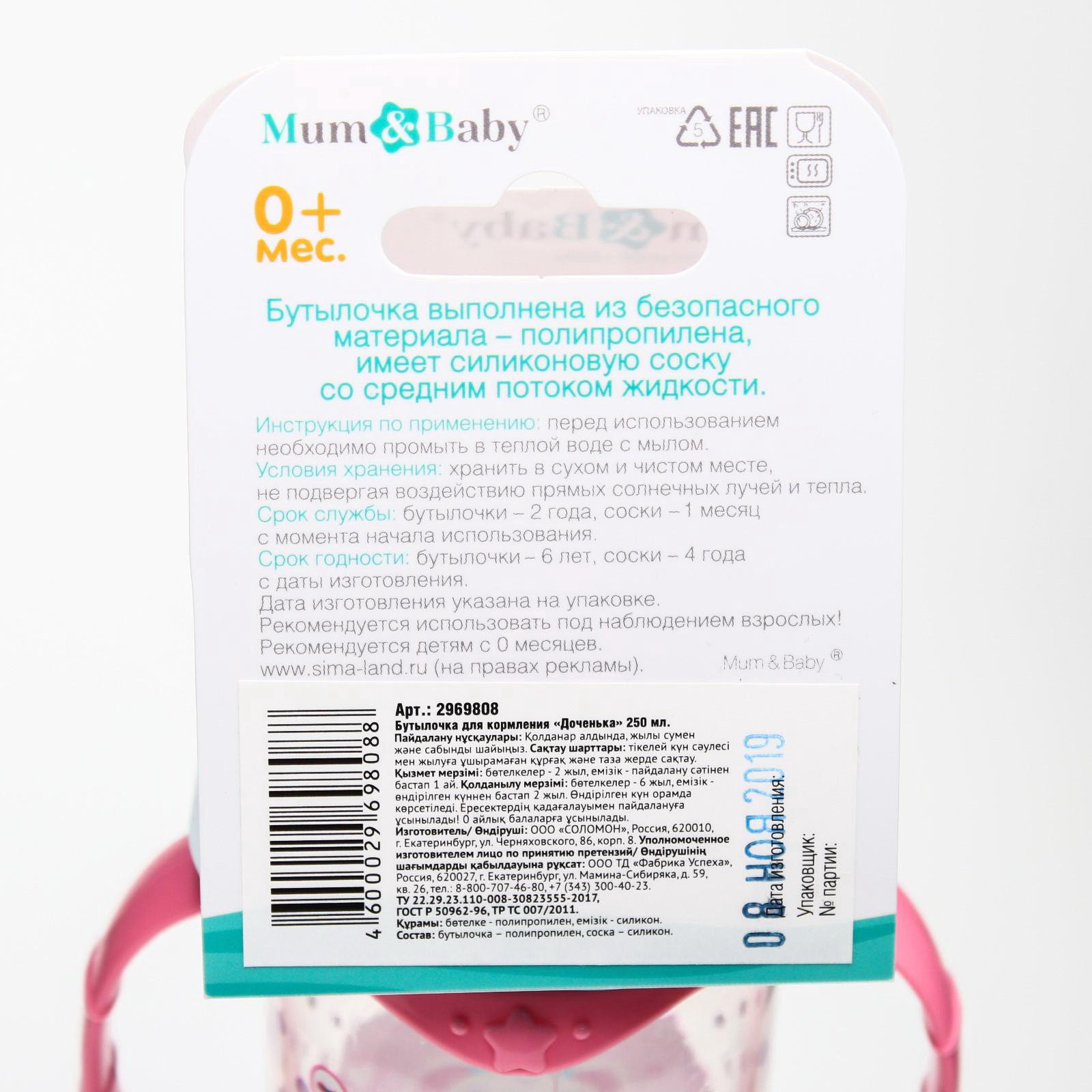 Бутылочка для кормления M&B "Доченька", классическое горло, с ручками, от 3 мес., 250 мл, розовый, 9x5.5x19 см., Mum&Baby, Россия