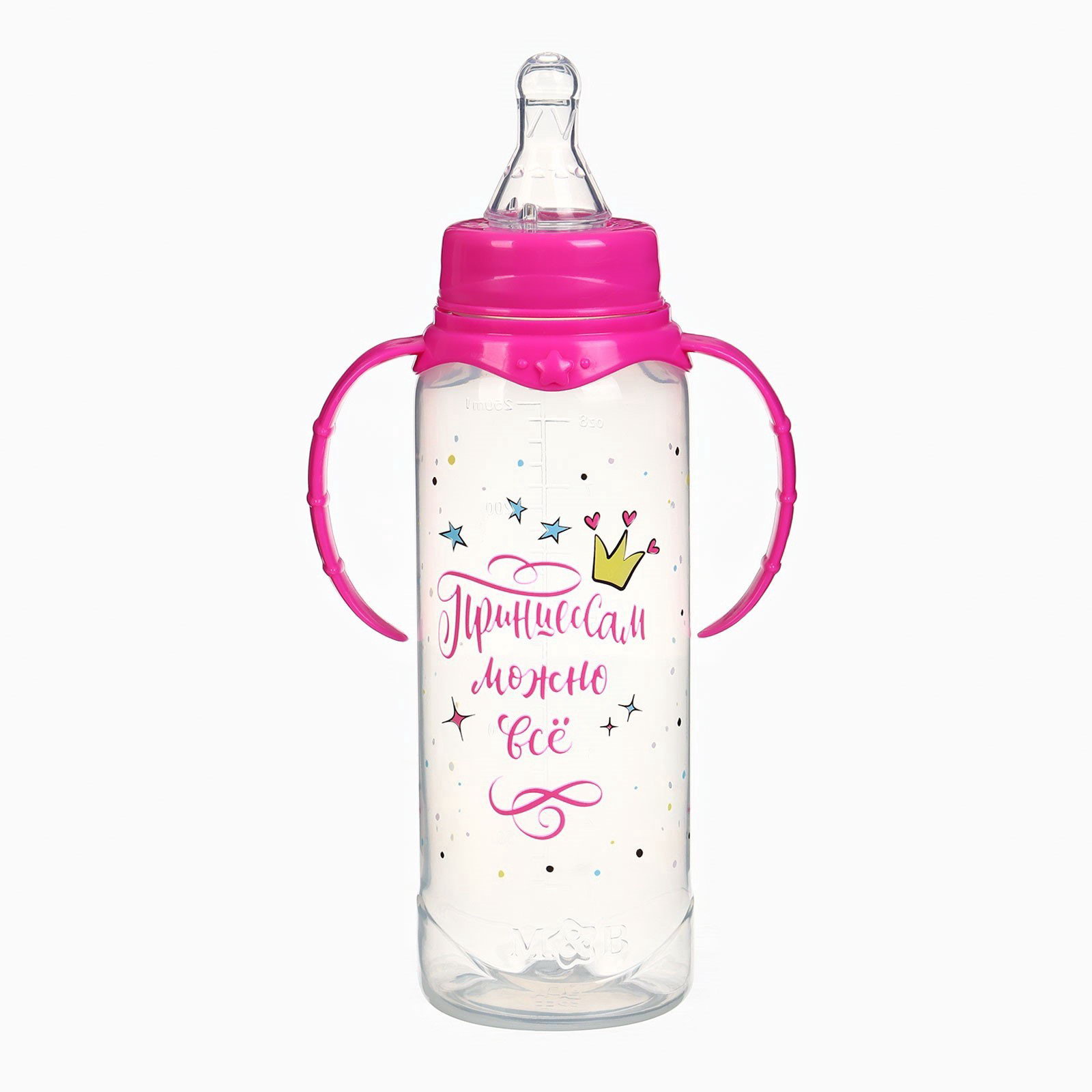 Бутылочка для кормления M&B "Принцесса", классическое горло, от 3 мес., 250 мл, с ручками, розовый, 9x5.5x19 см., Mum&Baby, Россия