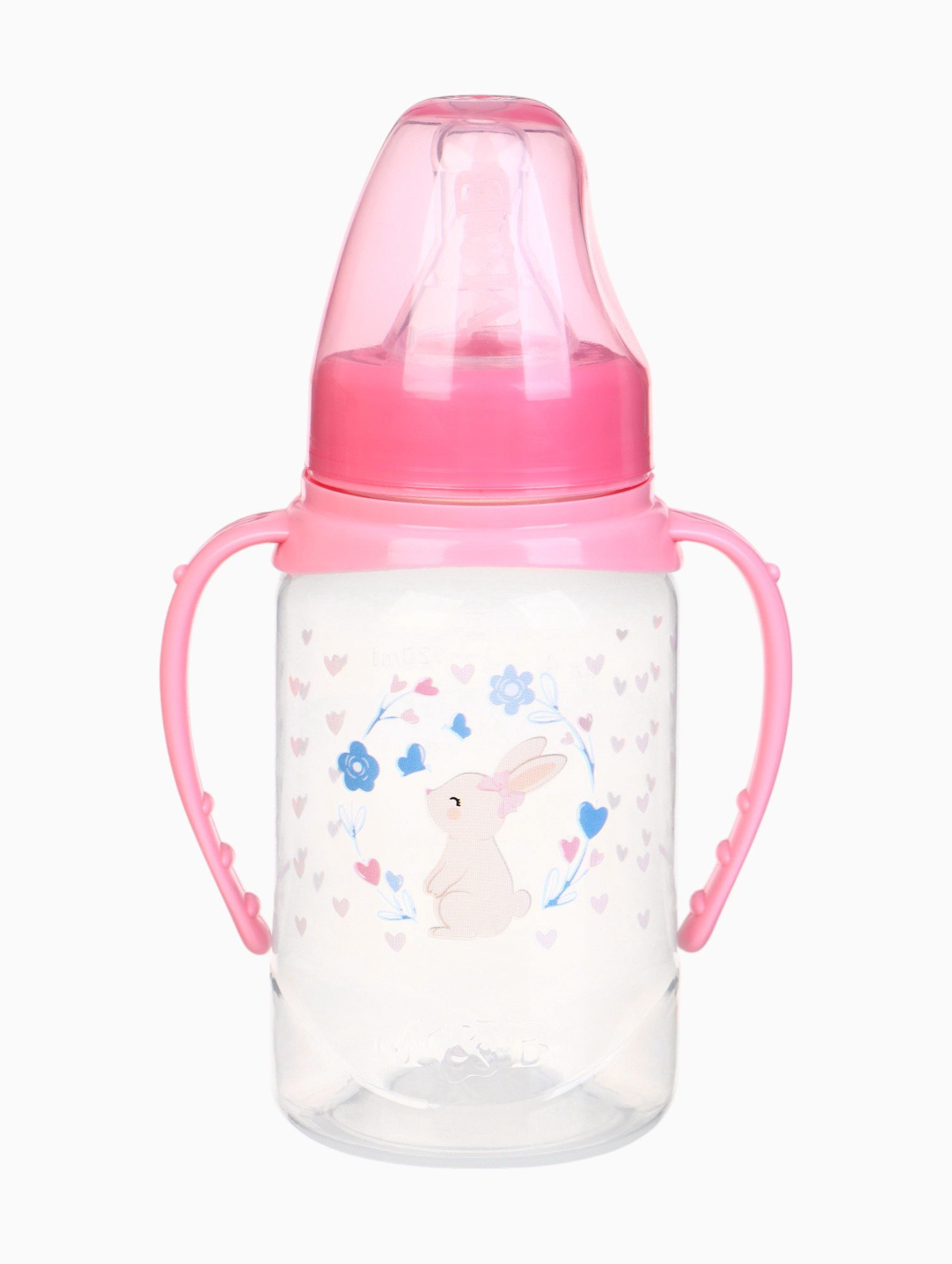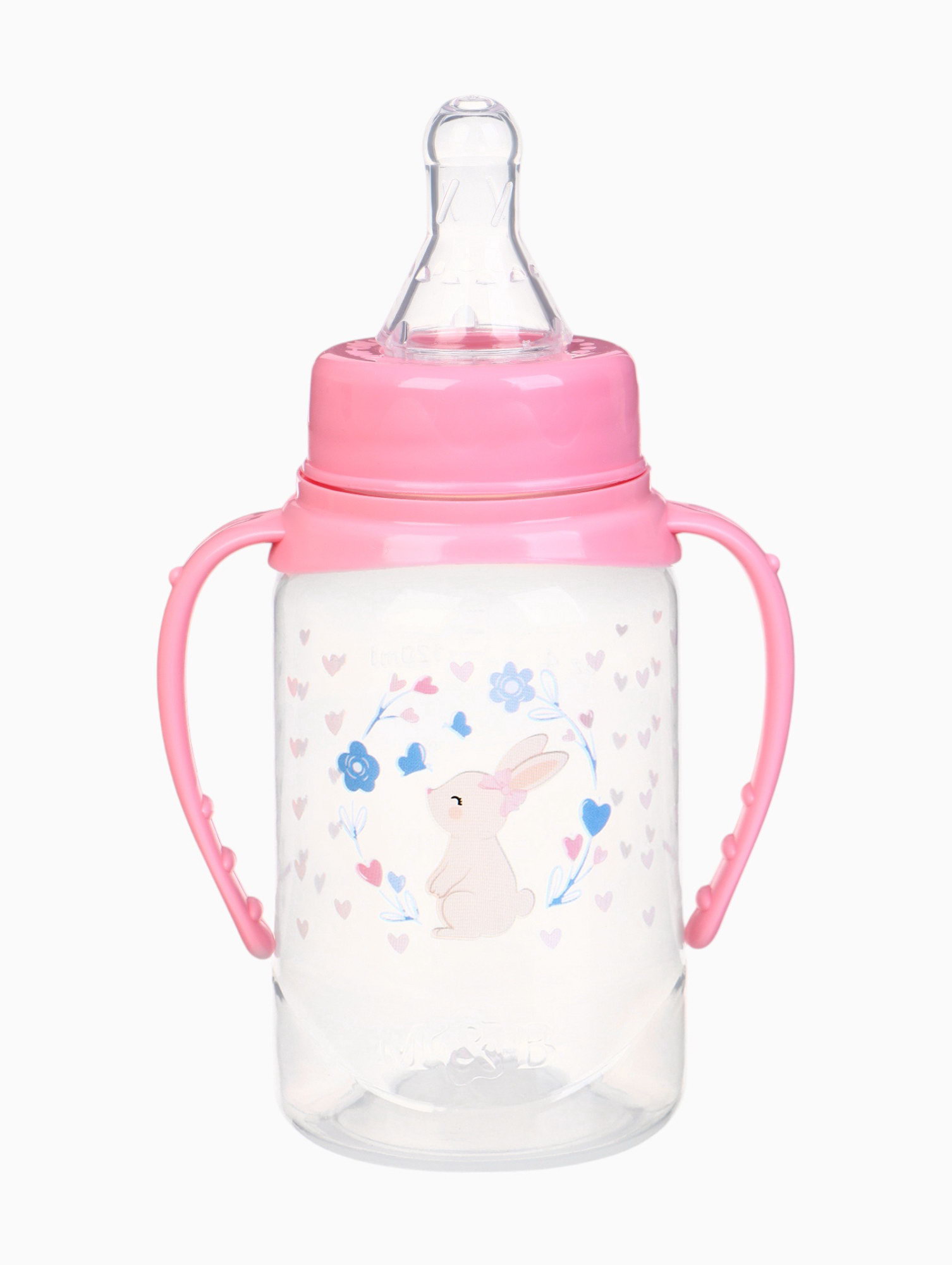 Бутылочка для кормления малыша M&B "Доченька", классическое горло, с ручками, от 0 мес., 150 мл, розовый, 9x5.5x14 см., Mum&Baby, Россия