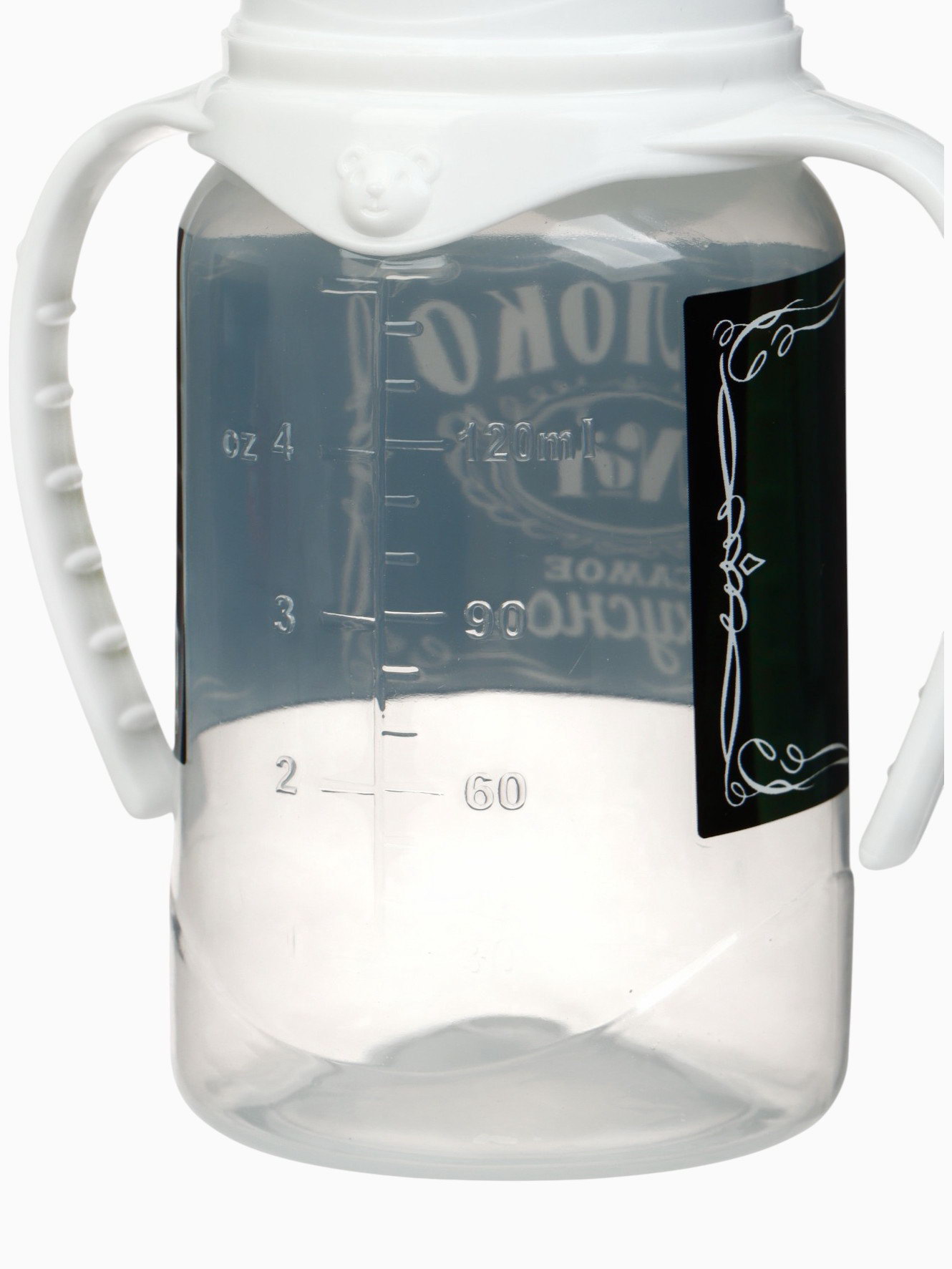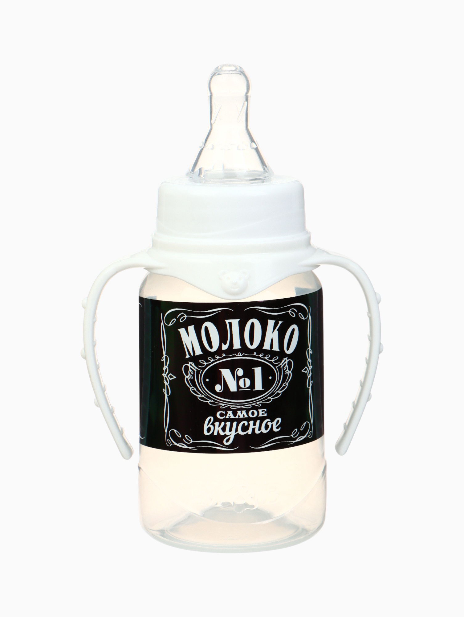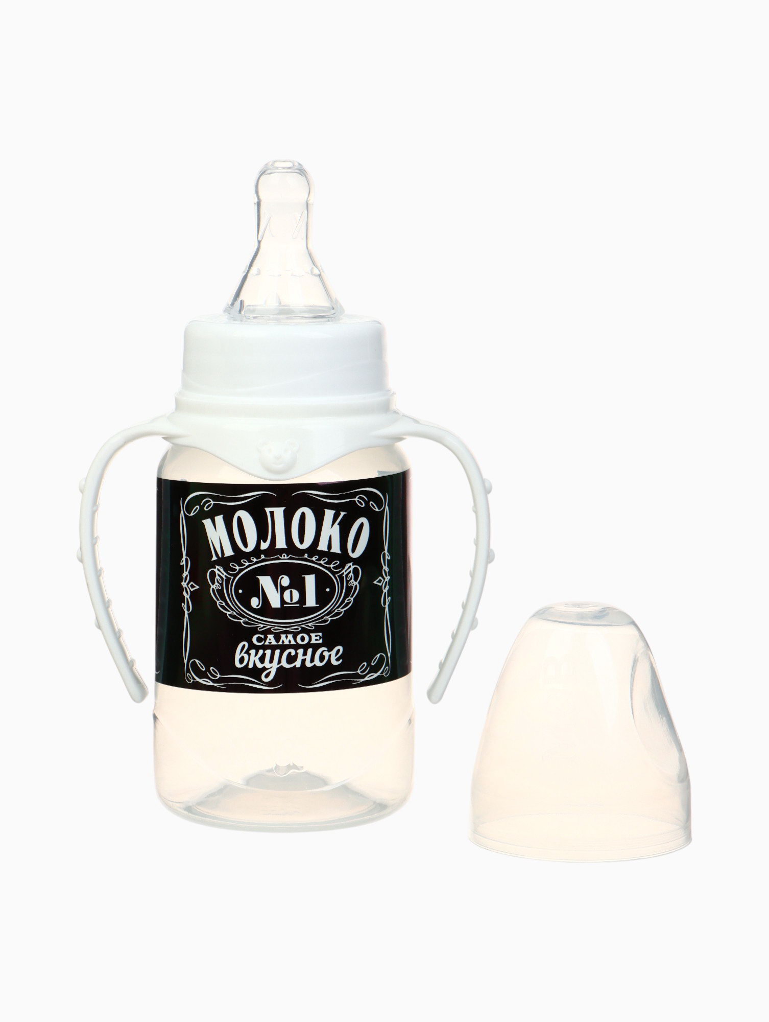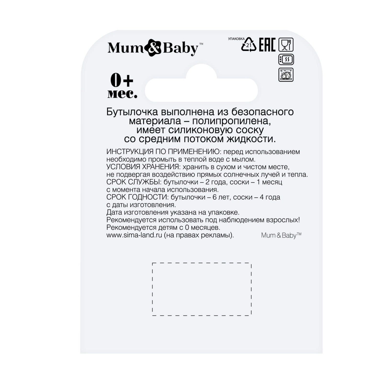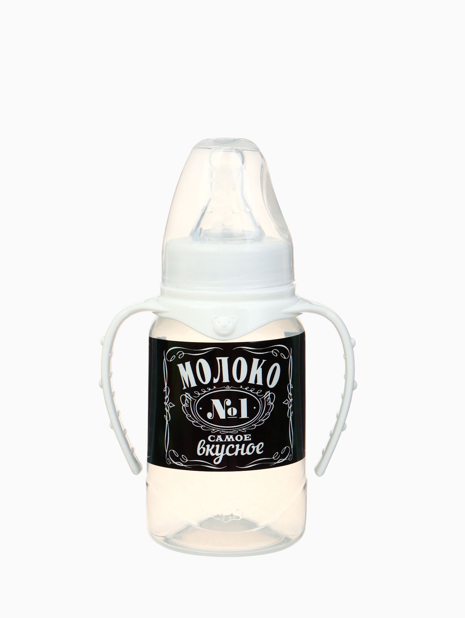 Бутылочка для кормления M&B "Люблю молоко", классическое горло, с ручками, от 0 мес., 150 мл, чёрный, 9x5.5x14 см., Mum&Baby, Россия