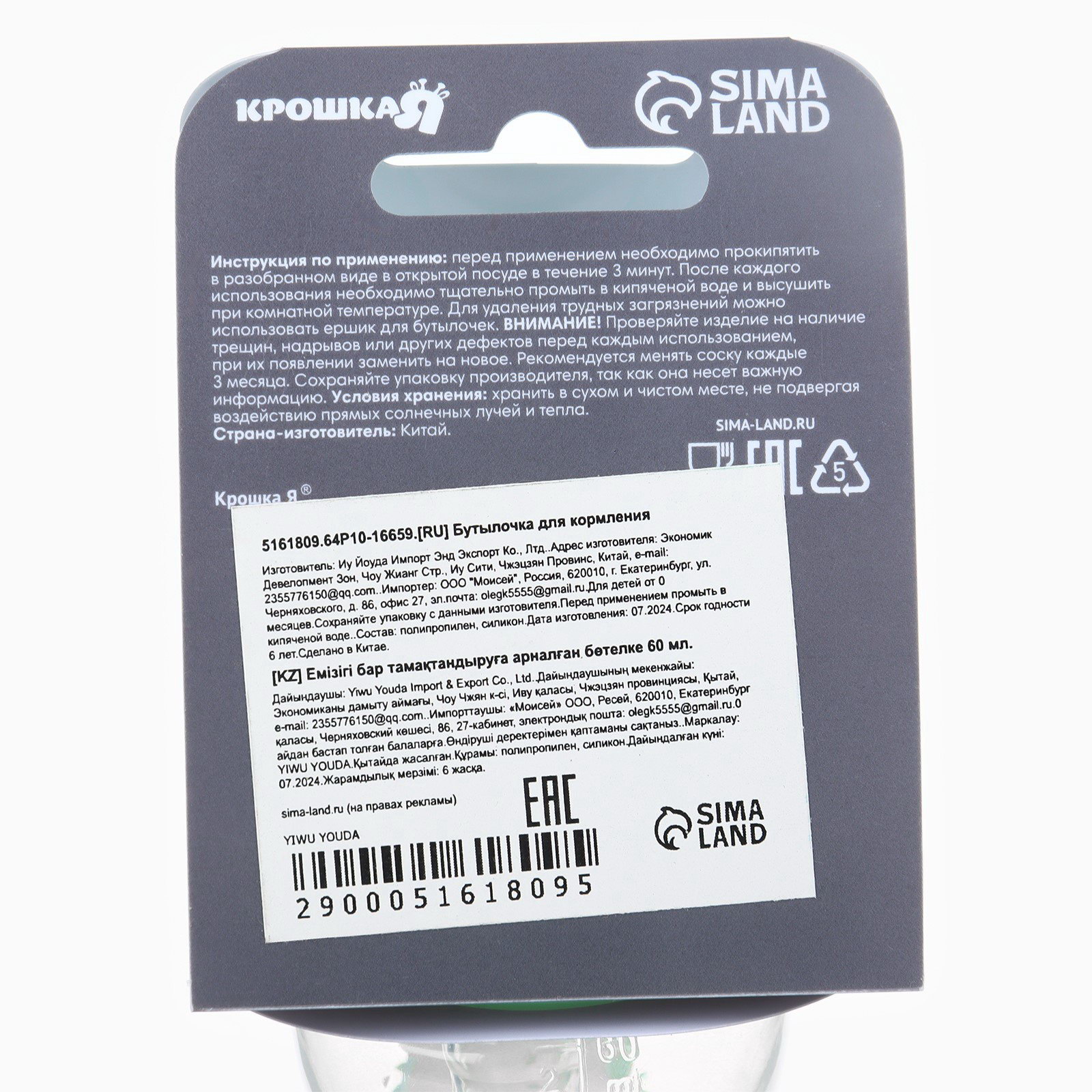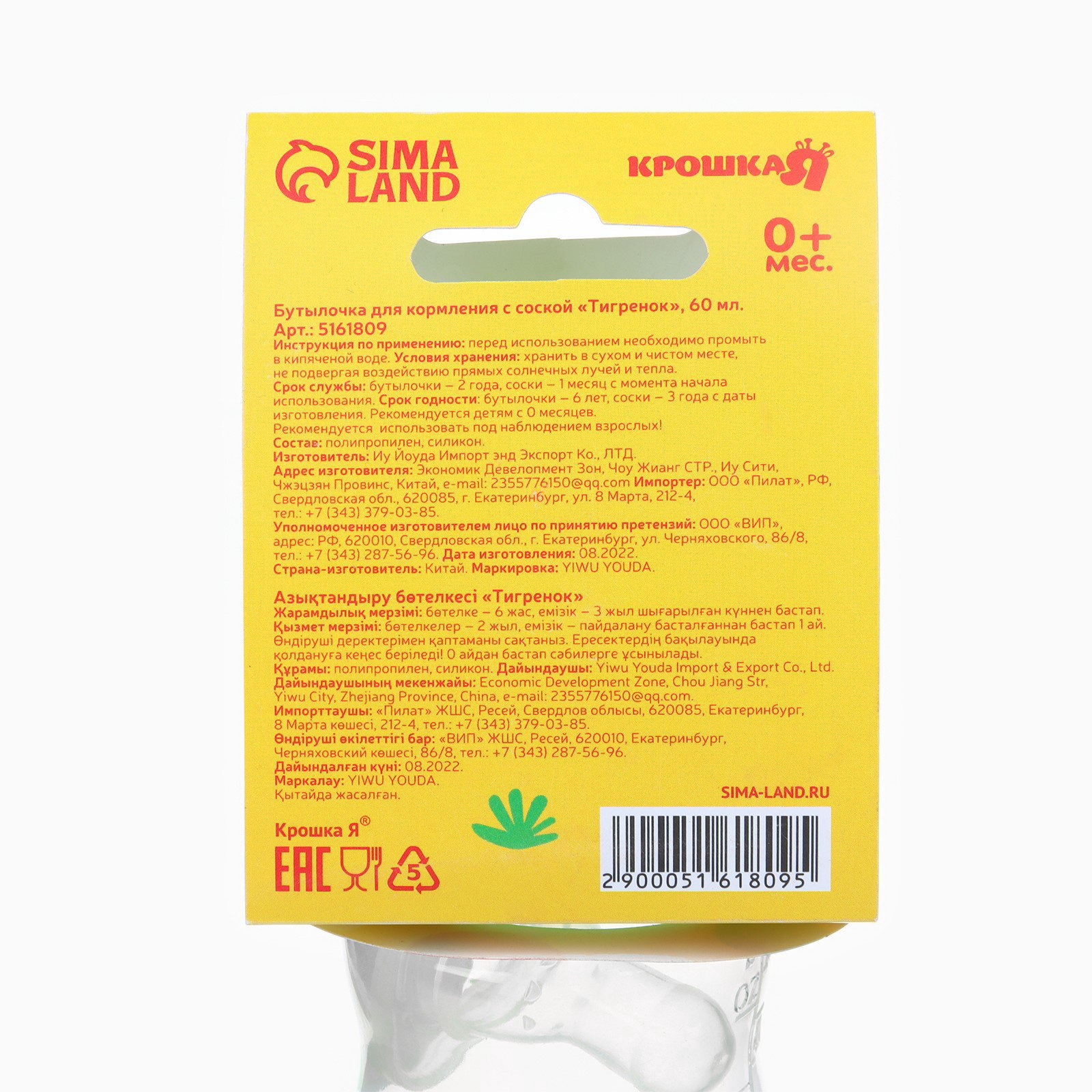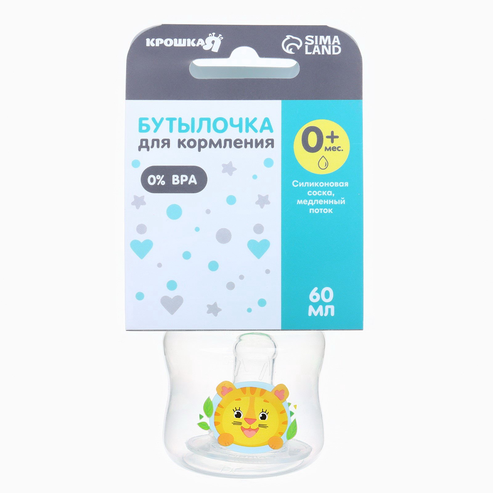 Бутылочка для кормления "Тигренок", классическое горло, от 0 мес., 60 мл, МИКС, 5x5x10 см., Крошка Я, Китай