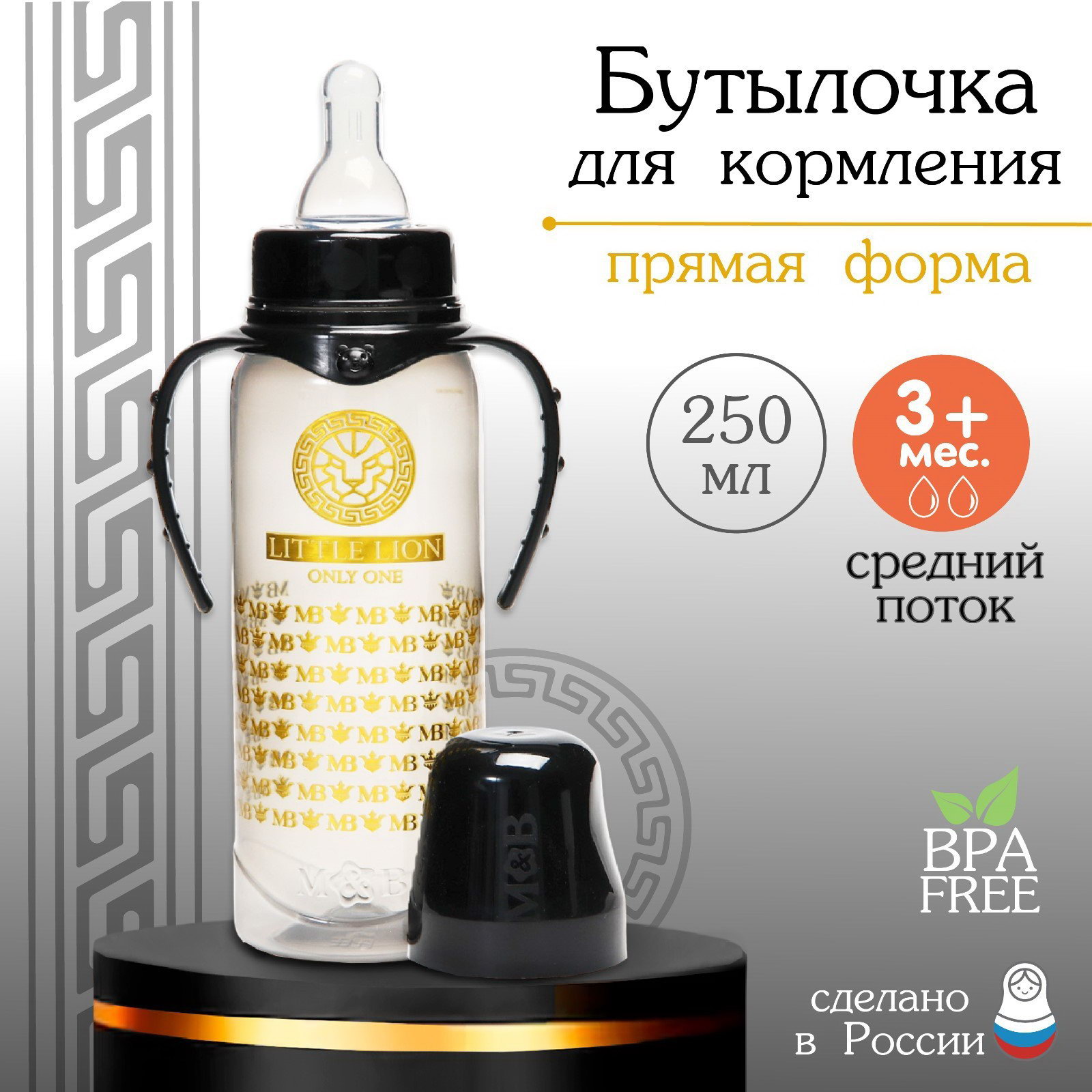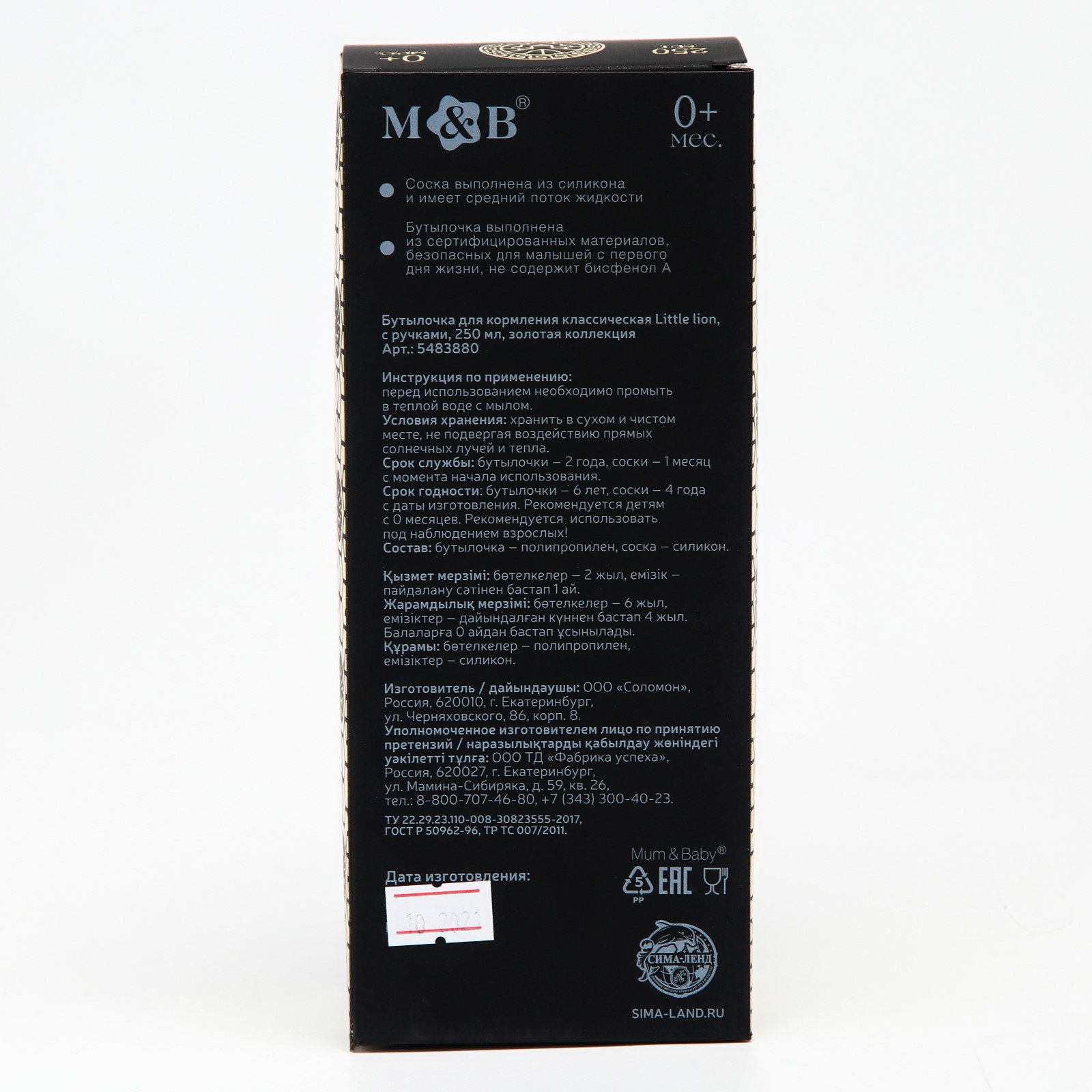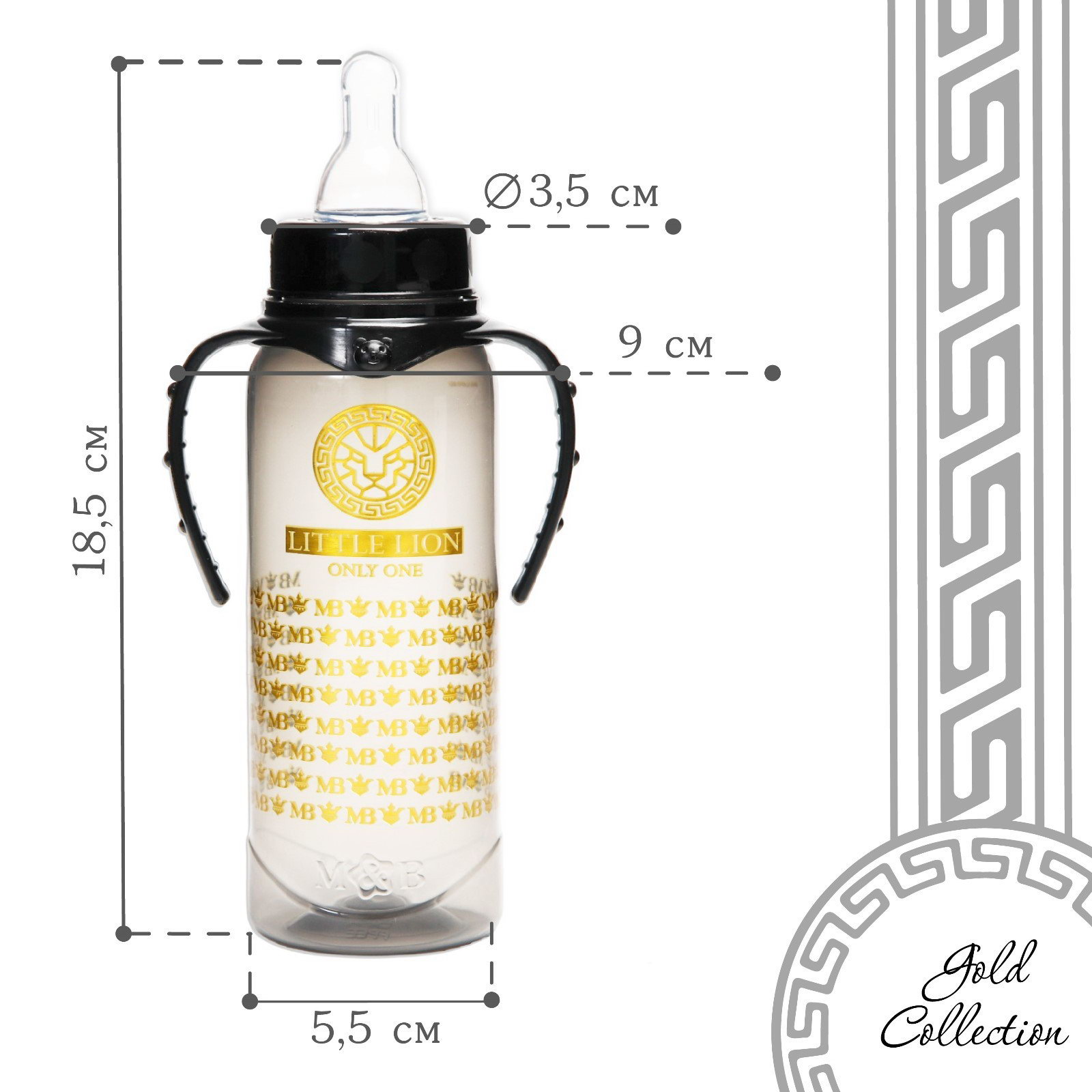 Бутылочка для кормления "Little lion", классическое горло, с ручками, 250 мл, от 0 мес., Золотая коллекция, 9x5.5x19 см., Mum&Baby, Россия