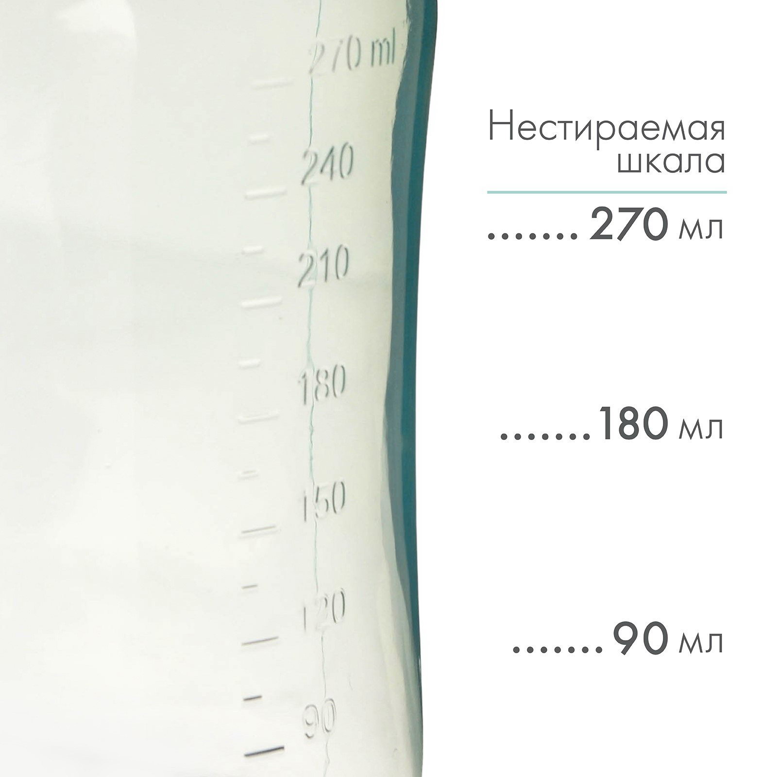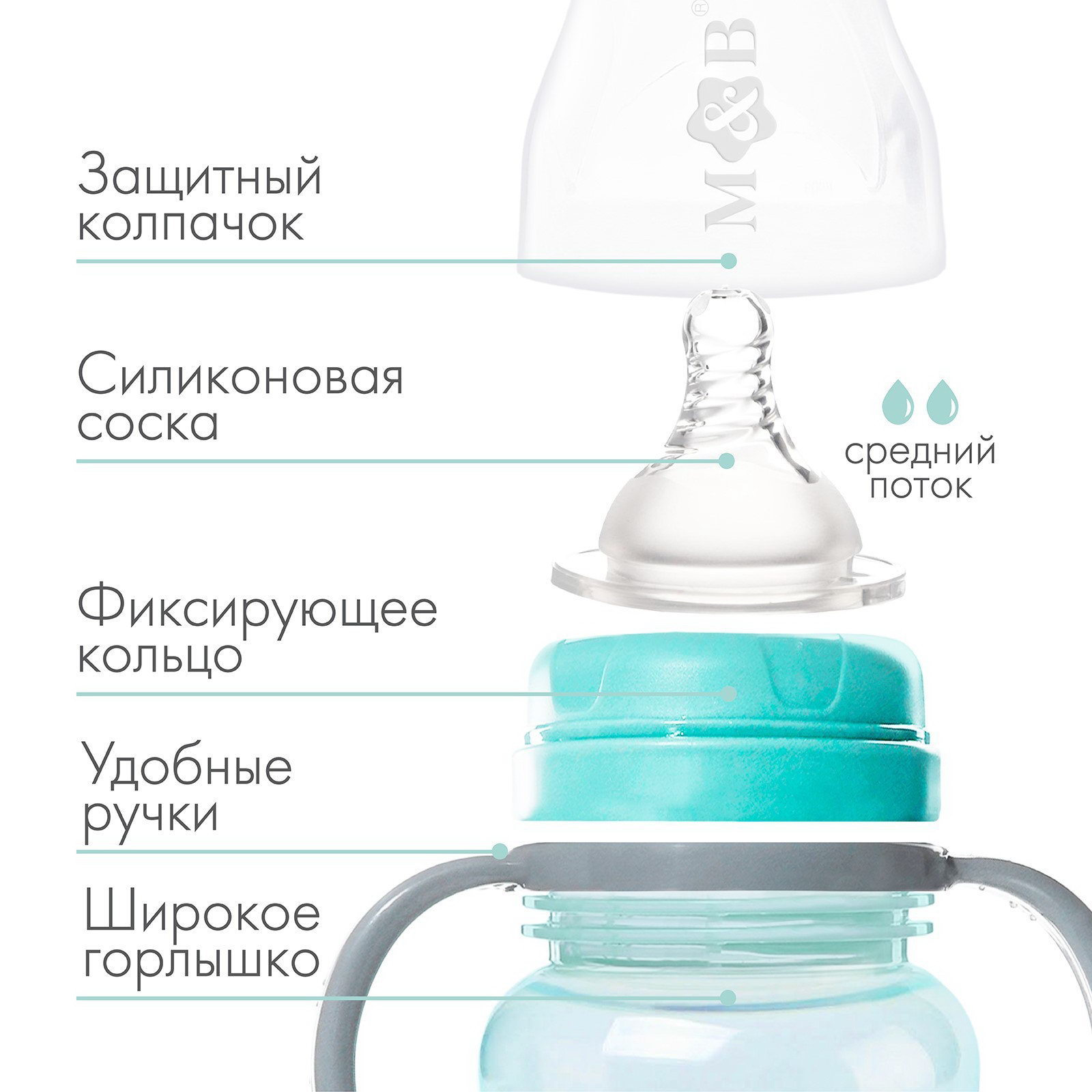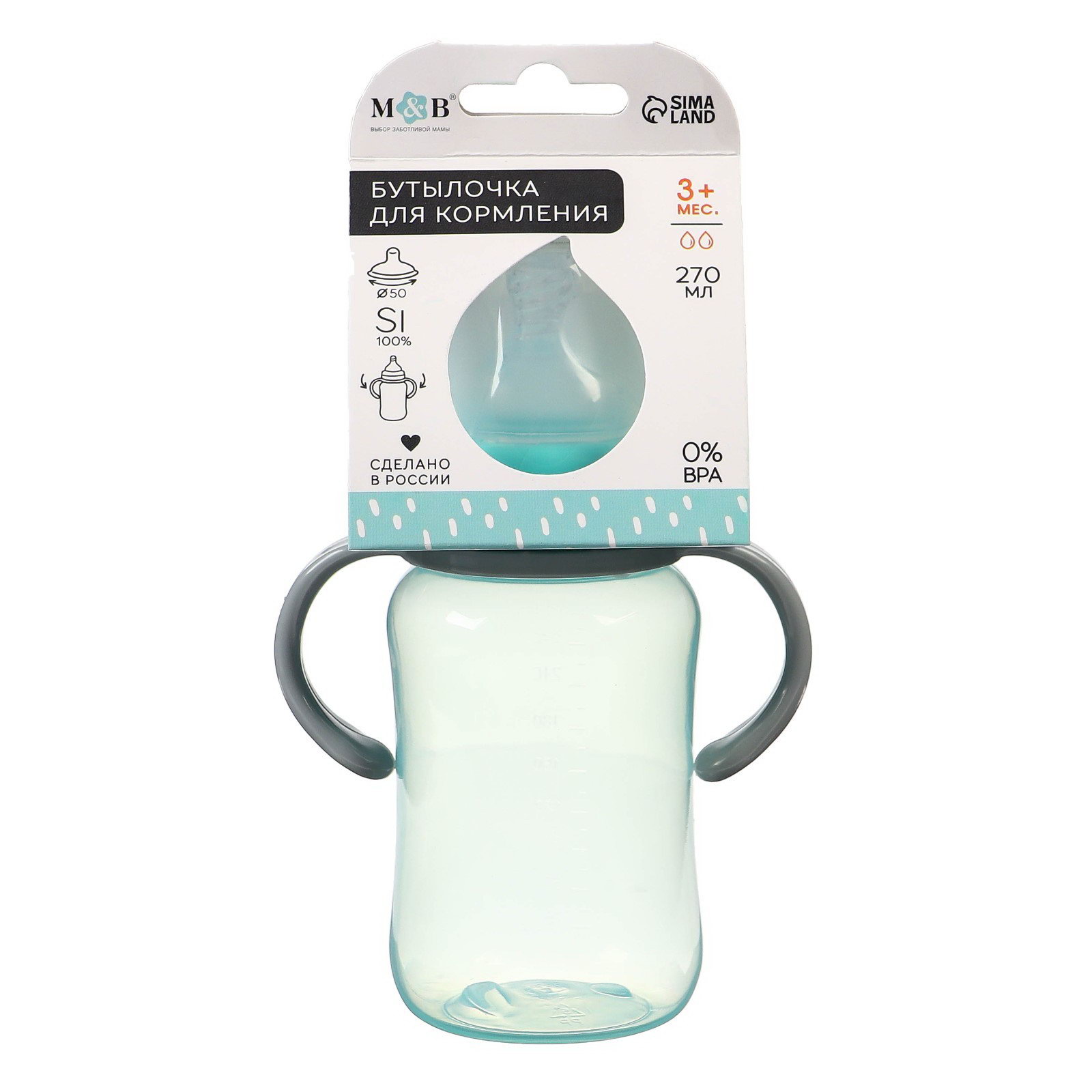 Бутылочка для кормления, широкое горло, 270 мл, с ручками, бирюзовый/серый, 270 мл., Mum&Baby, Россия