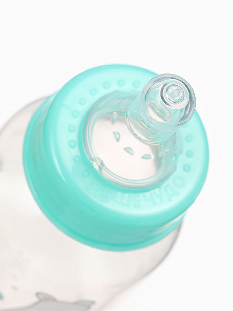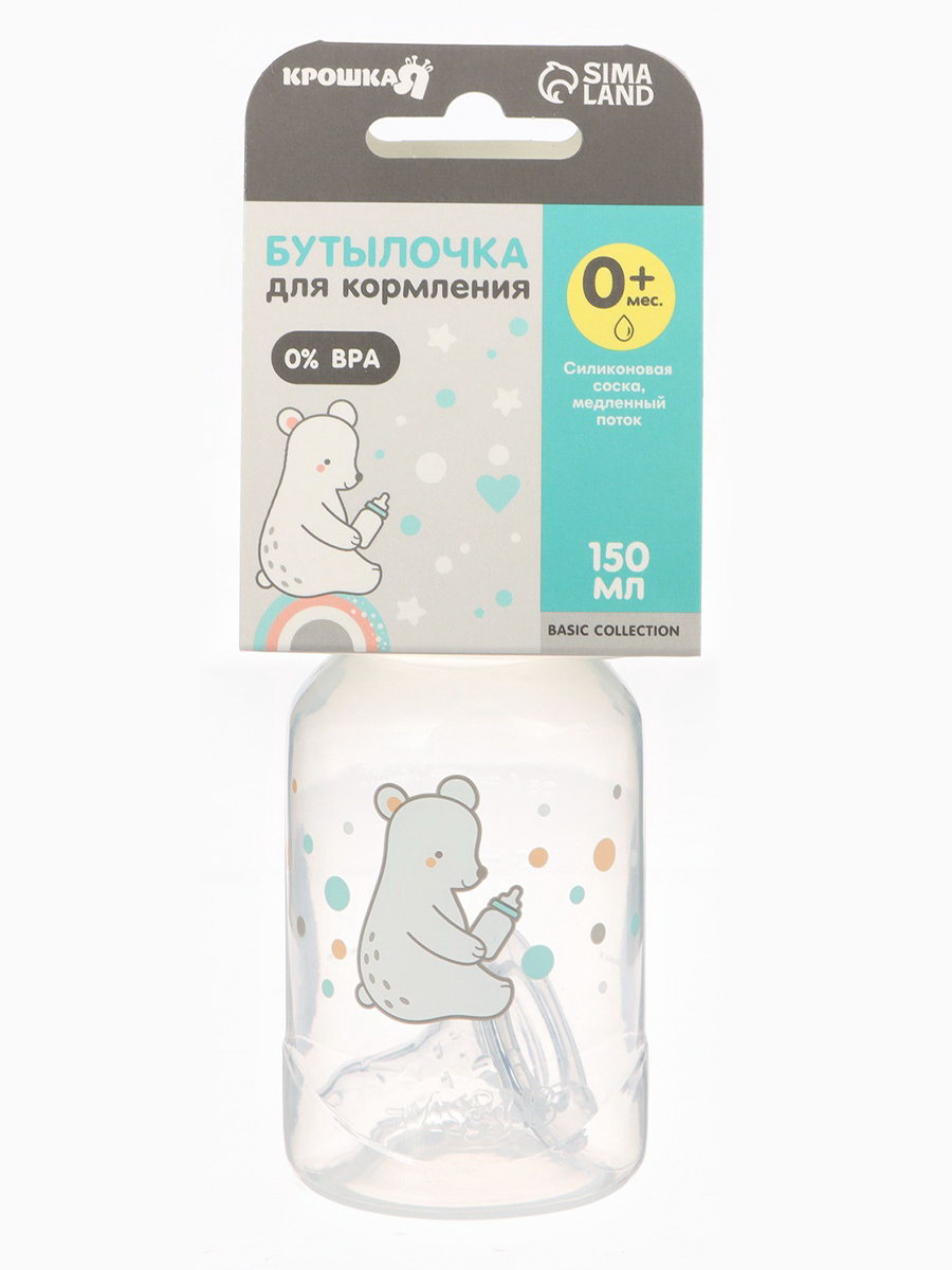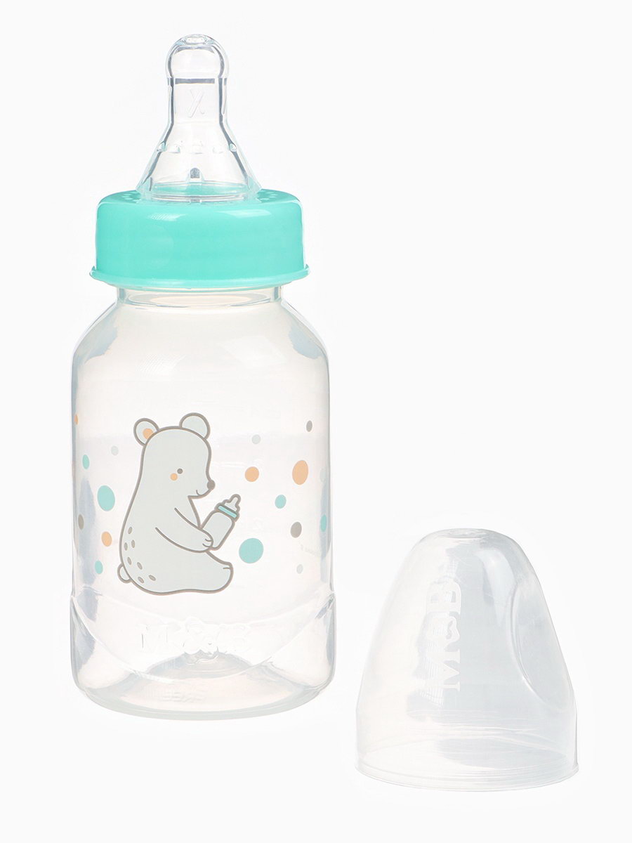 Бутылочка для кормления "Медвежонок Basic", классическое горло, от 0 мес., 150 мл, белый/бирюзовый, 5.5x5.5x14 см., Крошка Я, Россия