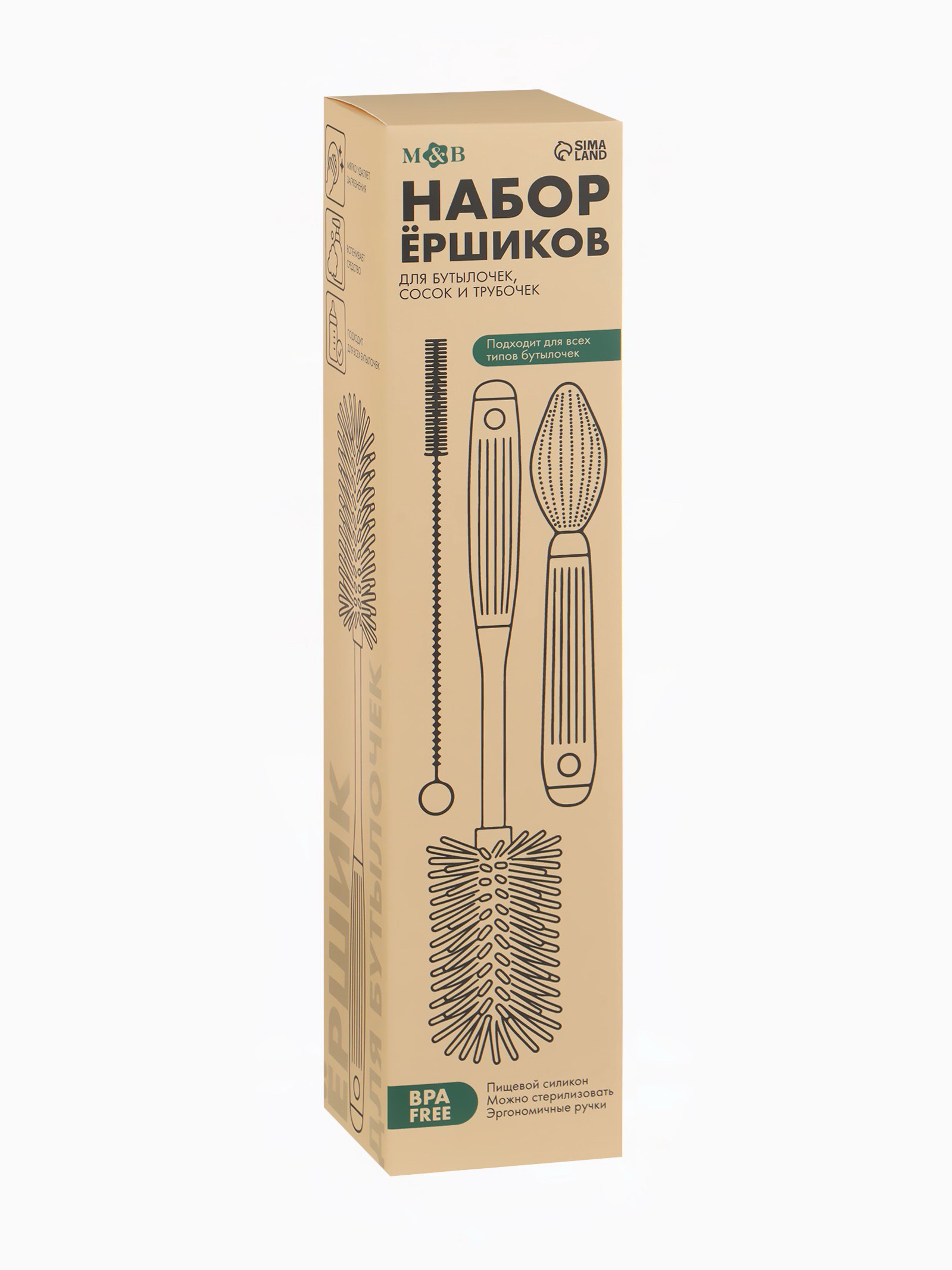 Набор ёршиков для бутылочек и сосок, 3 шт, цв. серый, в коробке, M&B, Mum&Baby, Китай