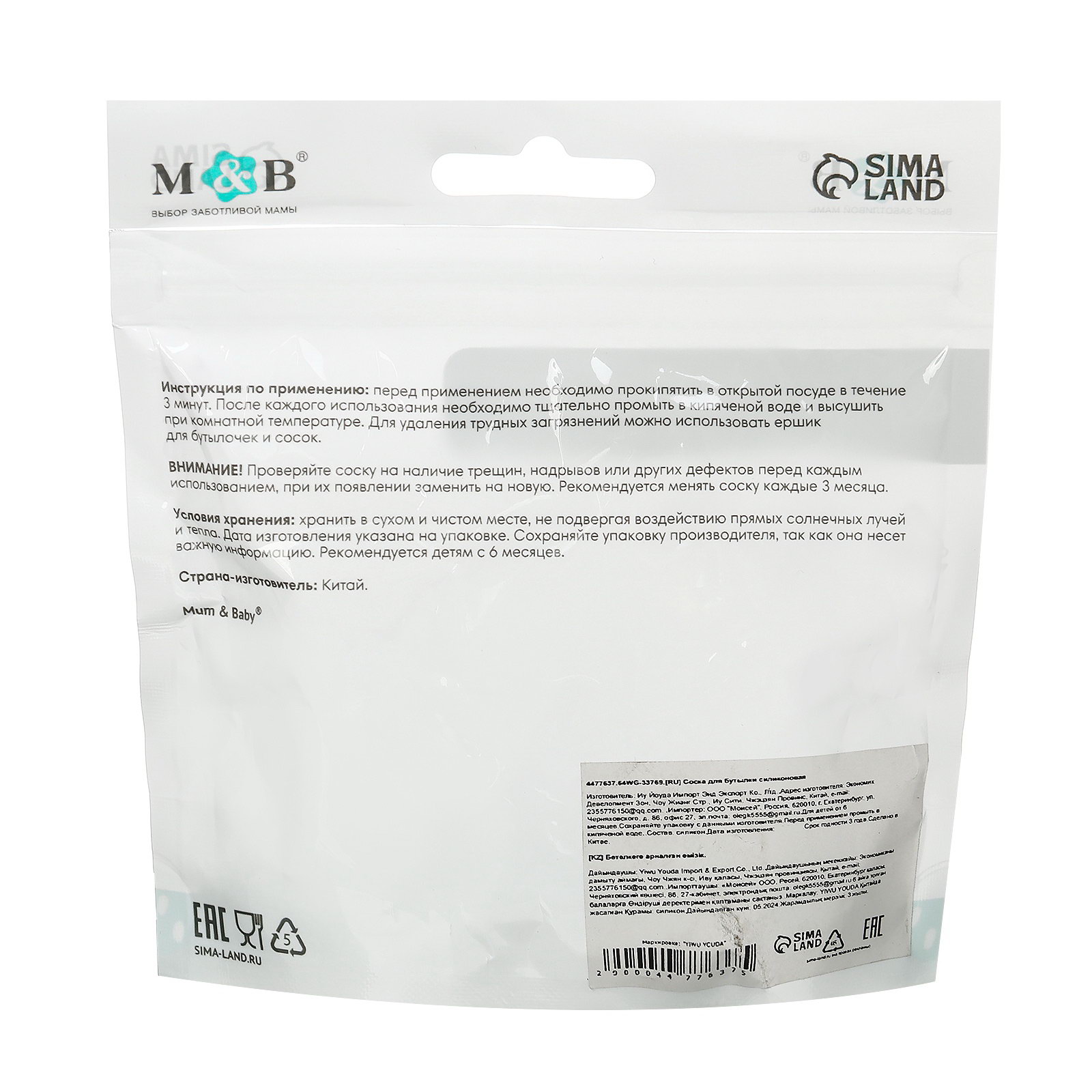 Соска на бутылочку M&B "Natural", антиколиковая, широкое горло ?50 мм, от 6 мес., быстрый поток, 6x6x5 см., Mum&Baby, Китай