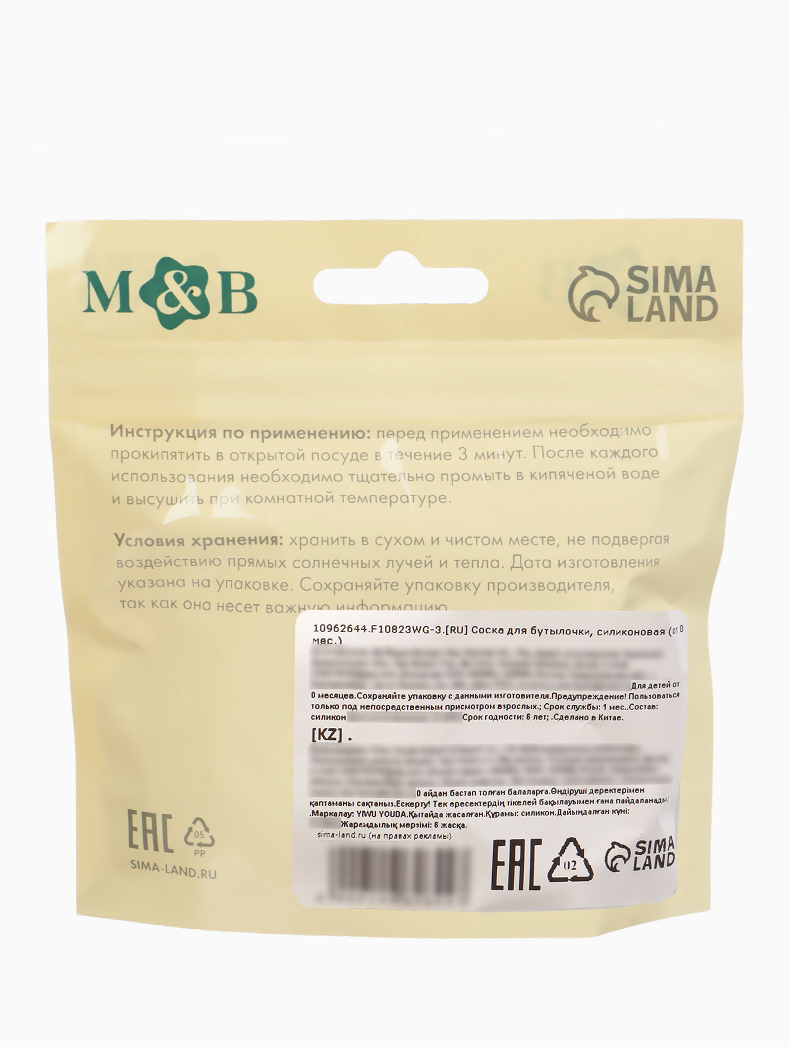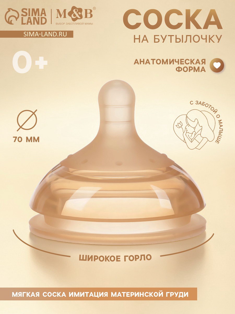 Соска на бутылочку, +0 мес., широкое горло ?70 мм, M&B, 6.3x6.3x5.3 см., Mum&Baby, Китай