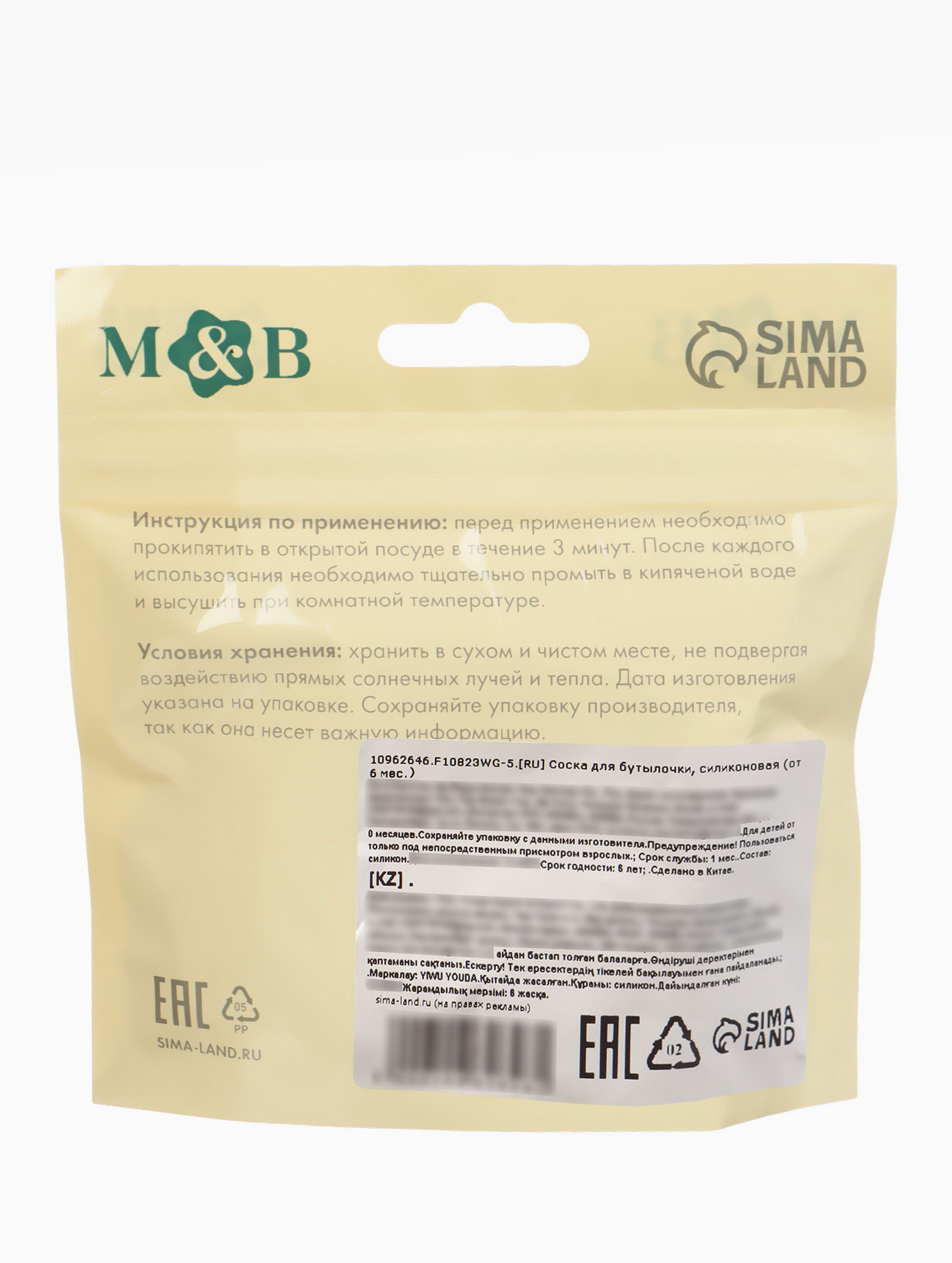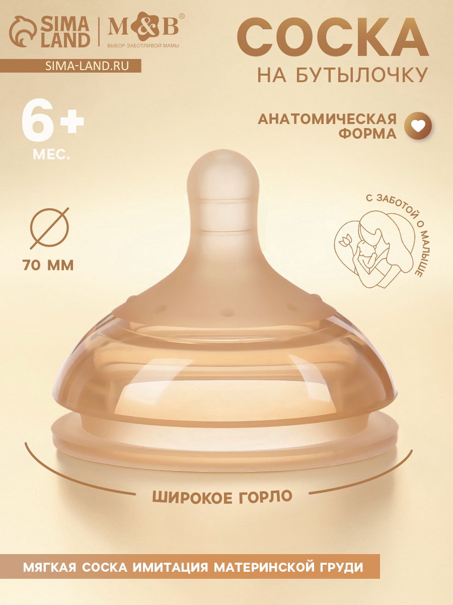 Соска на бутылочку, +6 мес., широкое горло ?70 мм, M&B, 6.3x6.3x5.3 см., Mum&Baby, Китай