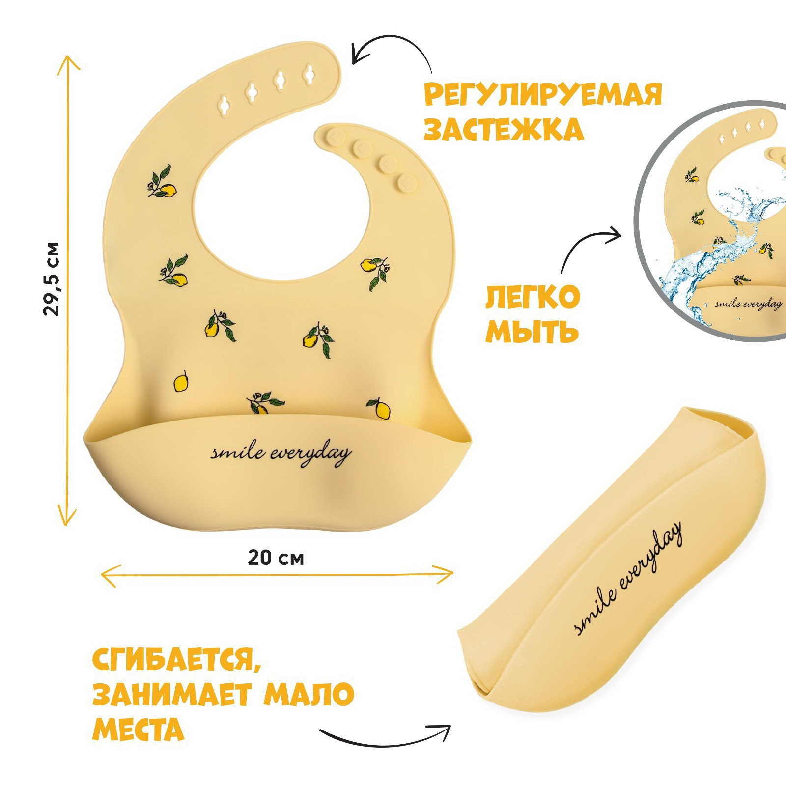 Нагрудник для кормления "Лимоны" силиконовый с карманом, цвет желтый, 21x30x5 см., Mum&Baby, Китай