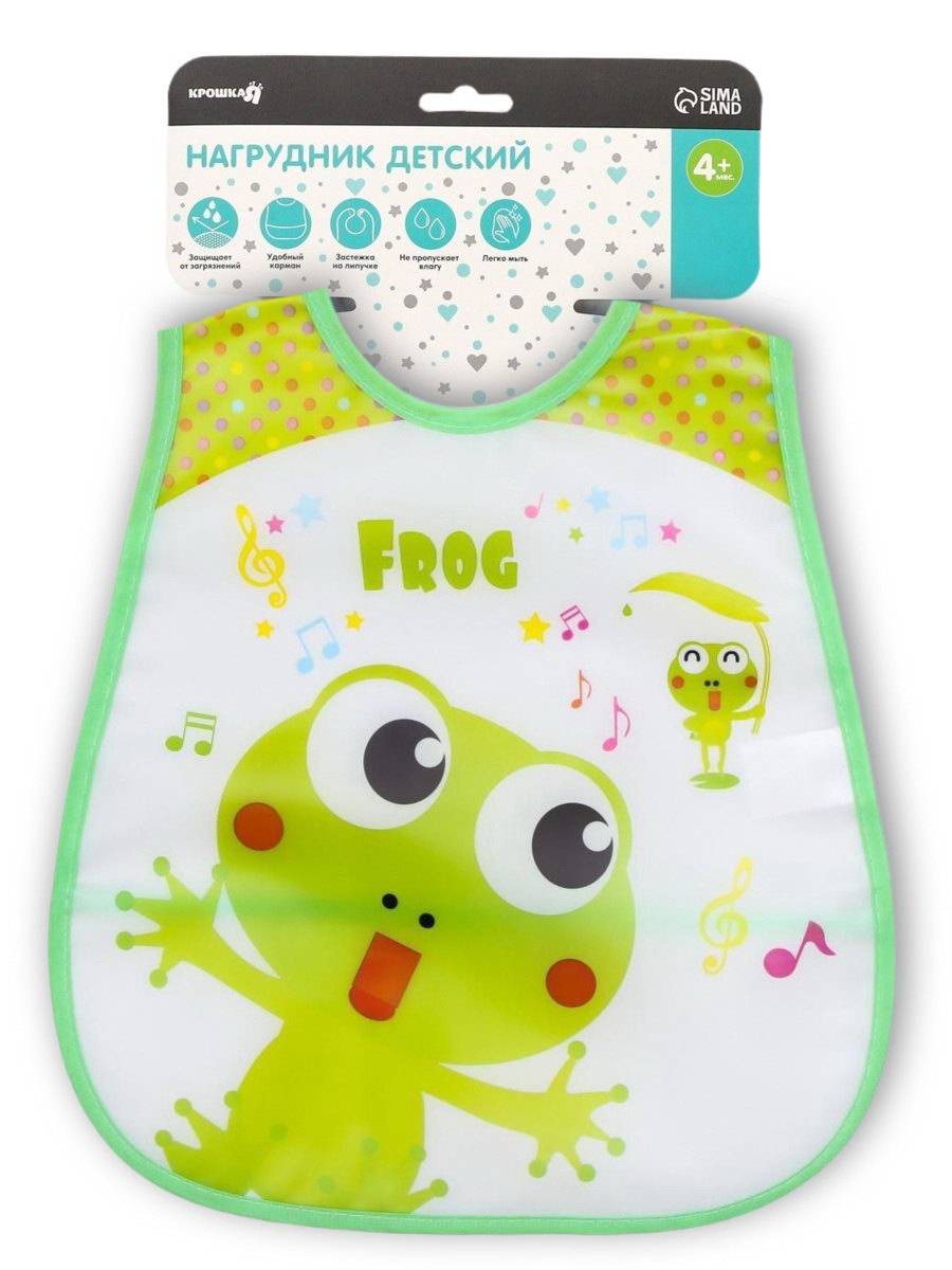Нагрудник непромокаемый, с карманом, на липучке "Лягушка", 28x30x0.5 см., Крошка Я, Китай