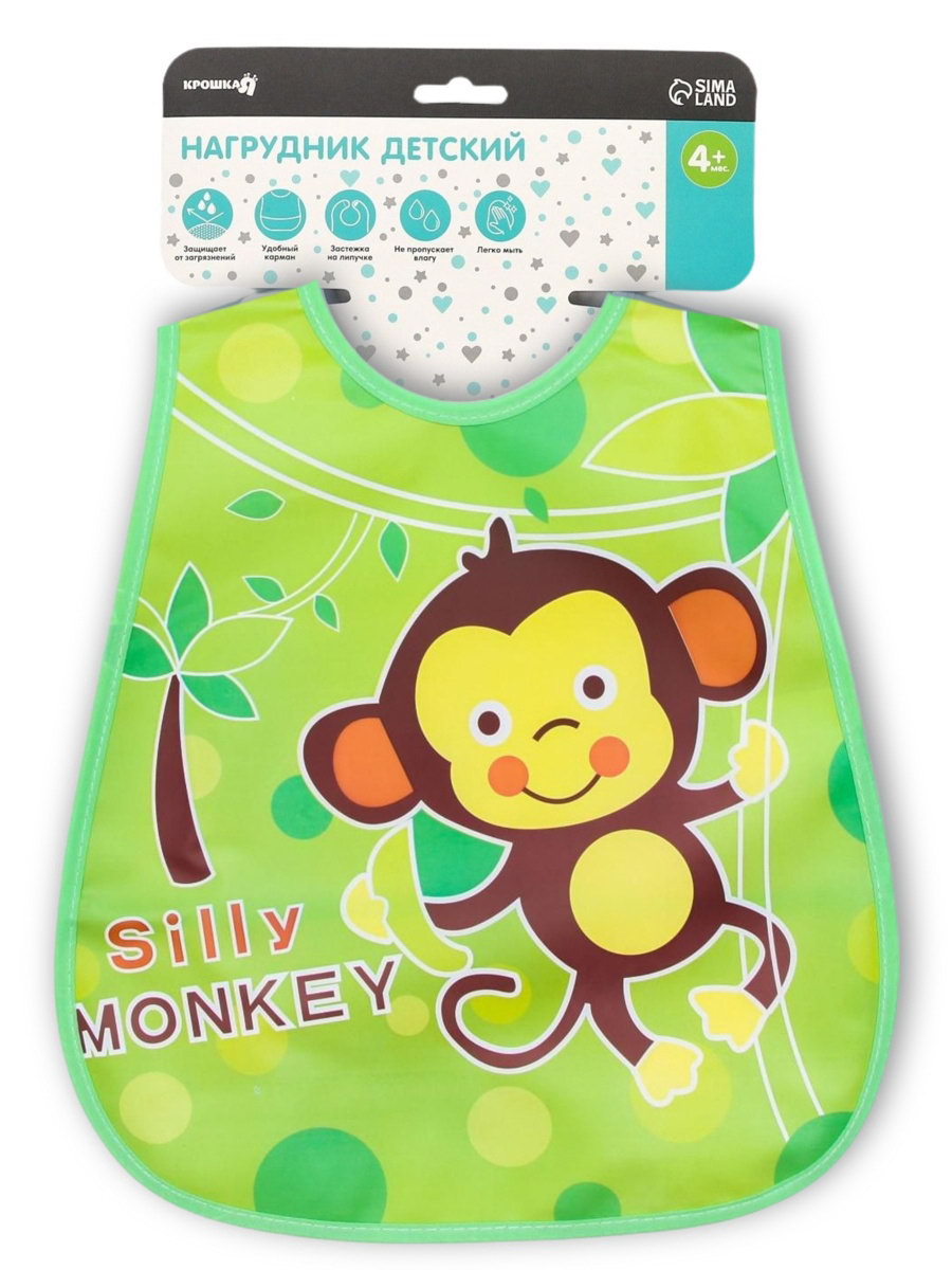 Нагрудник непромокаемый, с карманом, на липучке "Обезьянка", 28x30x0.5 см., Крошка Я, Китай